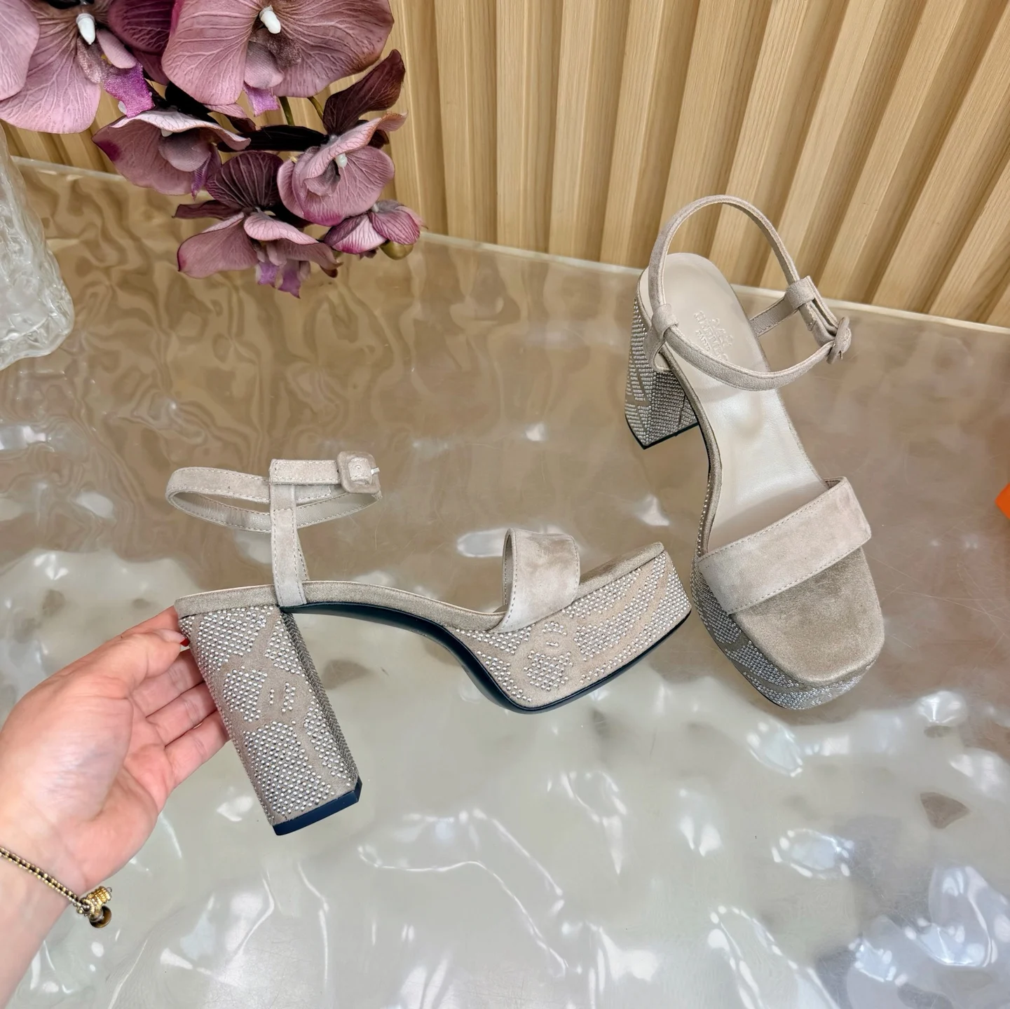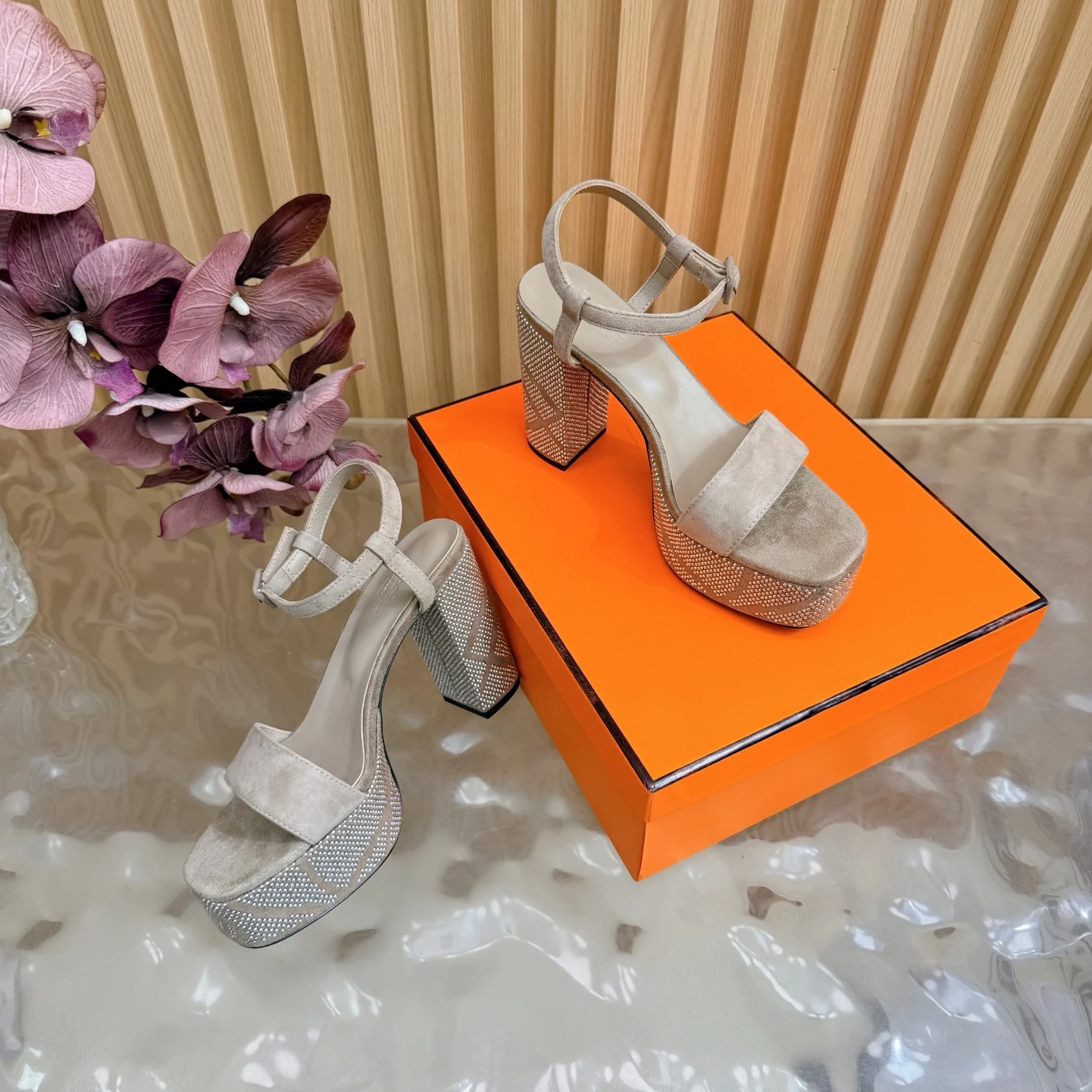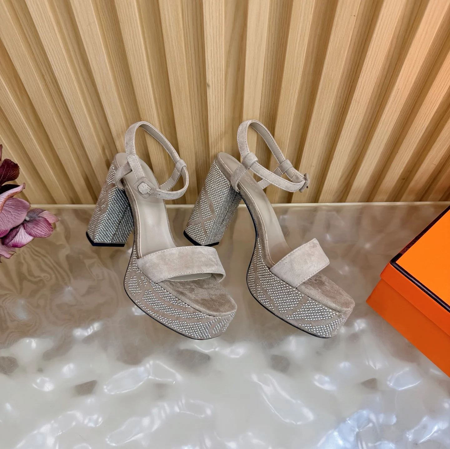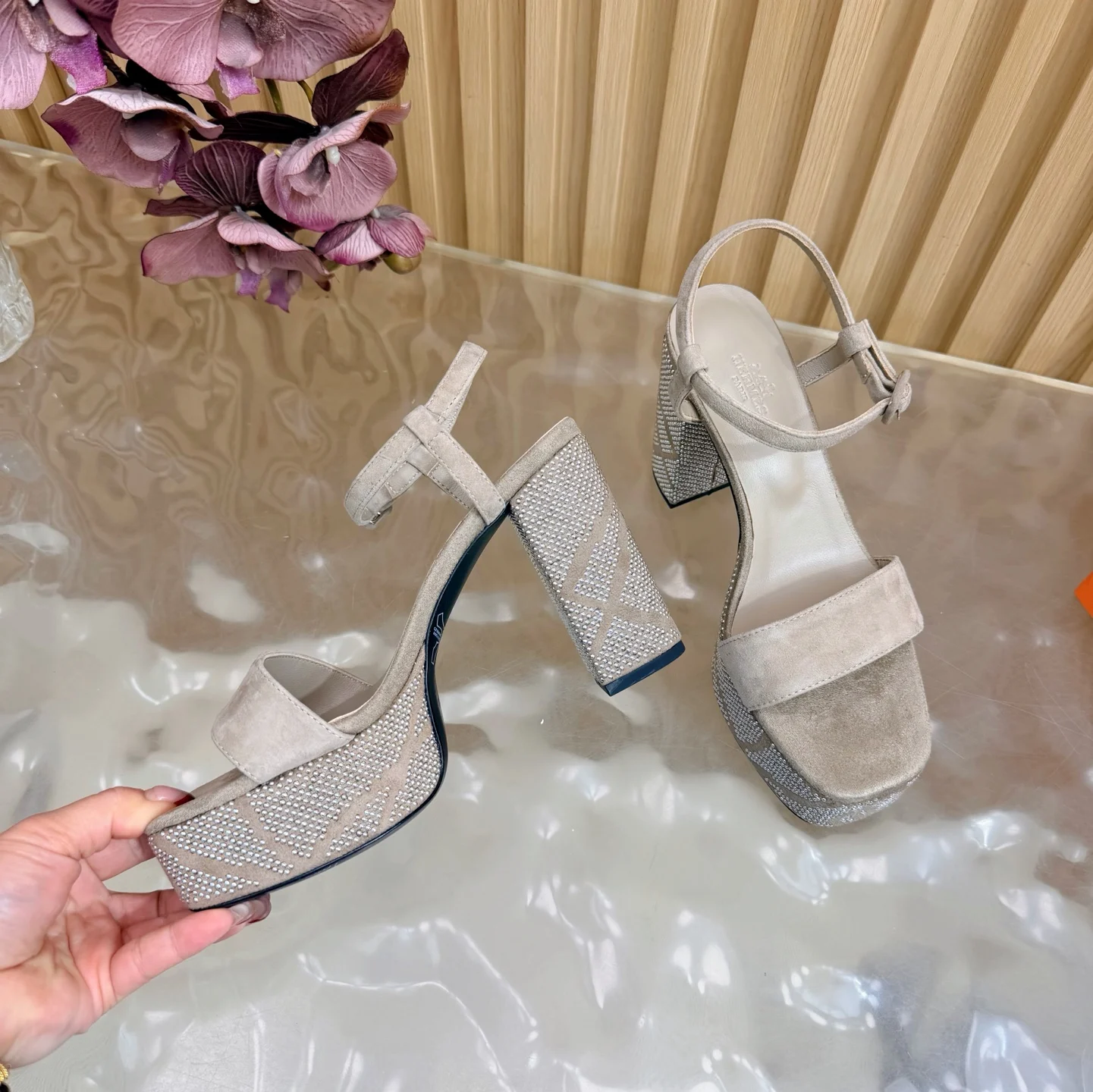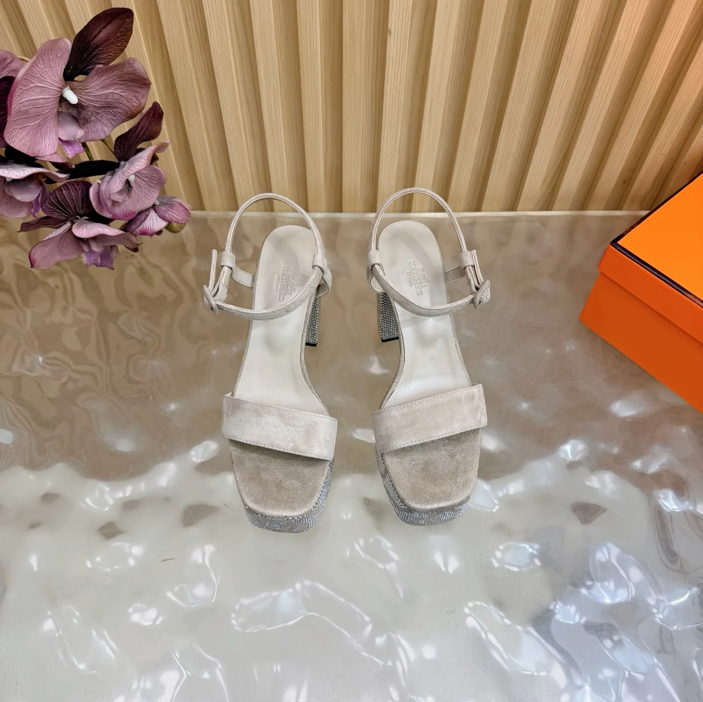 新款 2026早春新款 Hermes/爱马仕最新款 烫钻坡跟厚底凉鞋 面料采用进口羊京烫钻/牛皮