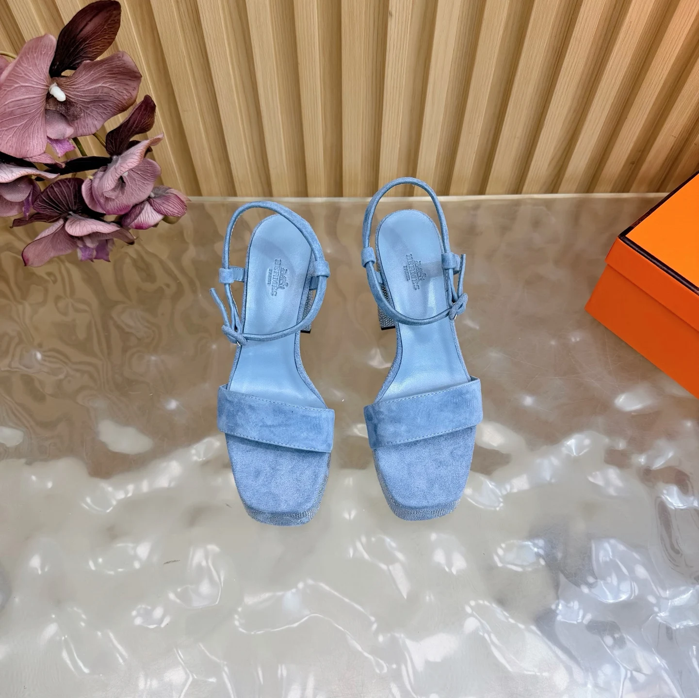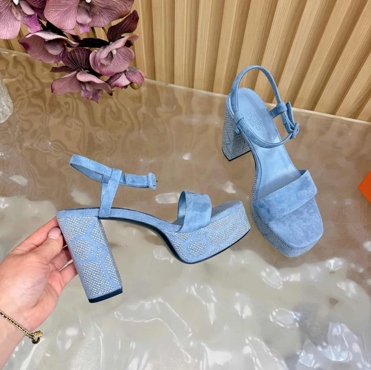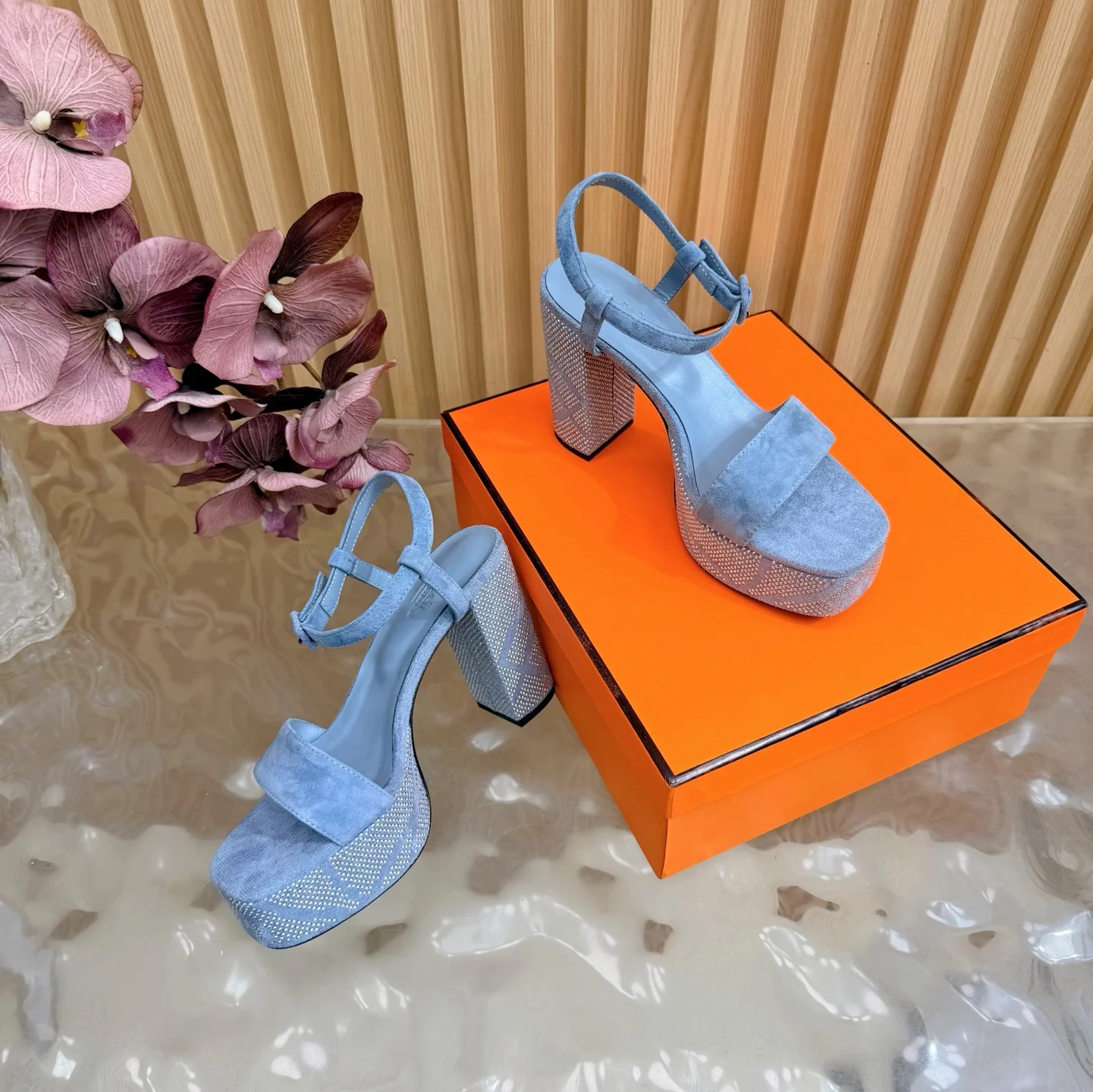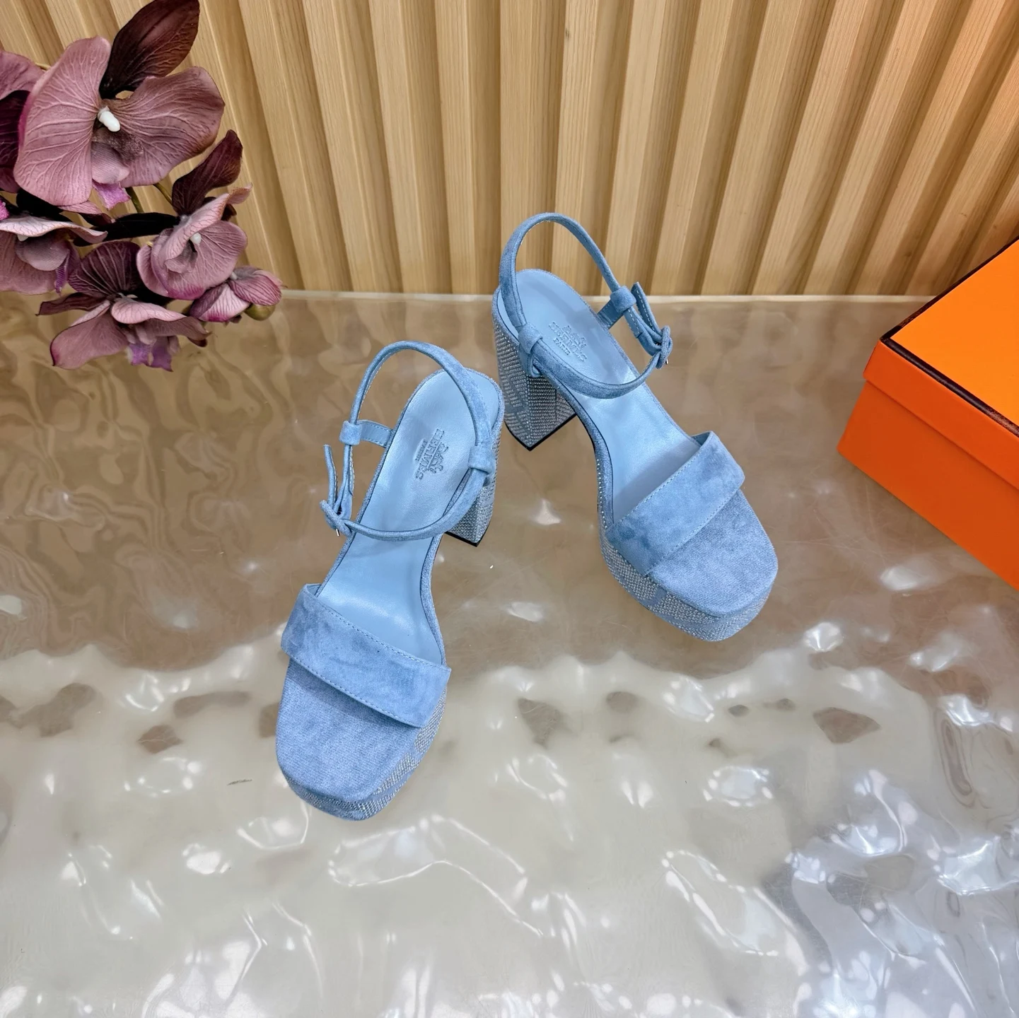 新款 2026早春新款 Hermes/爱马仕最新款 烫钻坡跟厚底凉鞋面料采用进口羊京烫钻/牛皮
