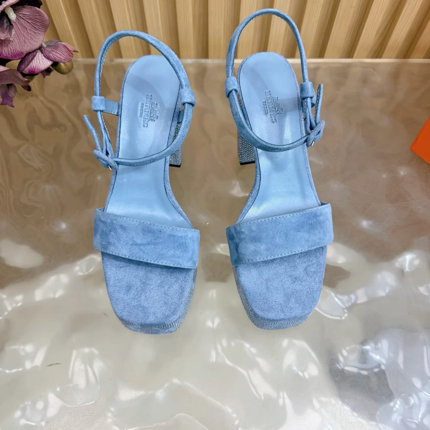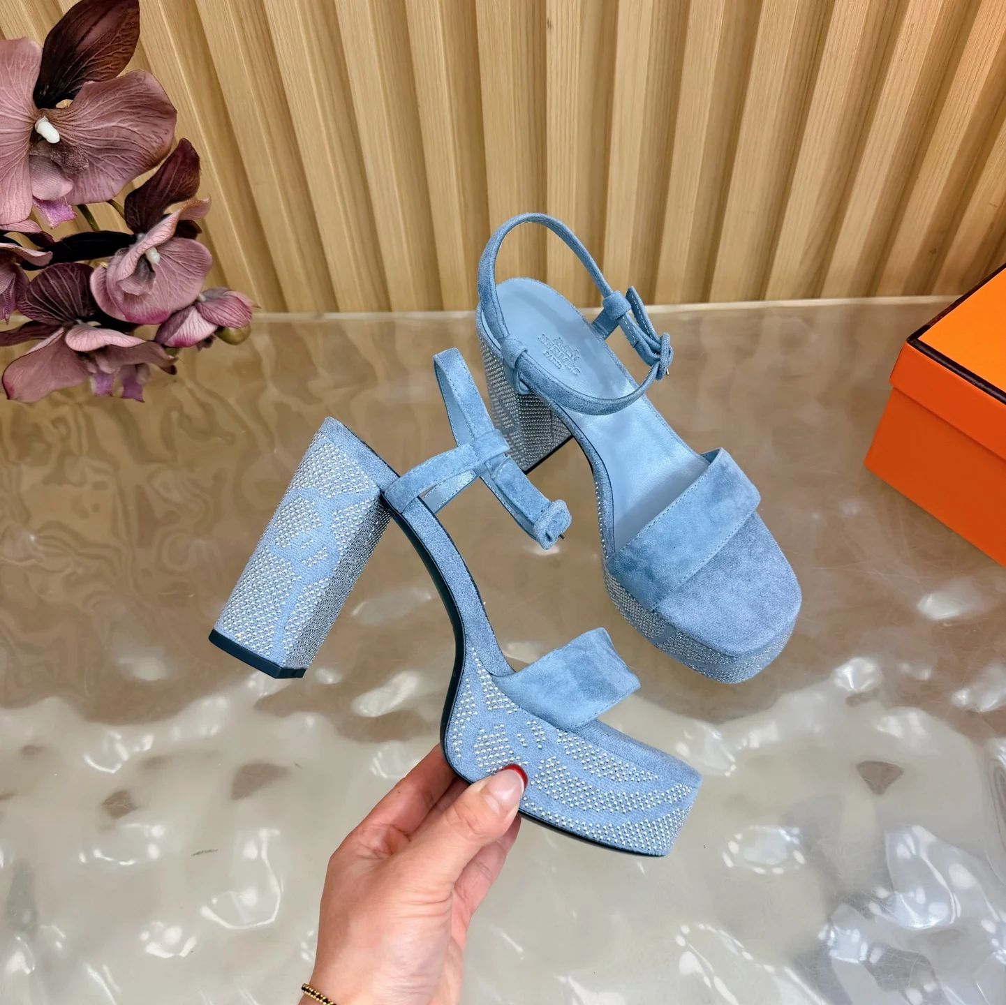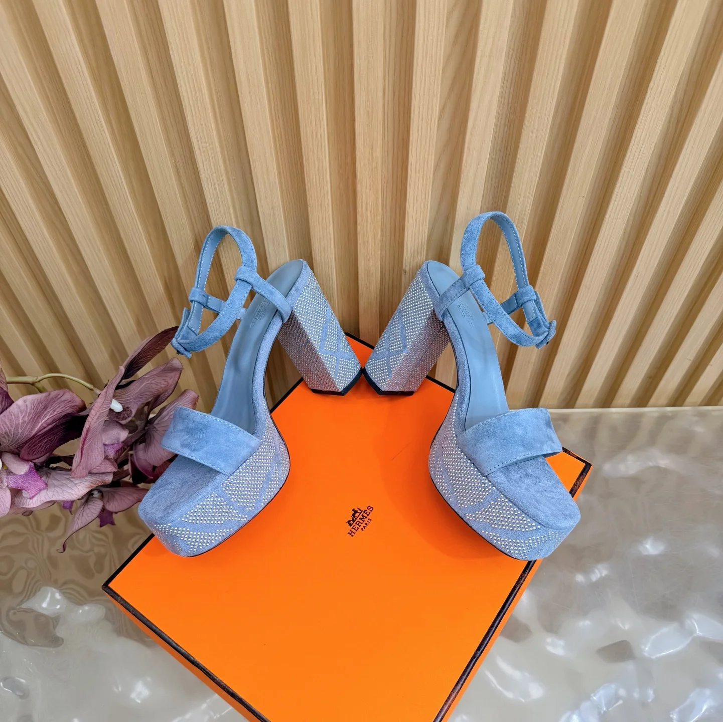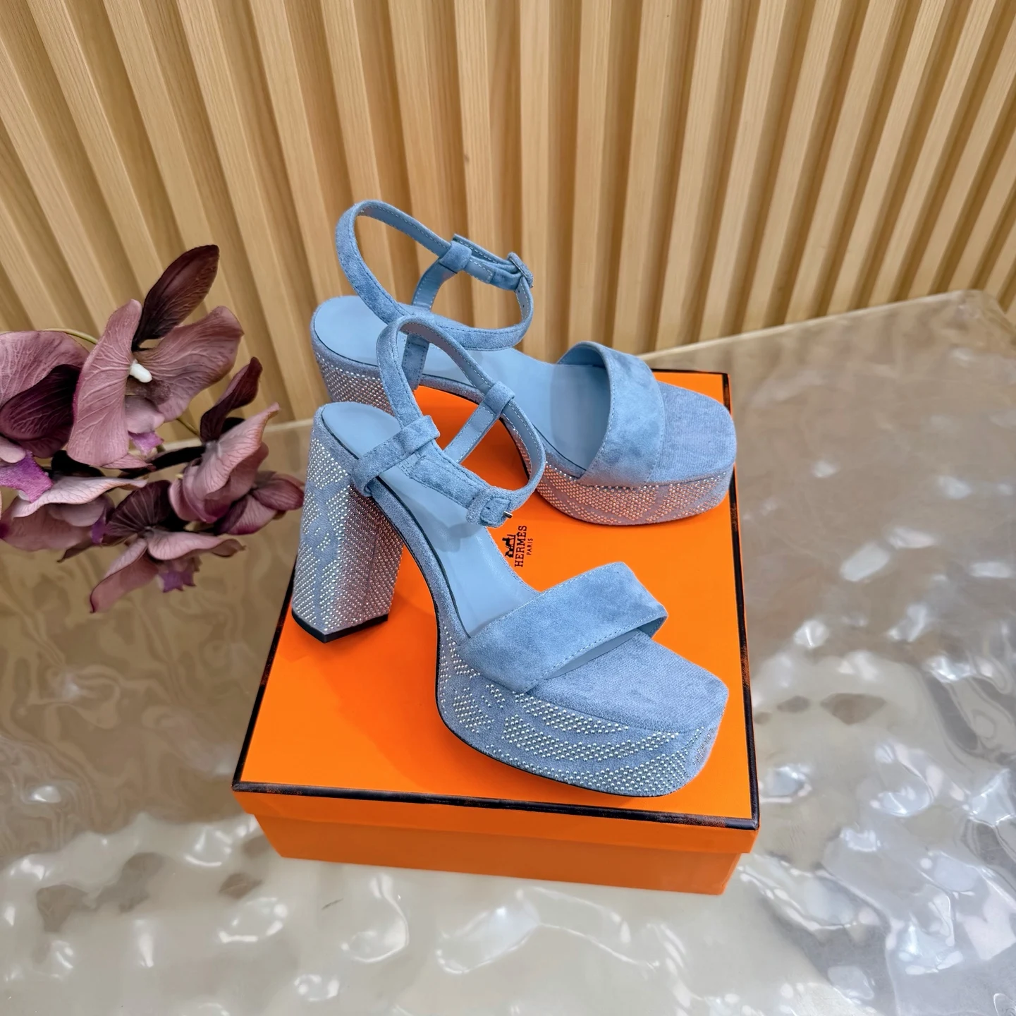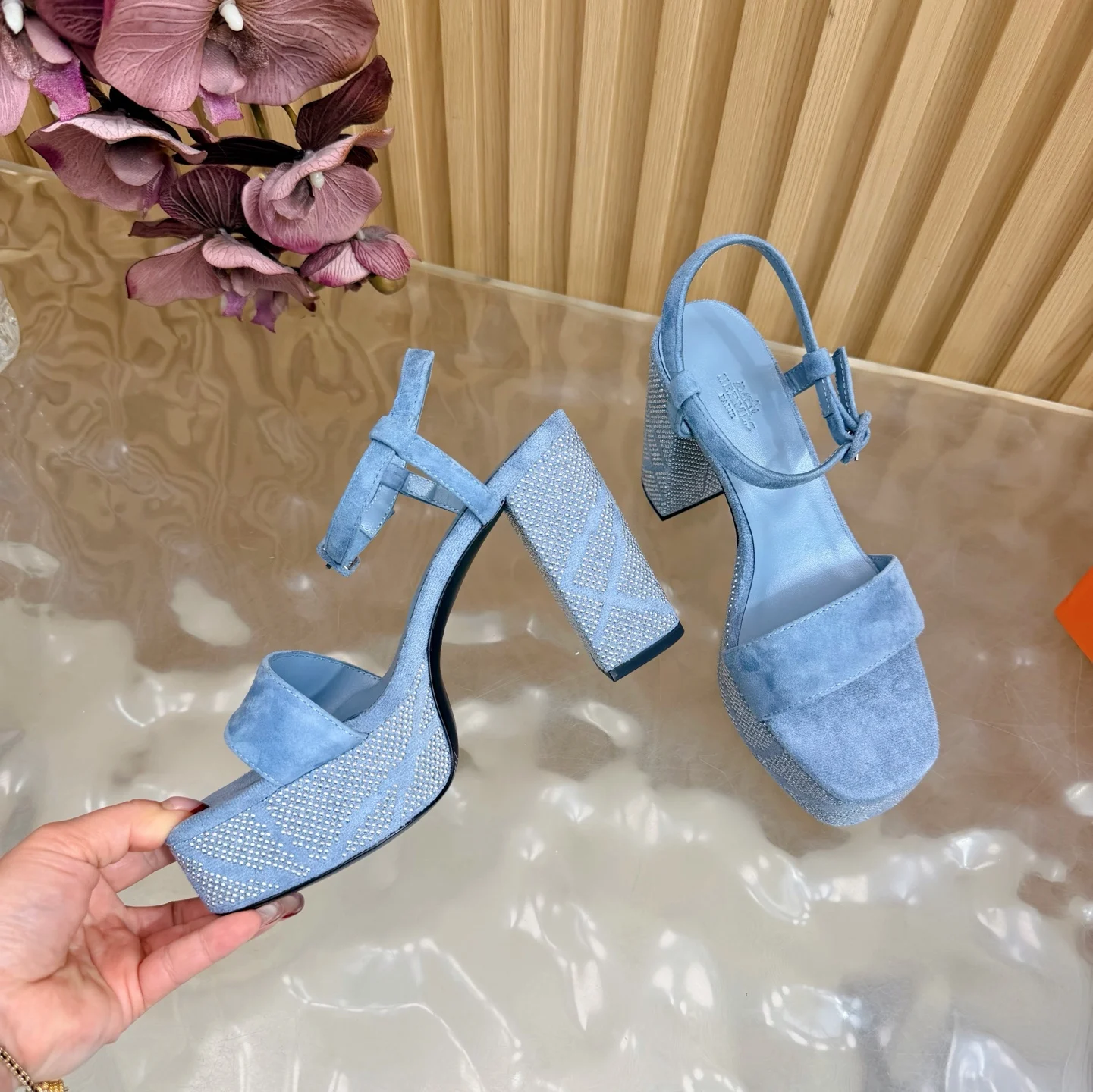 新款 2026早春新款 Hermes/爱马仕最新款 烫钻坡跟厚底凉鞋面料采用进口羊京烫钻/牛皮