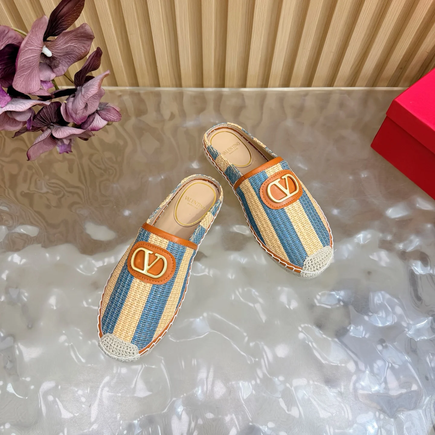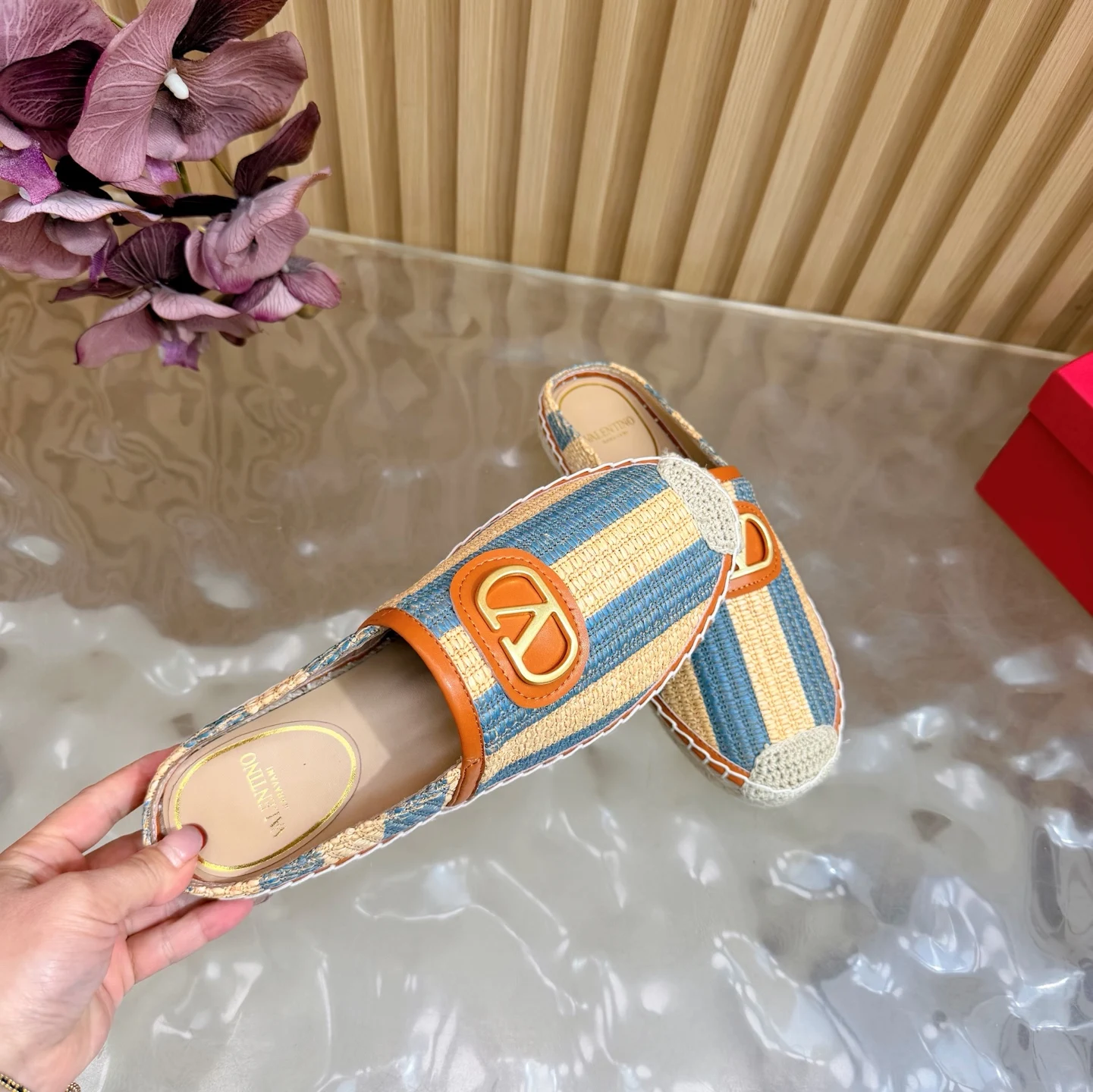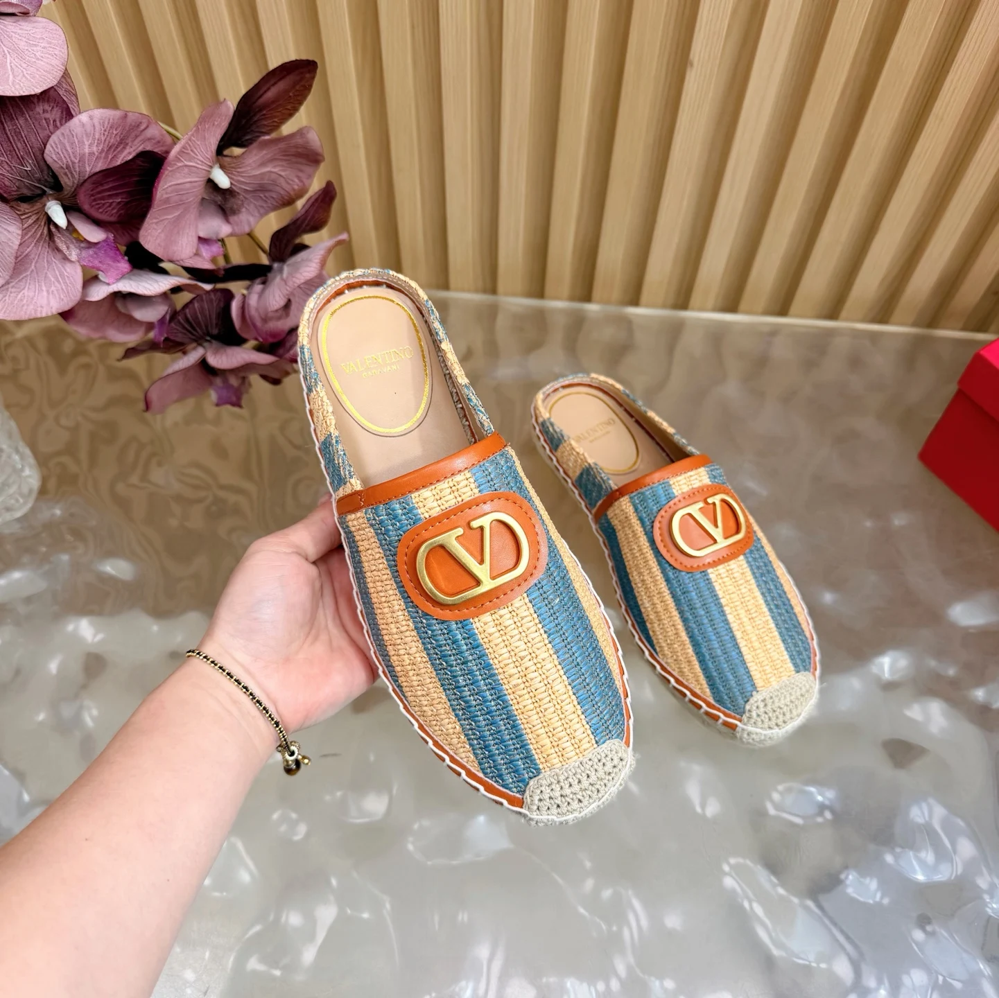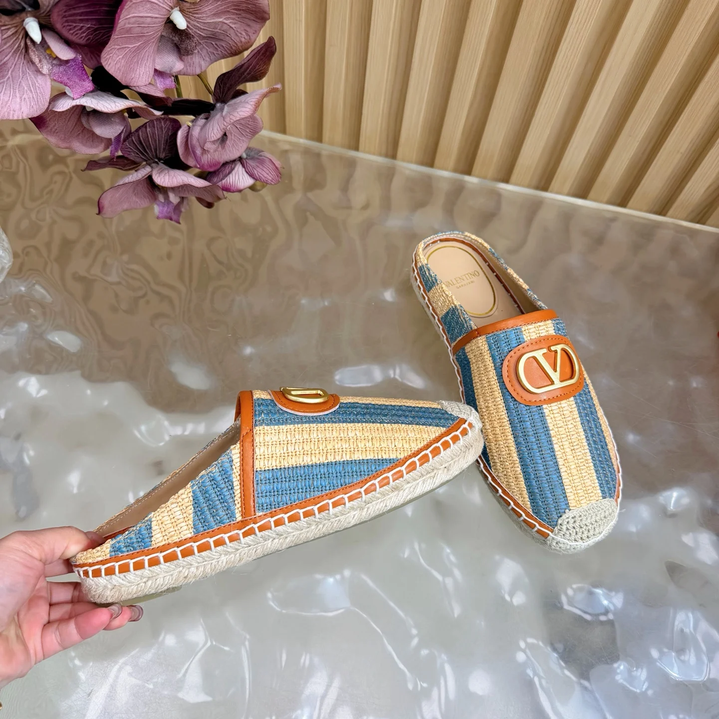 专柜2026早春新款穆勒拼色拖鞋 鞋面采用进口拼色编织拉菲草十分舒适