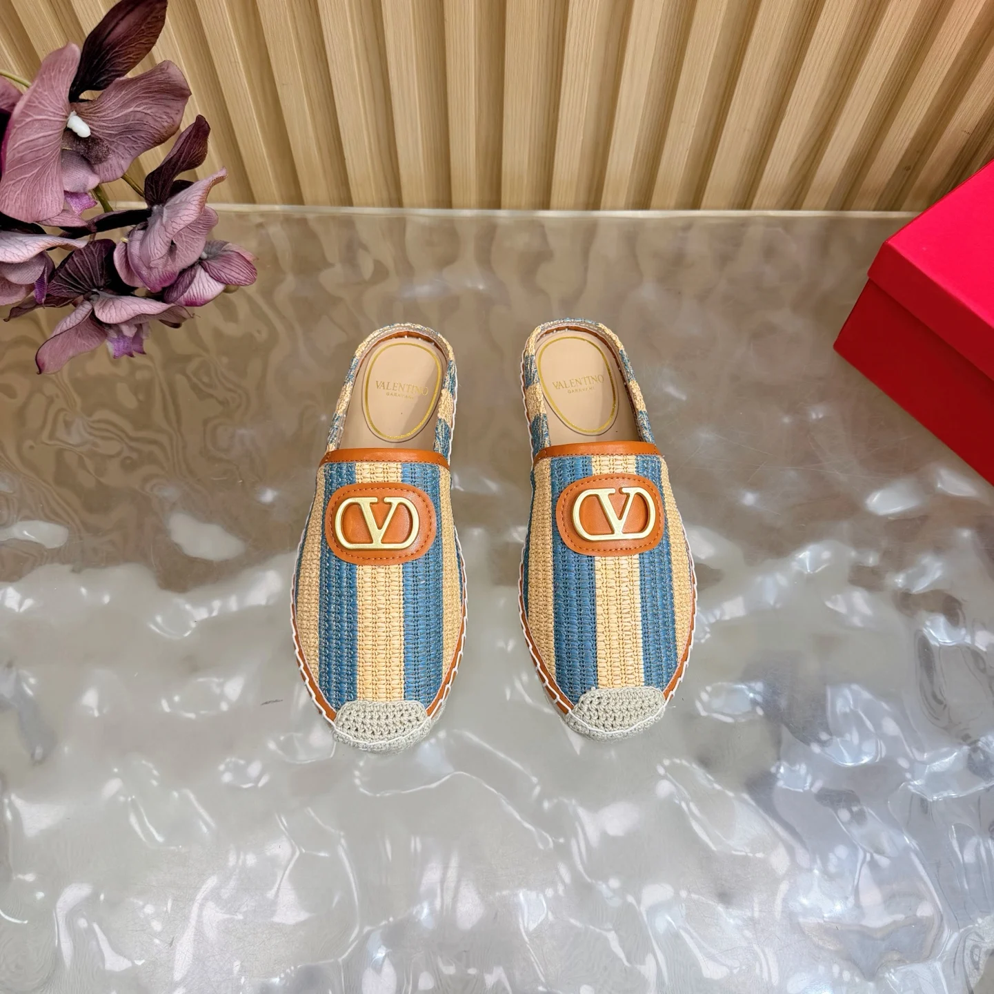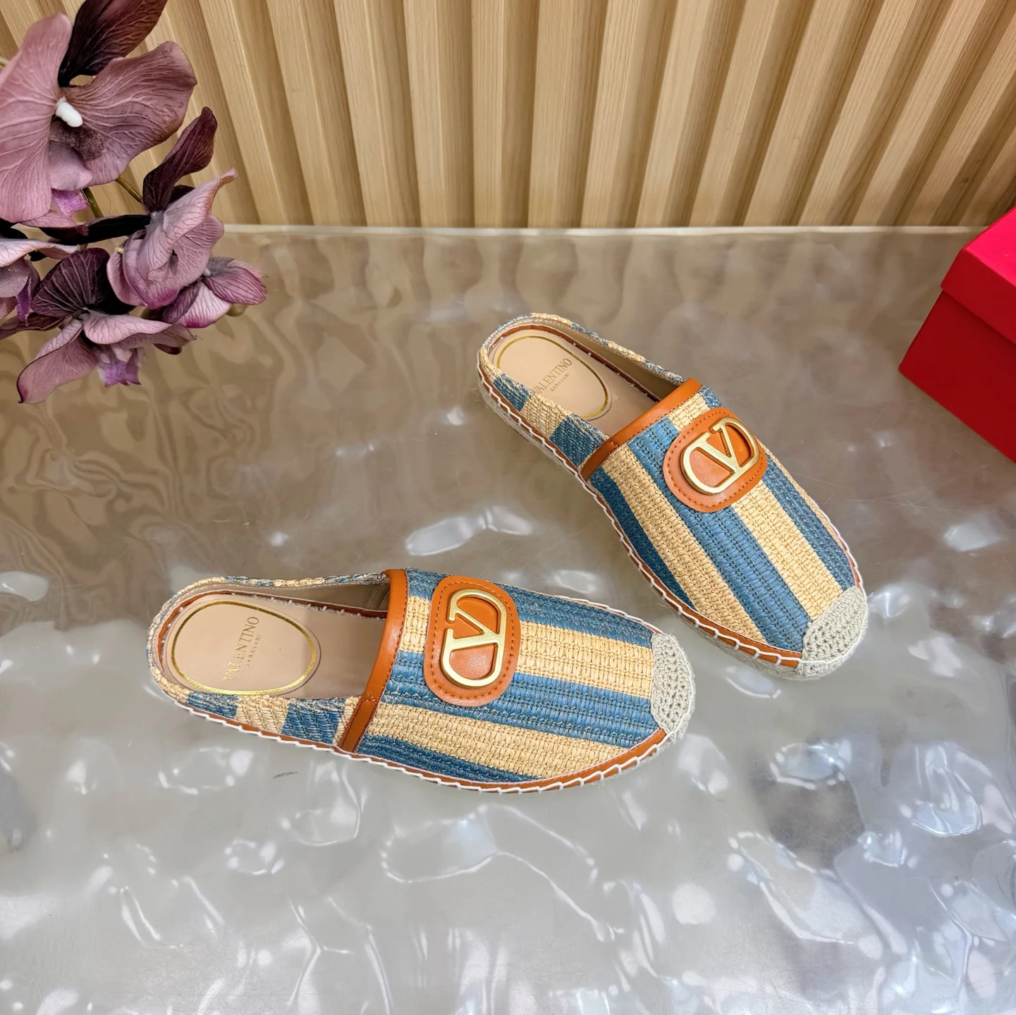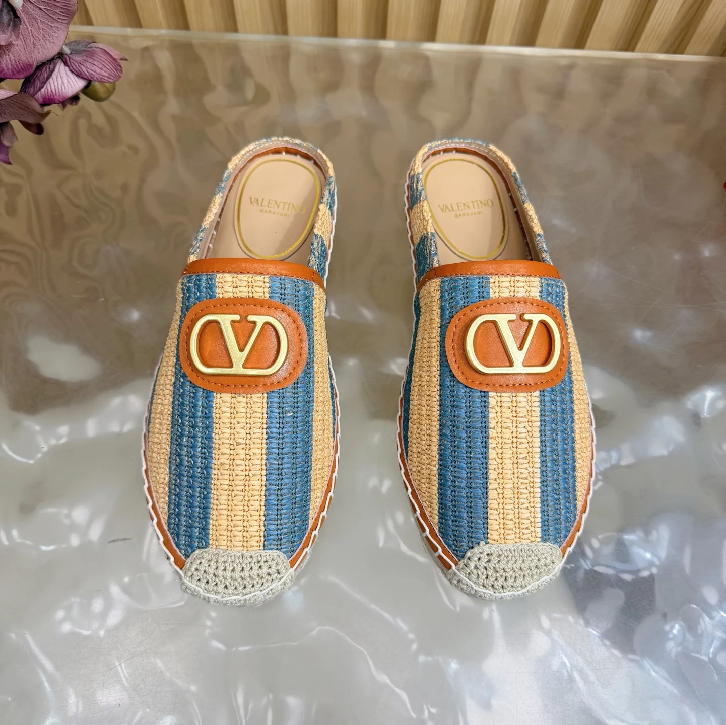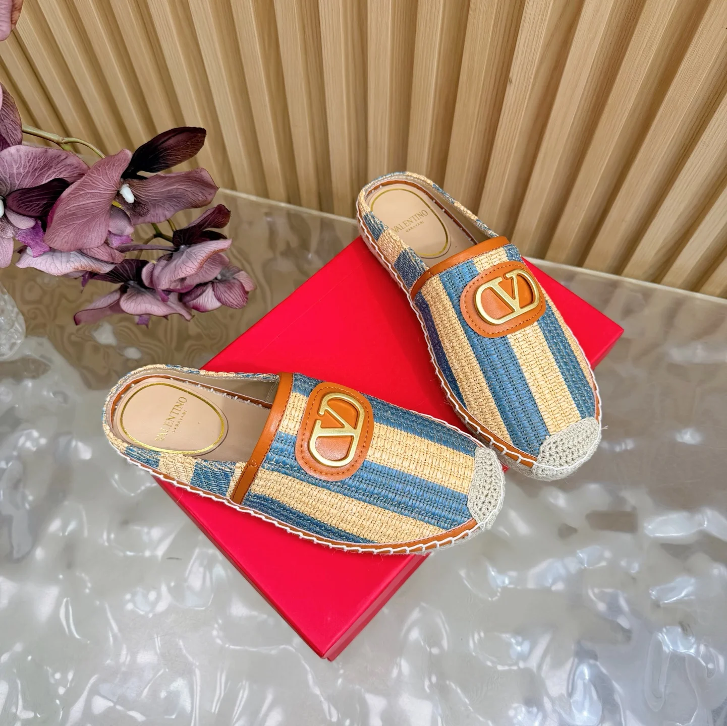 专柜2026早春新款穆勒拼色拖鞋 鞋面采用进口拼色编织拉菲草十分舒适