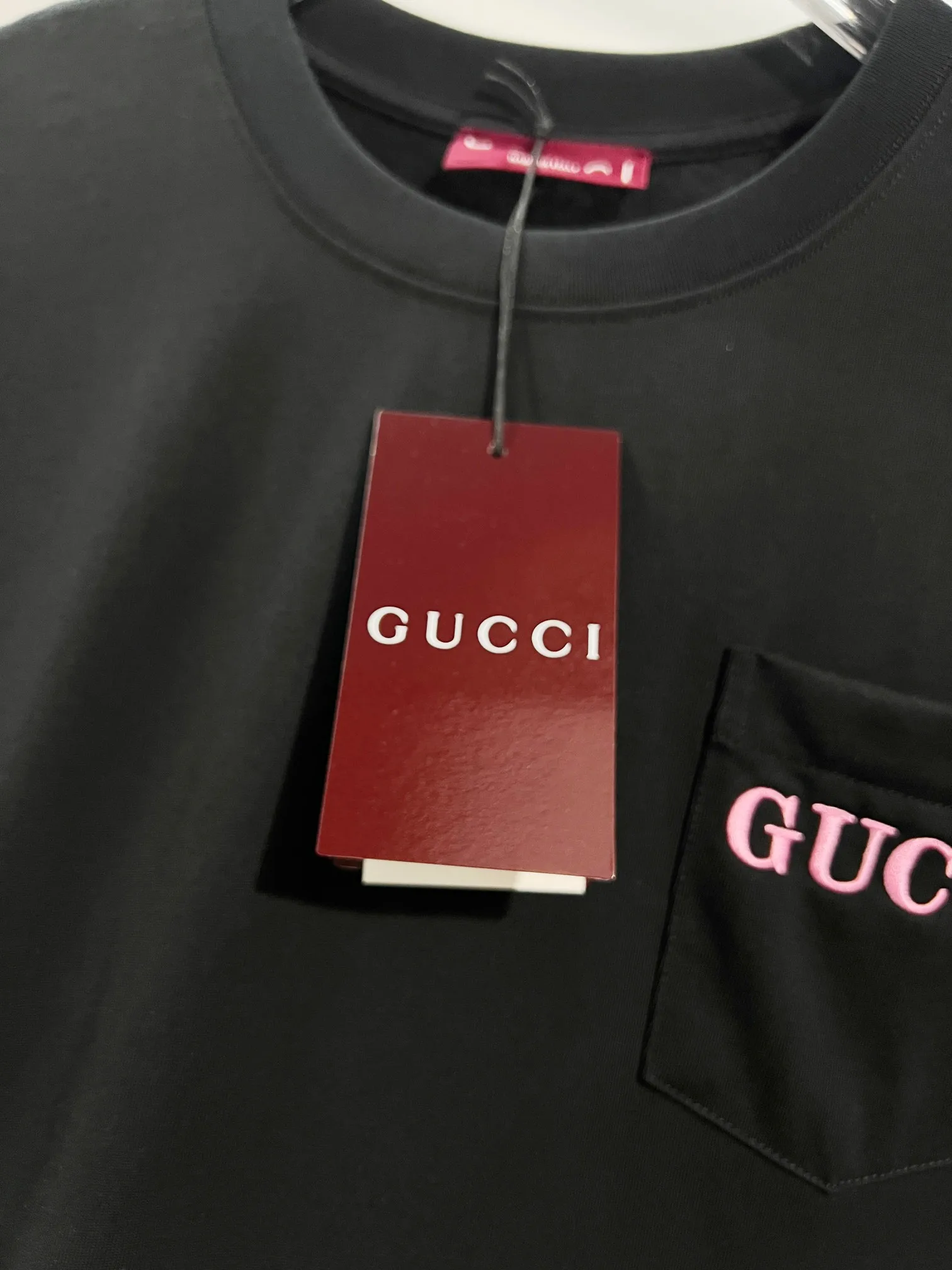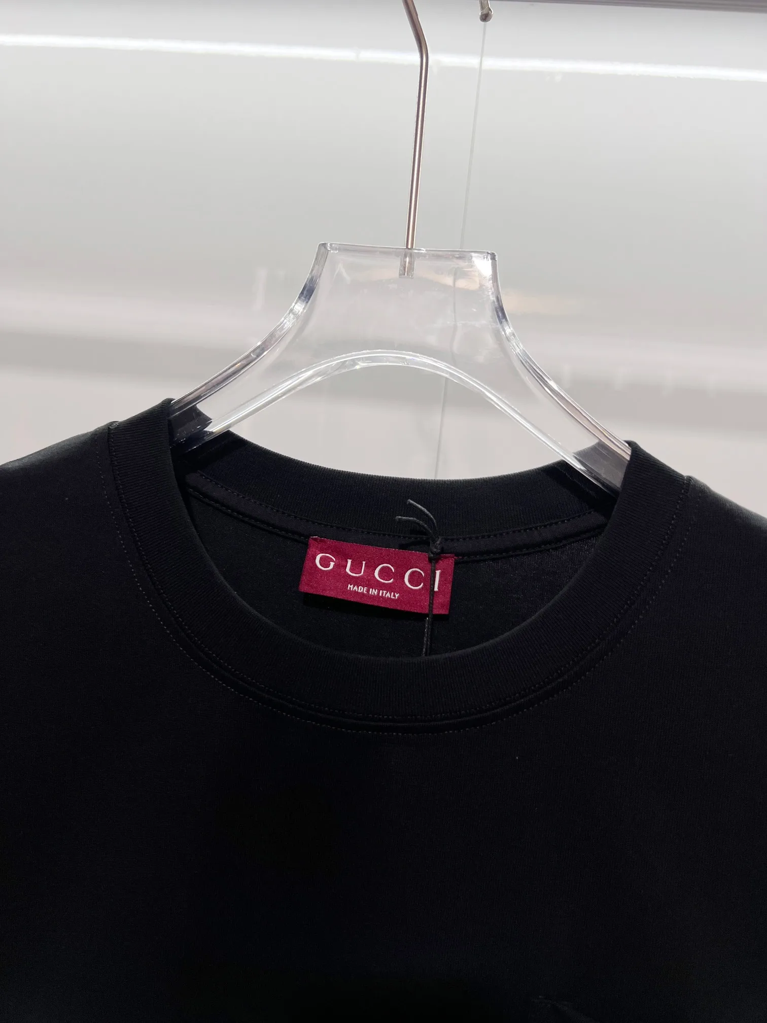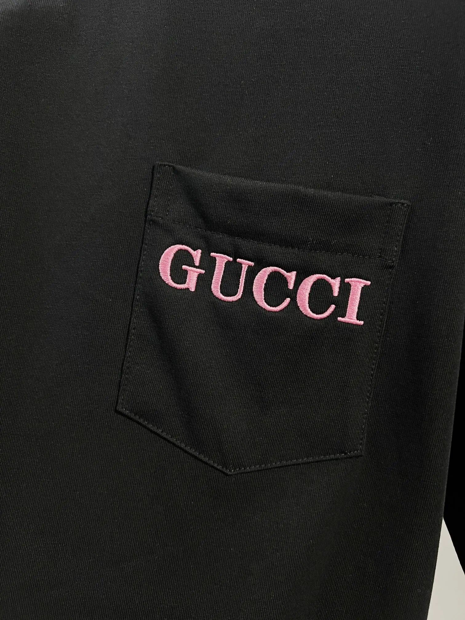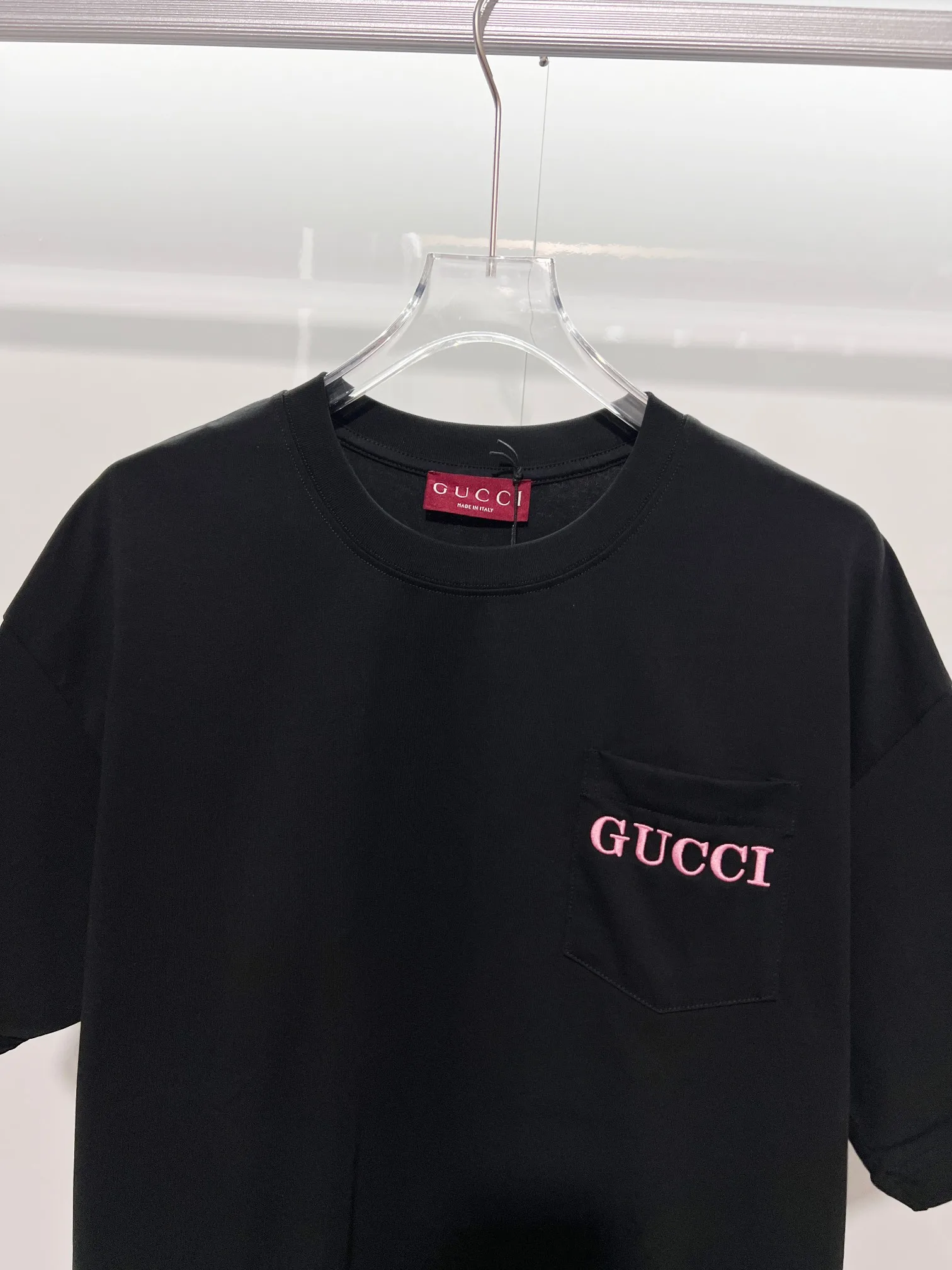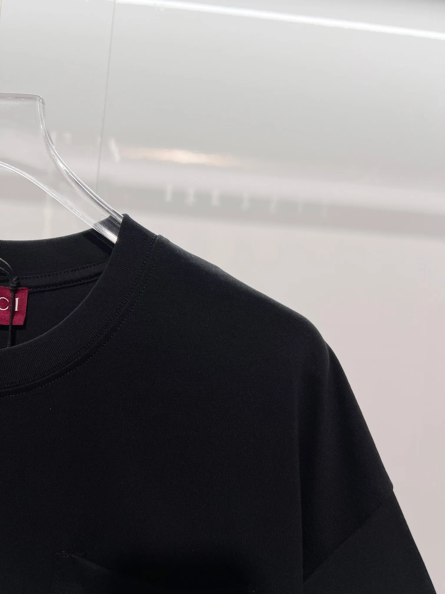 GUCCI 古驰 2026新款 原布拼接口袋 高密度刺绣字母logo 男女同款 短袖t恤