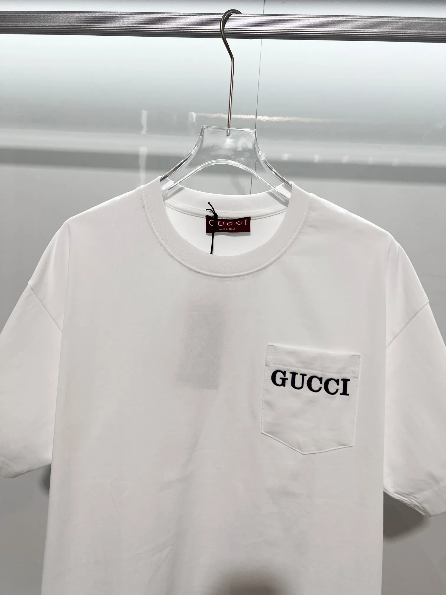 GUCCI 古驰 2026新款 原布拼接口袋 高密度刺绣字母logo 男女同款 短袖t恤
