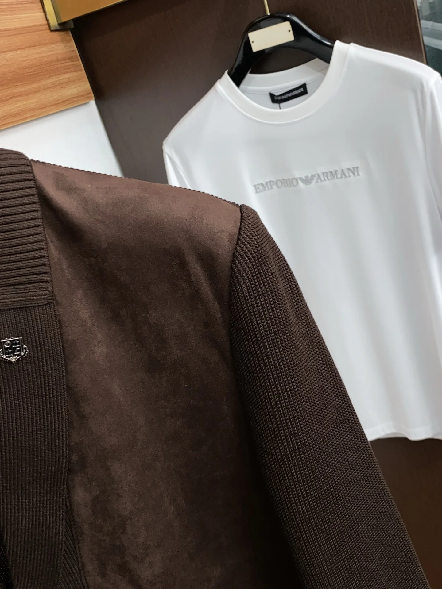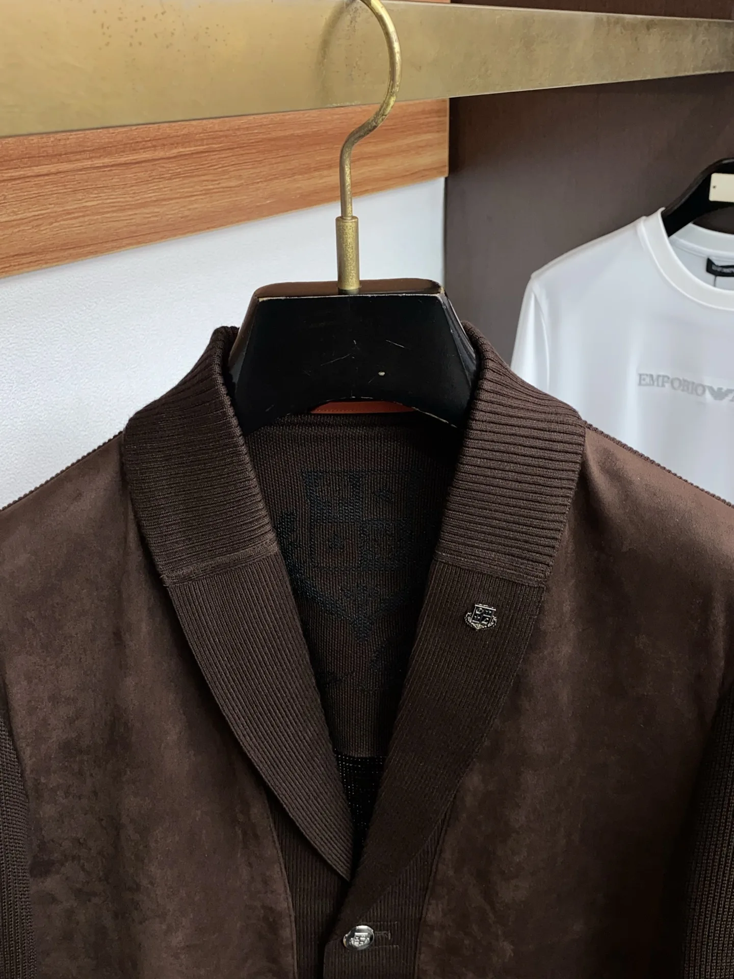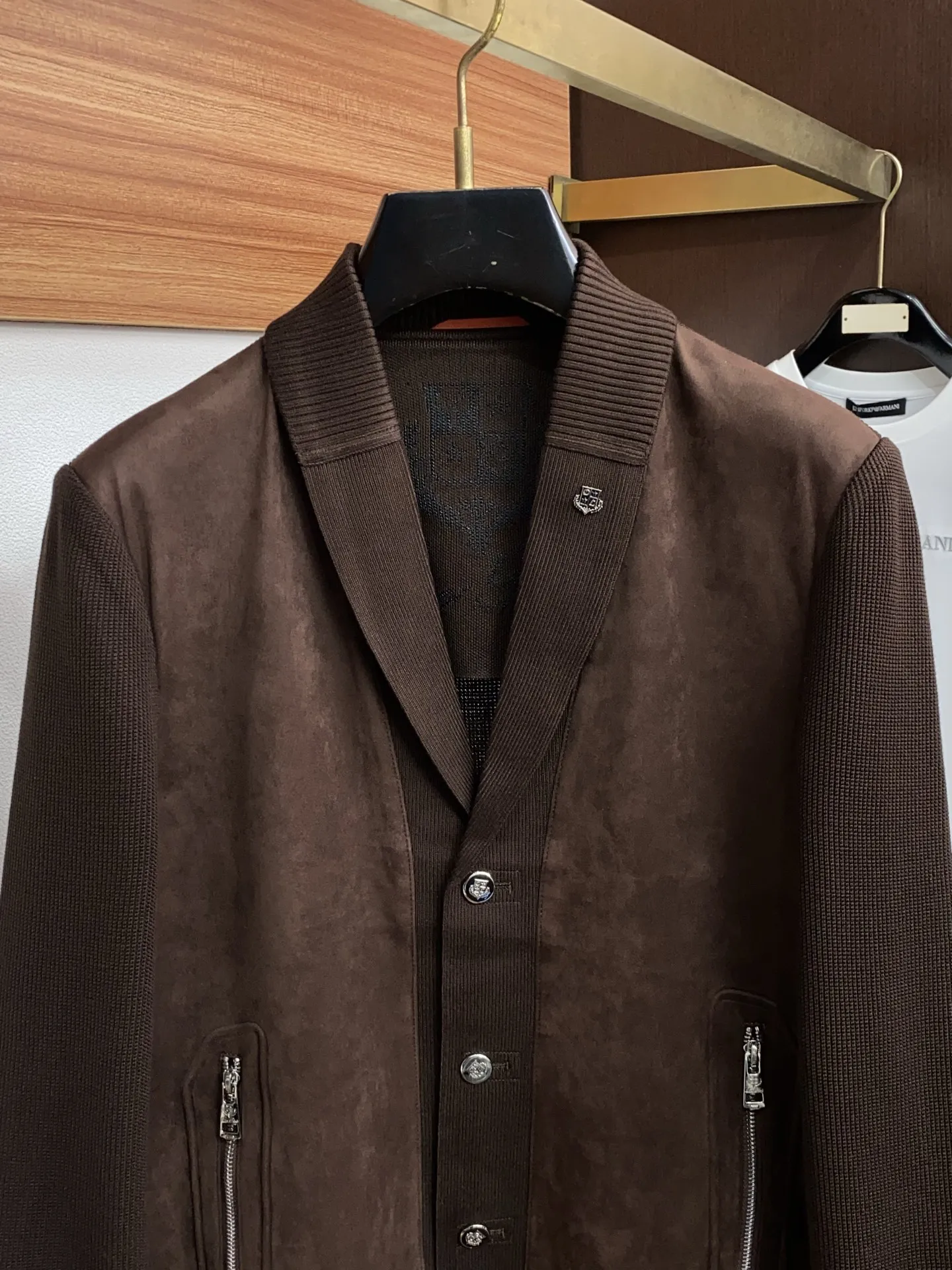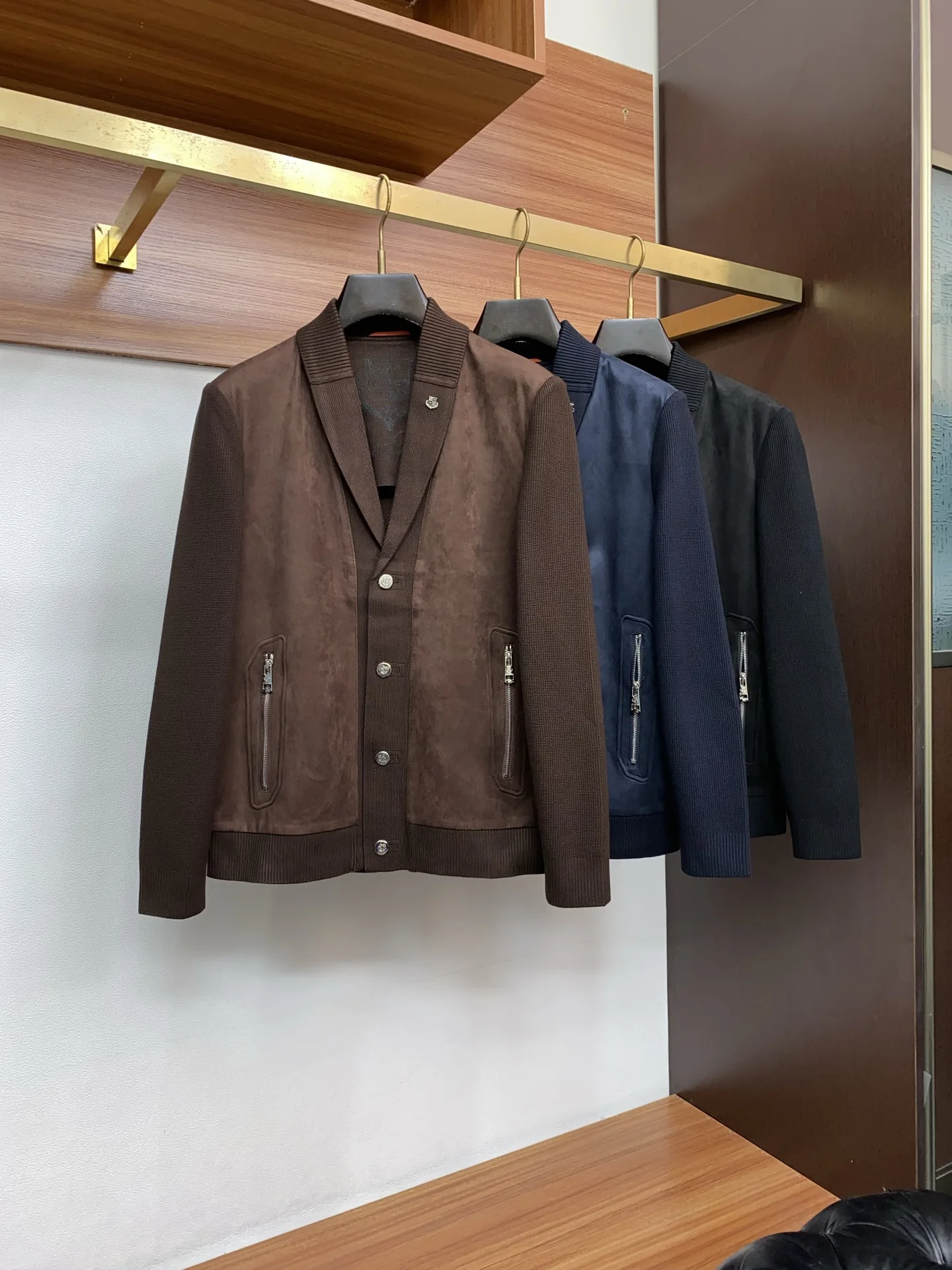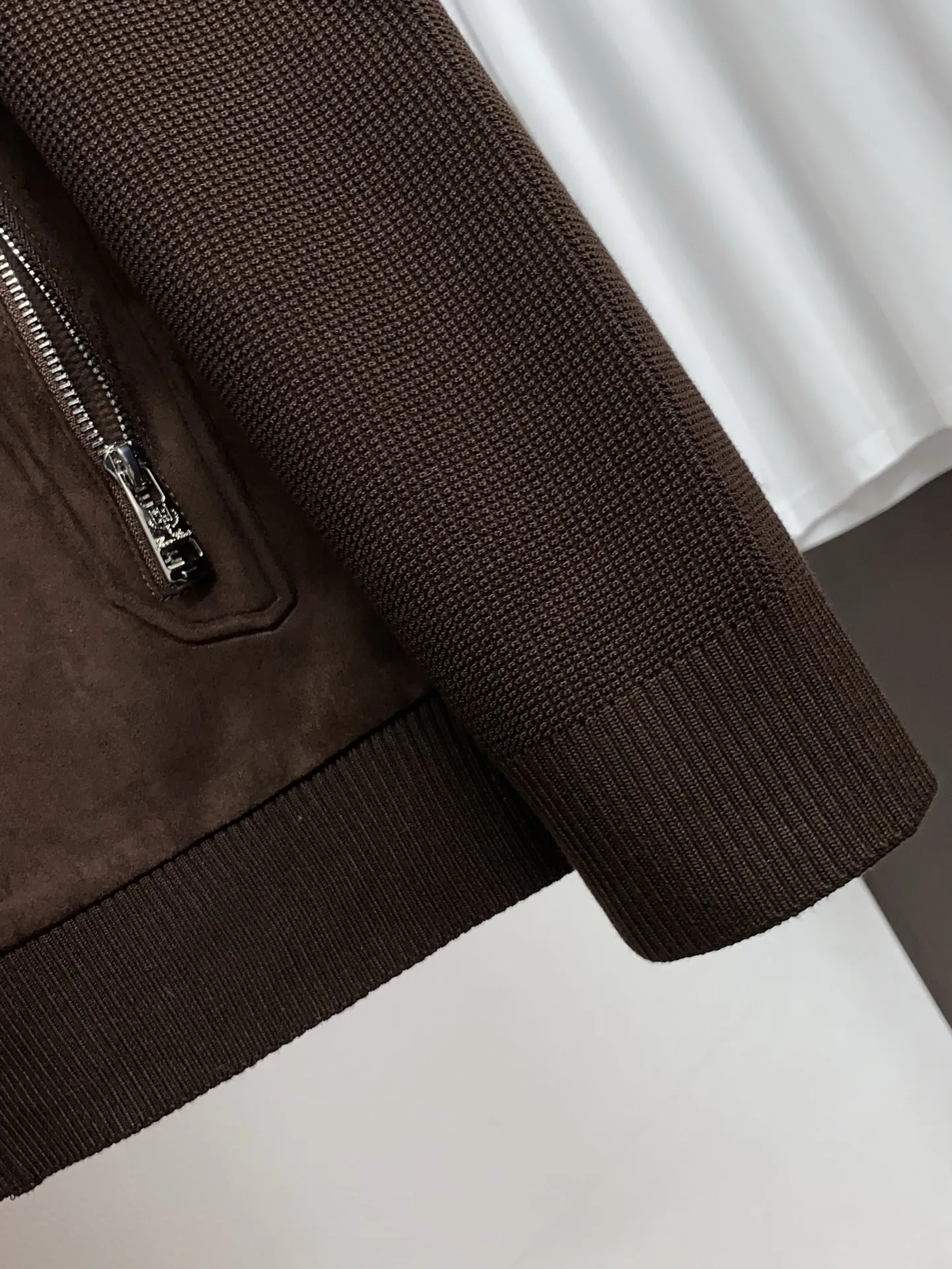 LP 诺悠翩雅 2026新款男士休闲定皮棉针织拼接西装翻领夹克外套 穿上简约干练的休闲外套 瞬间重回时髦霸气 又是活力满满的状态 史前最流行的拉链设计 面料全部需要定制 奢华感十足 修身的剪裁体现出我们完美的体型无论胖瘦都可以轻松驾驭 超百搭款式 不挑身材的款 适合不同年龄段穿着 高街实穿款 搭配利器