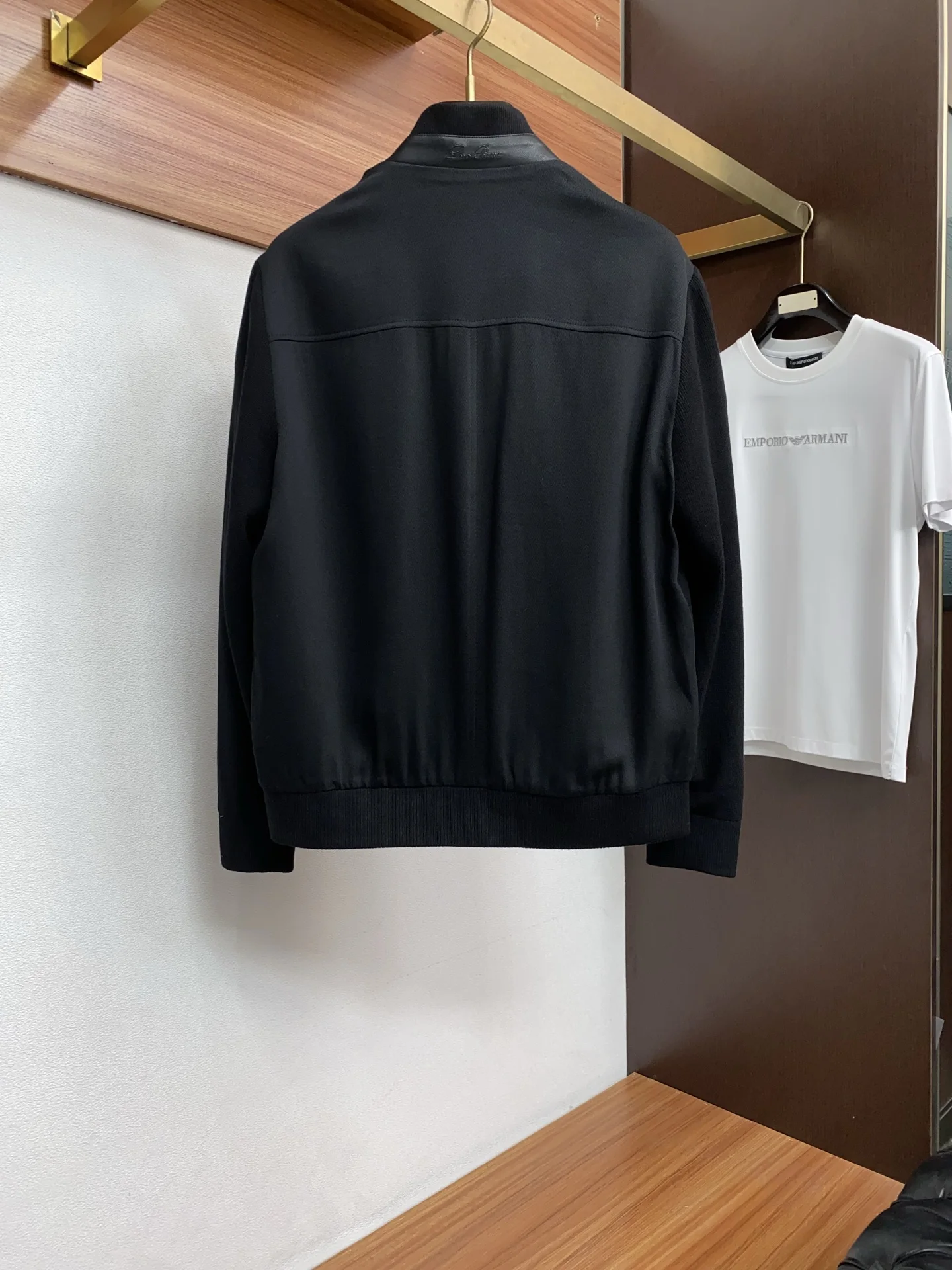 诺悠翩雅  2026新款男士休闲定麻棉针织拼接西立领夹克外套