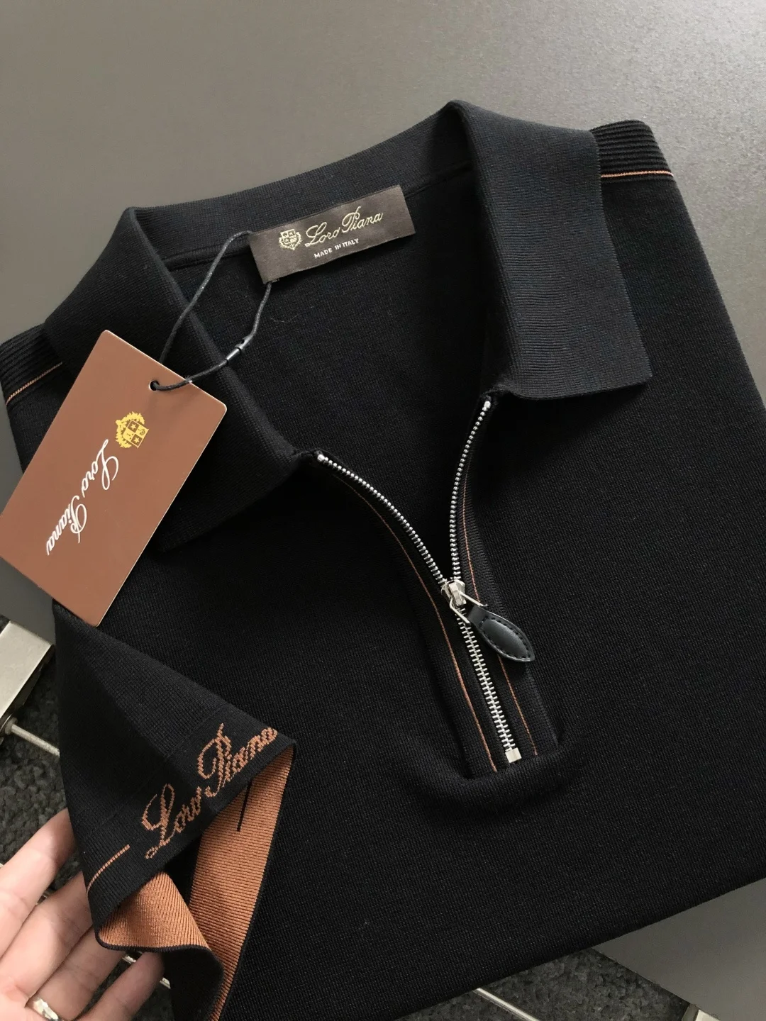 Lp*正码正拍M-xxxl2026春夏短袖 以黑咖撞色polo领搭配真皮拉链主调 巧妙融入绣口撞色字母提花素 打破传统短袖的单调感 彰显个性与不羁 立体剪裁贴合身形 设计利落有型 轻松拉长腿部线条 打造随性洒脱的休闲风格 优质面料舒适保暖 兼具保温性与舒适感 适合日常出街或轻户外场景 细节后背三角提花点缀 增添时尚质感 无论是搭配T恤牛仔裤的休闲look 还是叠的混搭风 都能轻松驾驭 是春夏季不可或缺的时尚单品