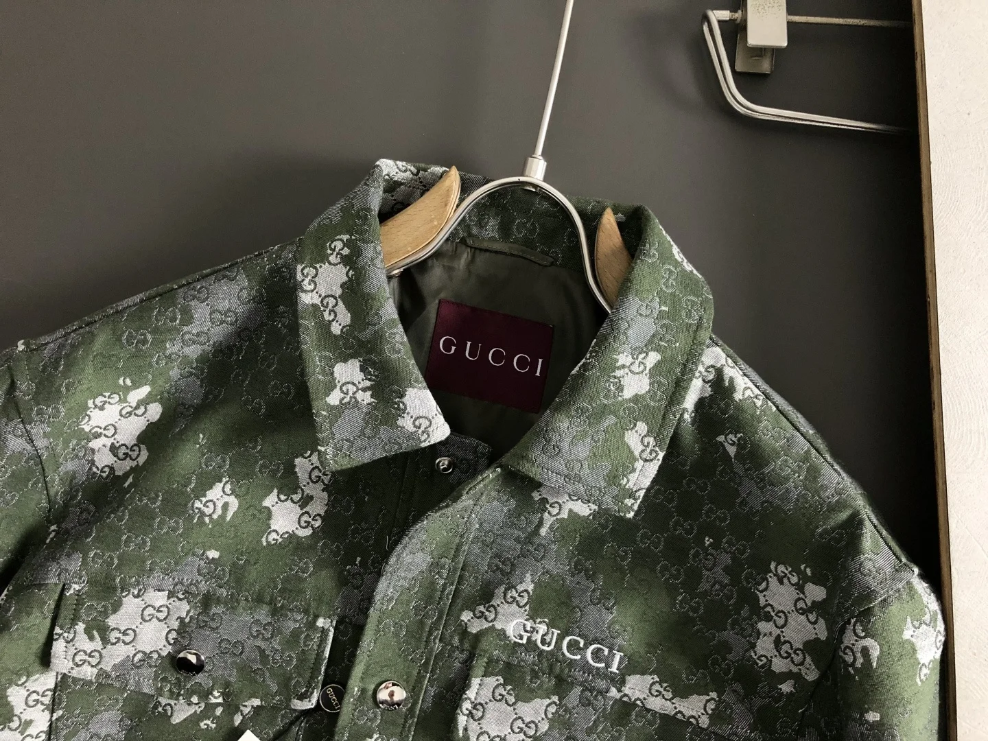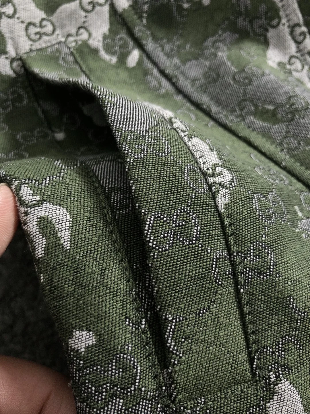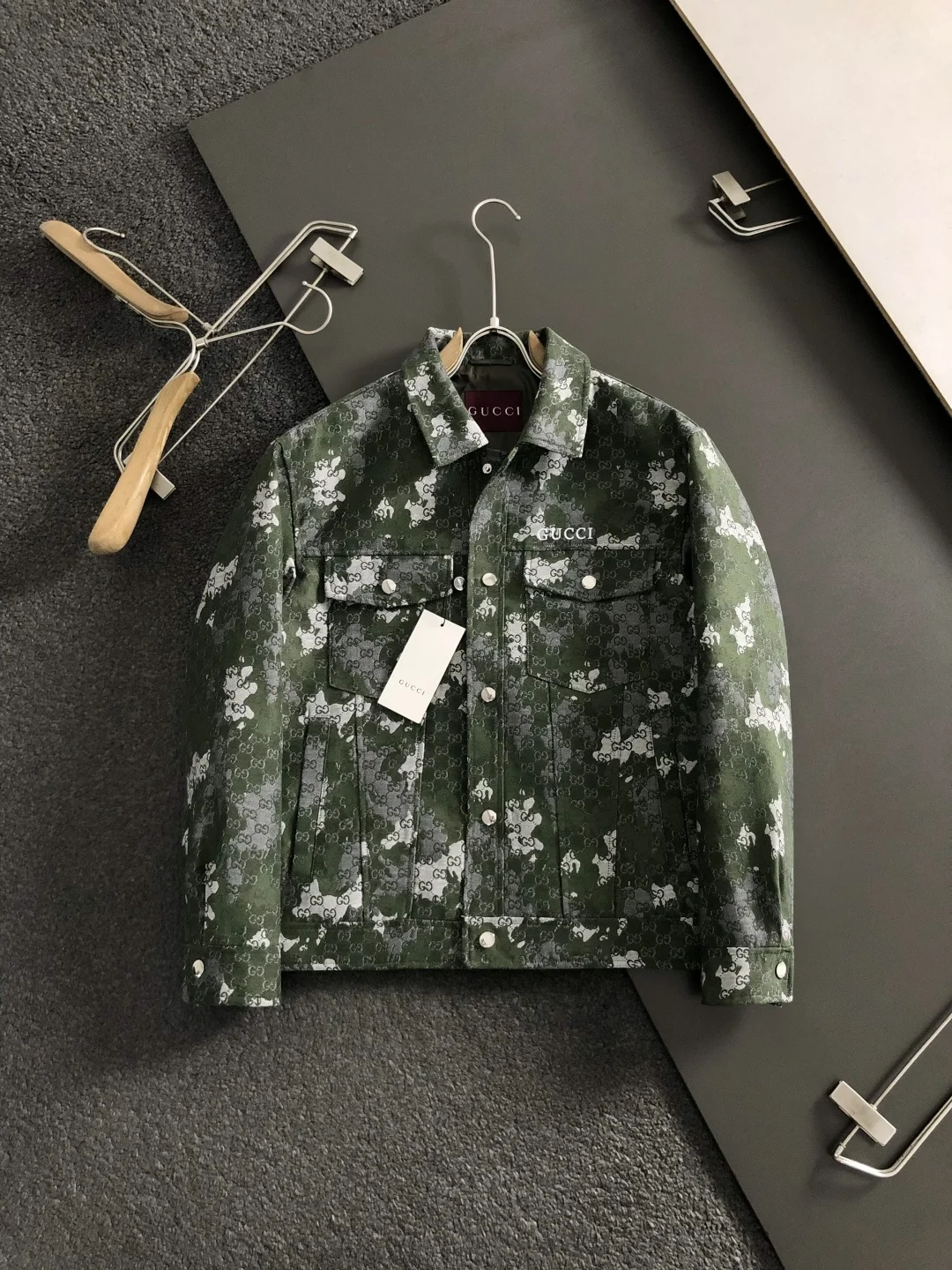 Gucc*合身版型M-XXXl2026春夏潮牌夹克 以迷彩双G字母刺绣搭配点缀为主调 巧妙字母素 彰显个性与不羁 立体剪裁贴合身形 设计利落有型 轻松拉长腿部线条 打造随性洒脱的休闲风格 优质面料挺括耐磨 兼具透气性与舒适感 适合日常出街或轻户外场景 细节织带点缀 增添时尚质感 无论是搭配T恤牛仔裤的休闲look 还是叠的混搭风 都能轻松驾驭 是秋冬过渡季不可或缺的时尚单品