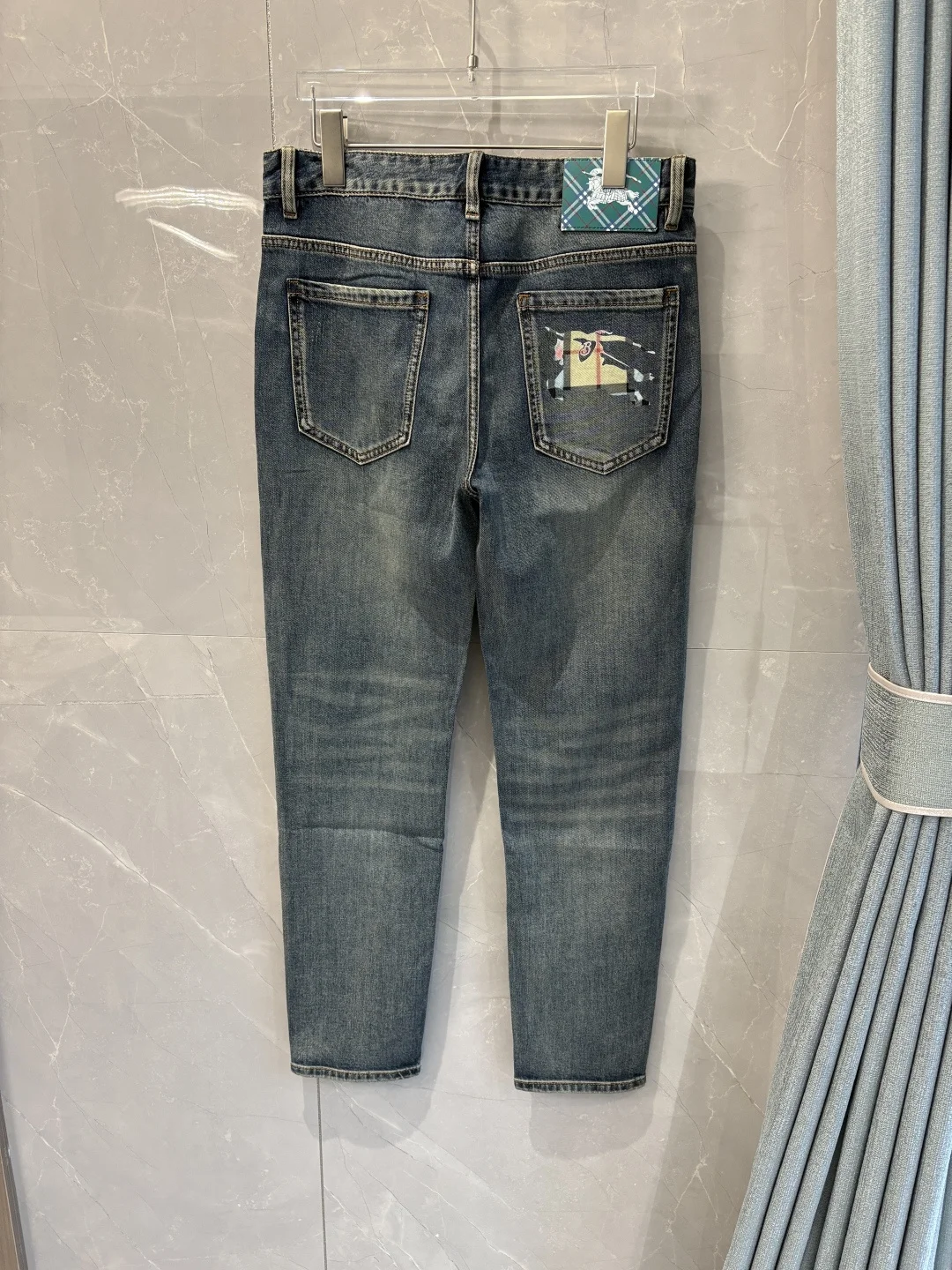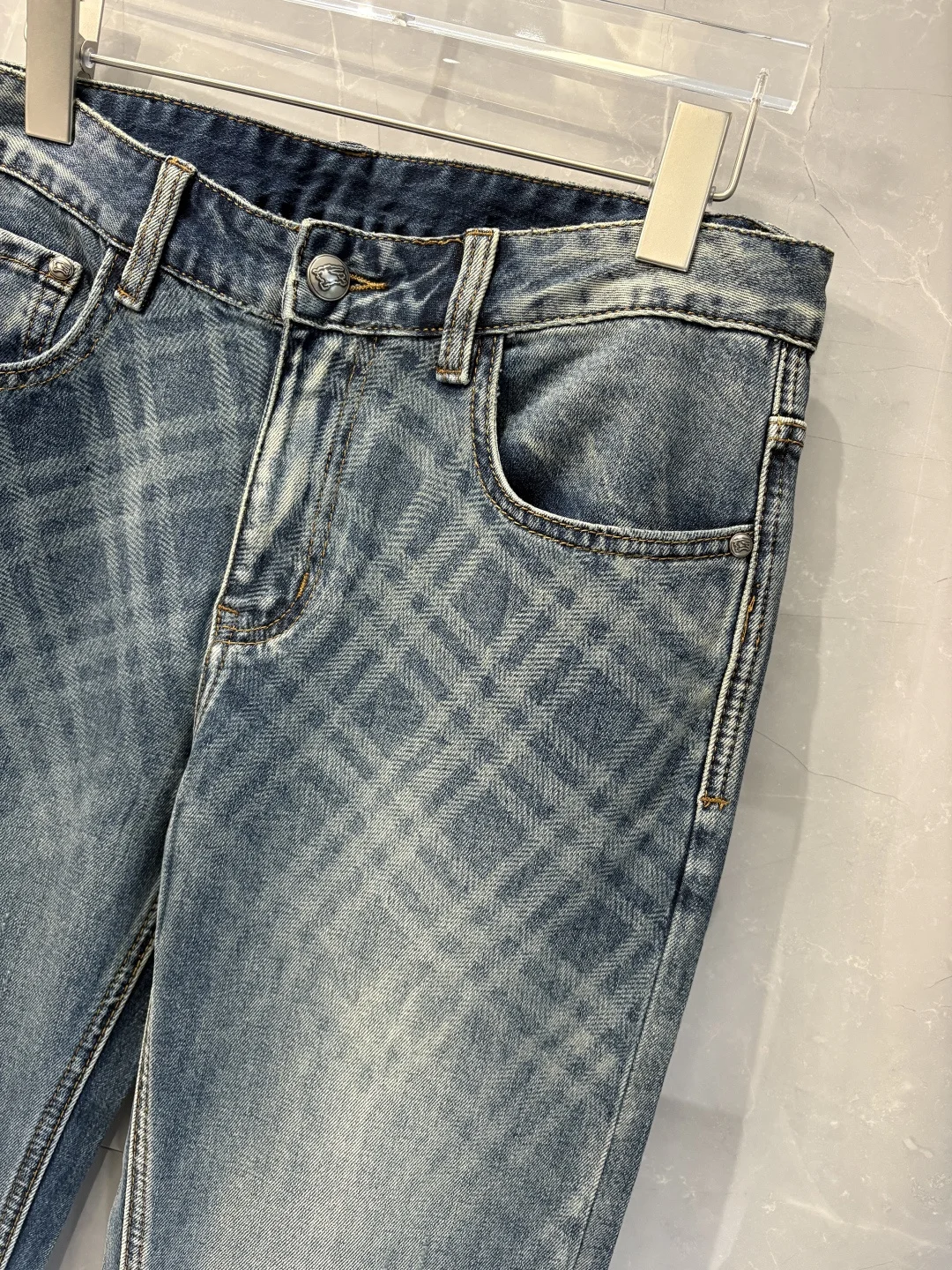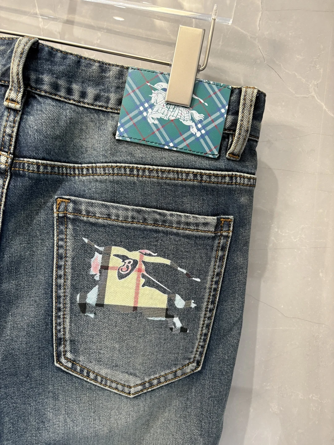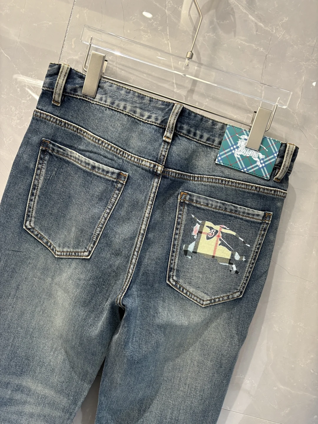 巴宝莉2026春夏经典蓝洗水牛仔裤