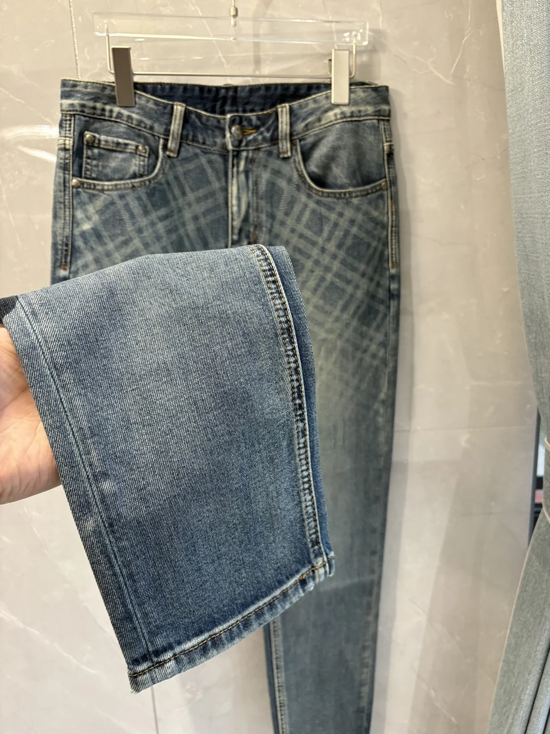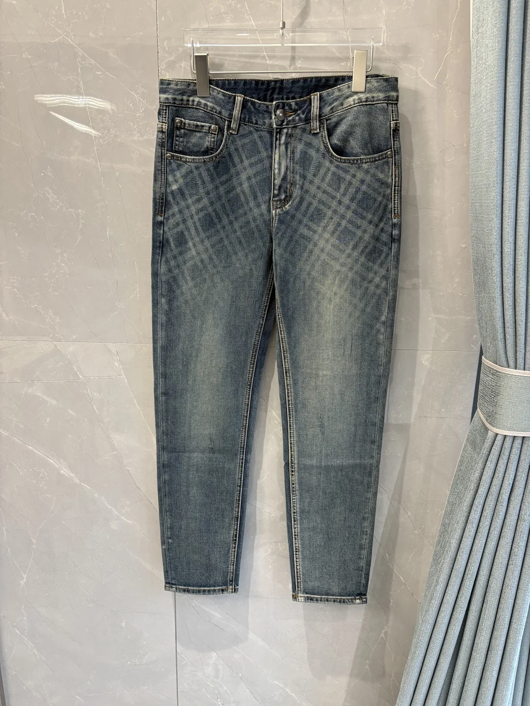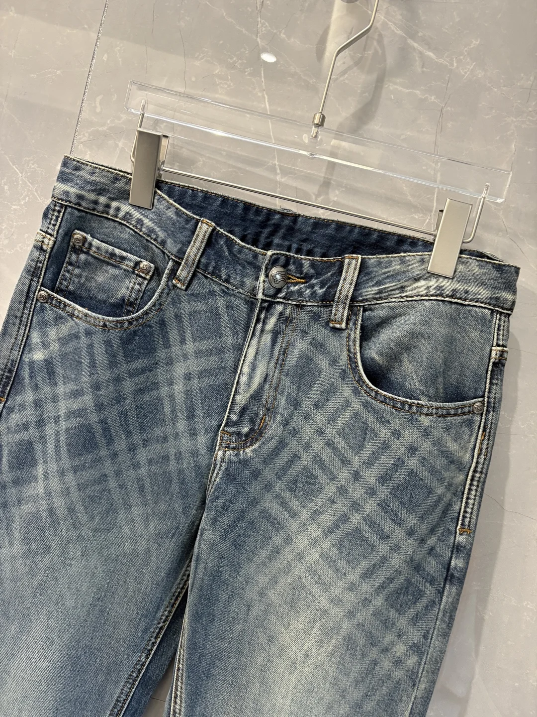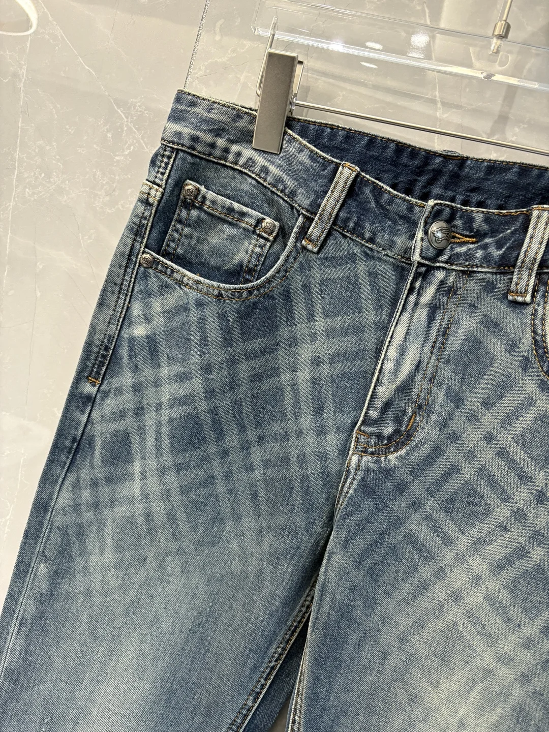 巴宝莉2026春夏经典蓝洗水牛仔裤