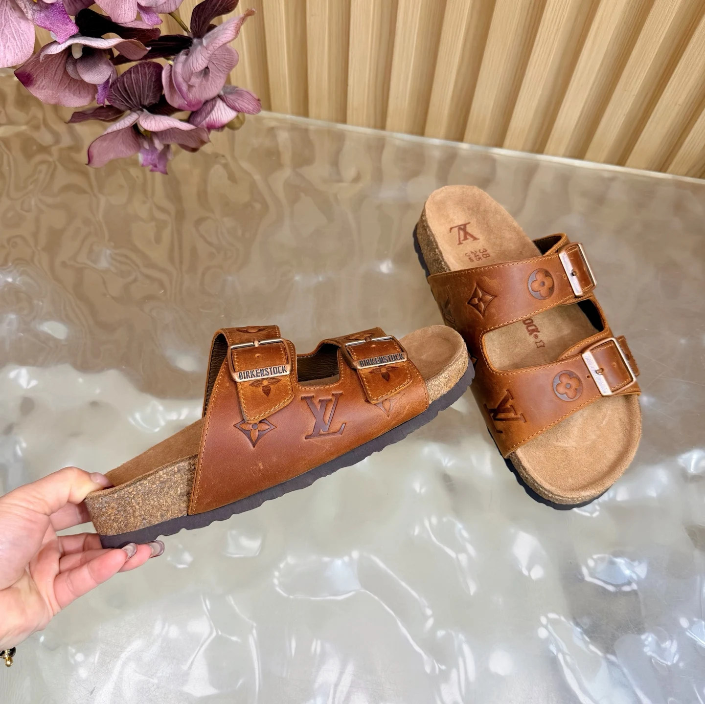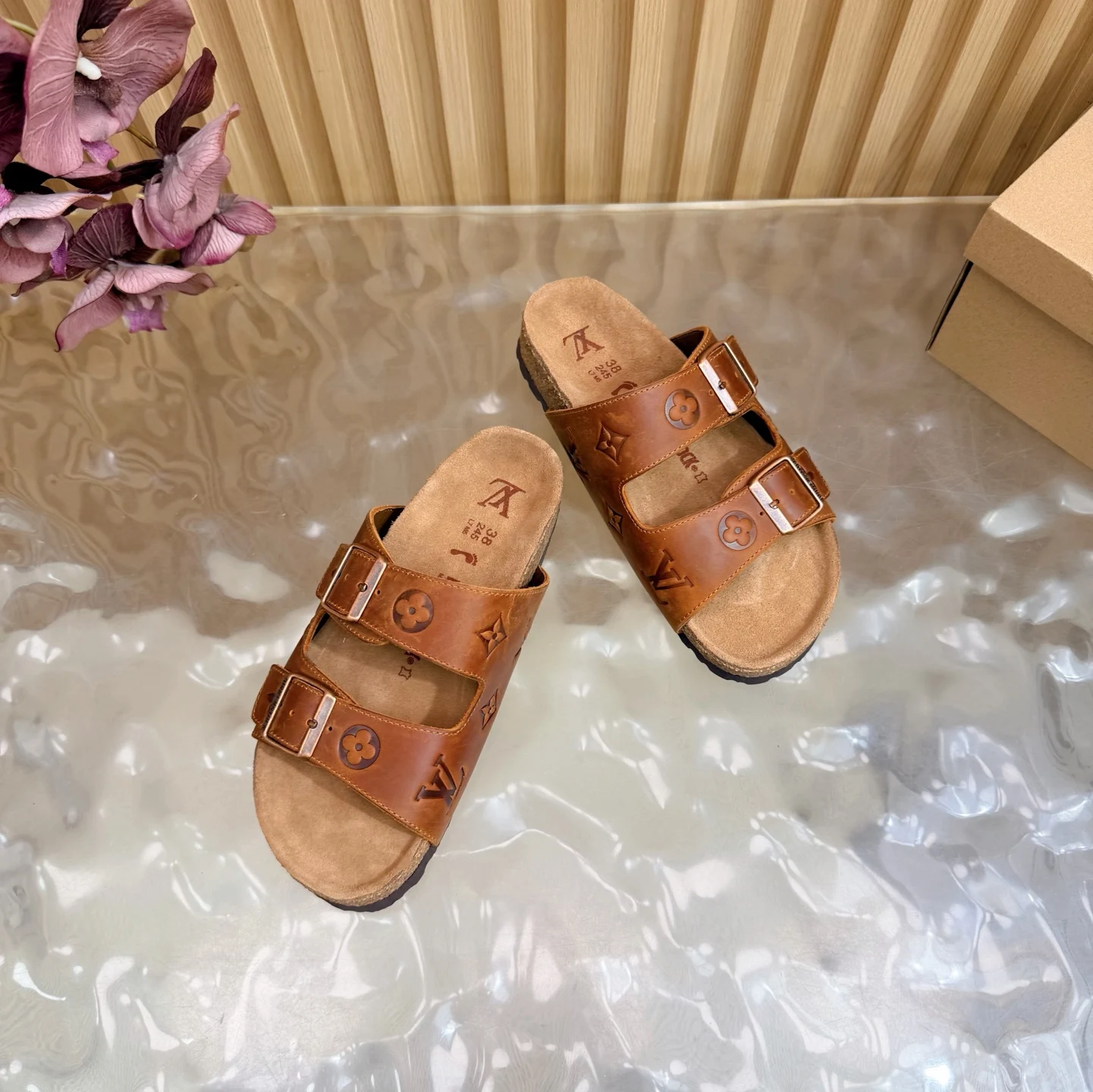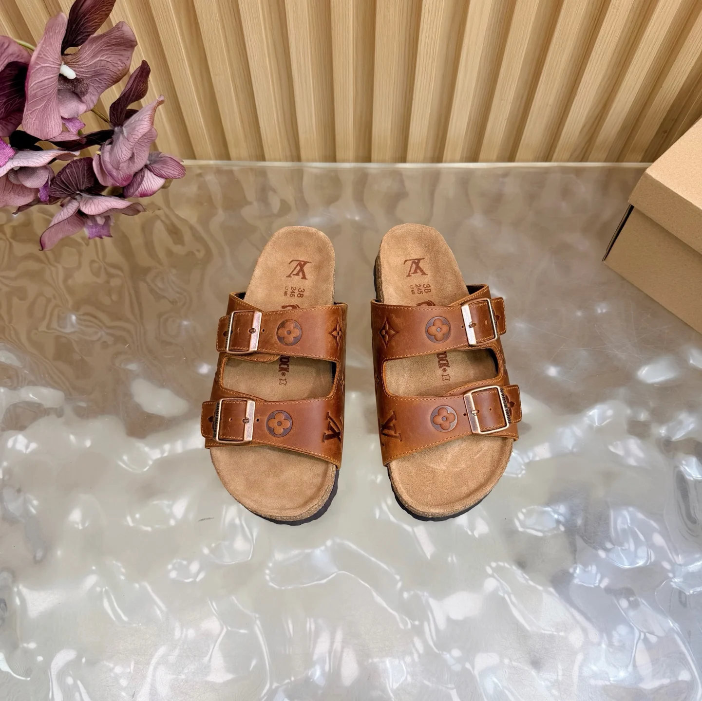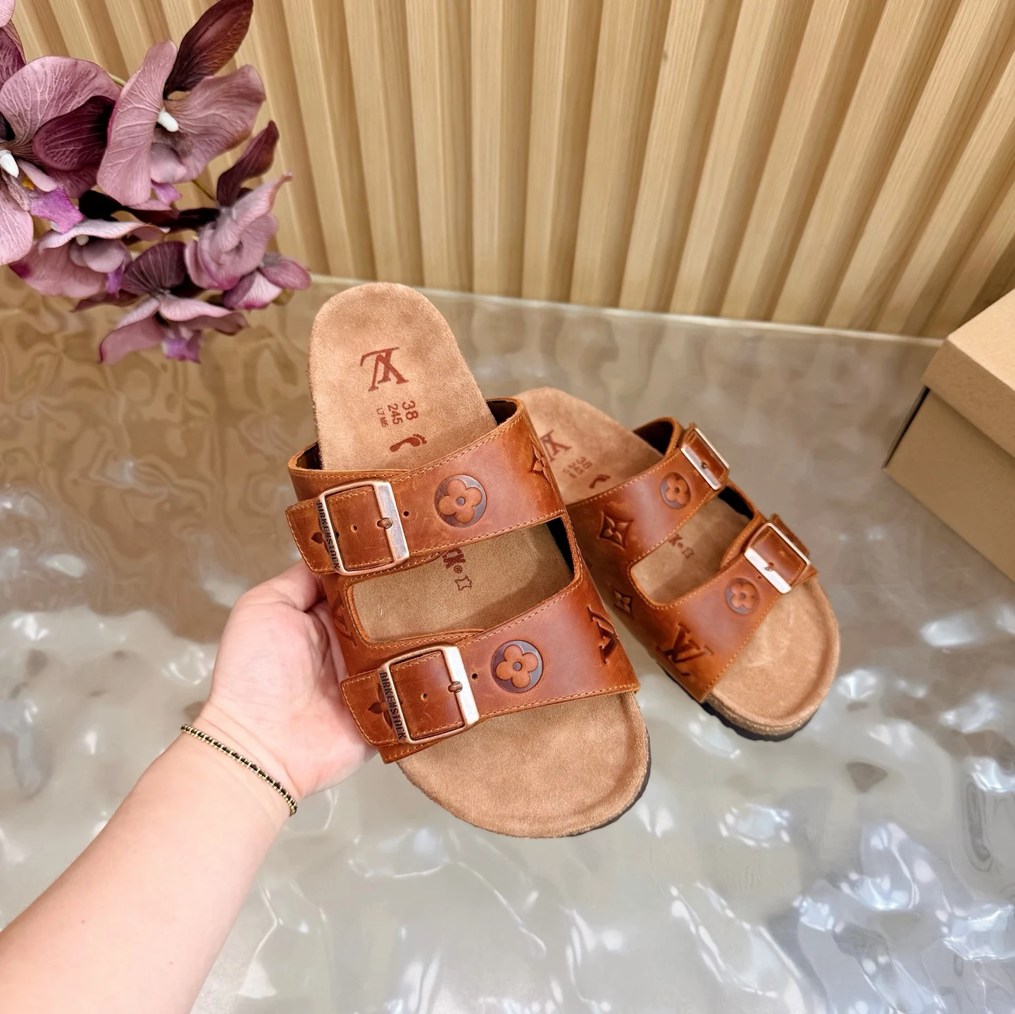LV路易威登 2026春夏新品 包头软底拖鞋Lv 勃肯穆勒拖鞋硬货上新 鞋面 原版特定牛京压花