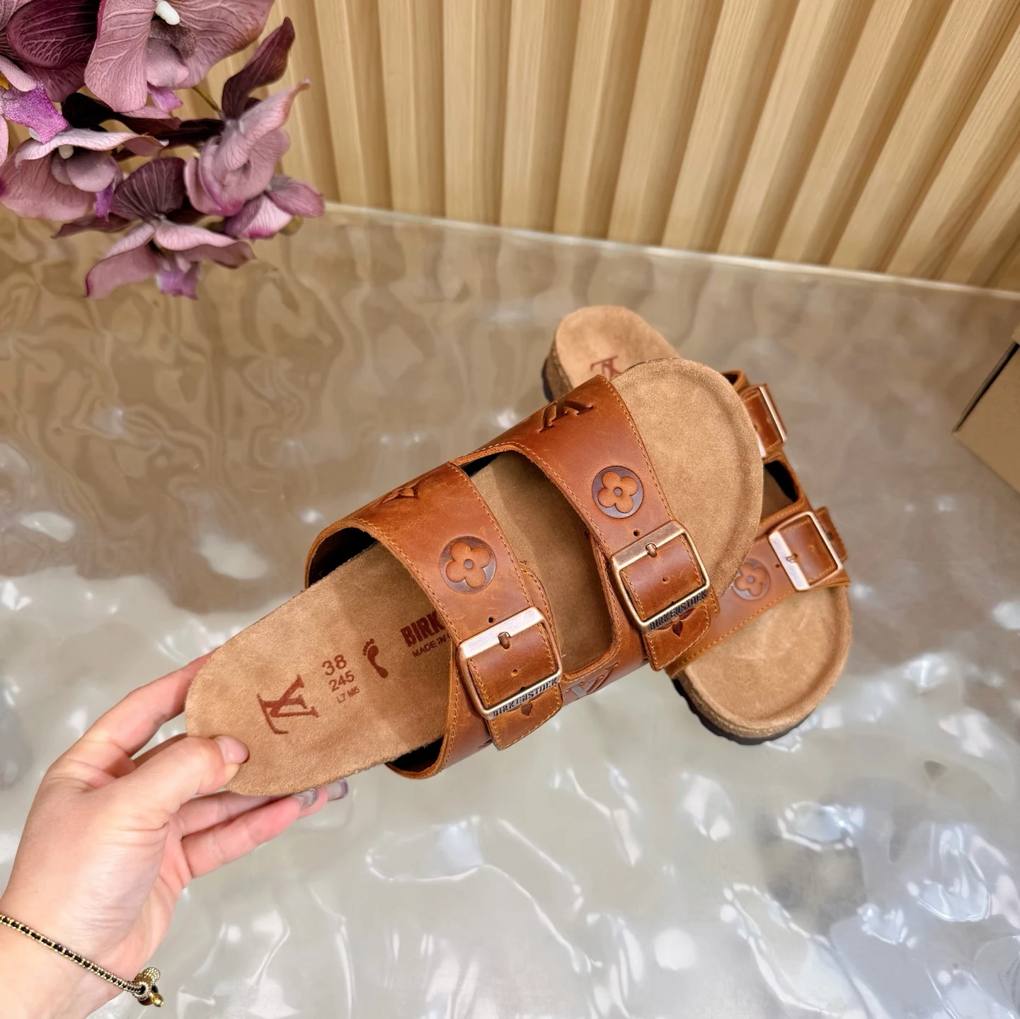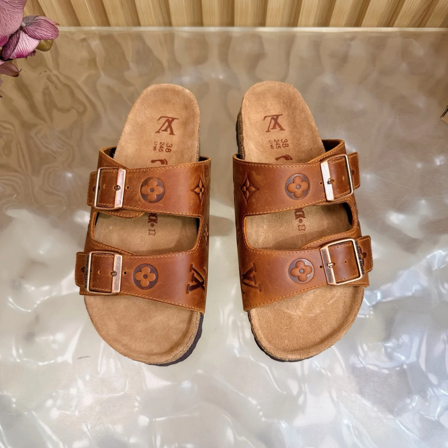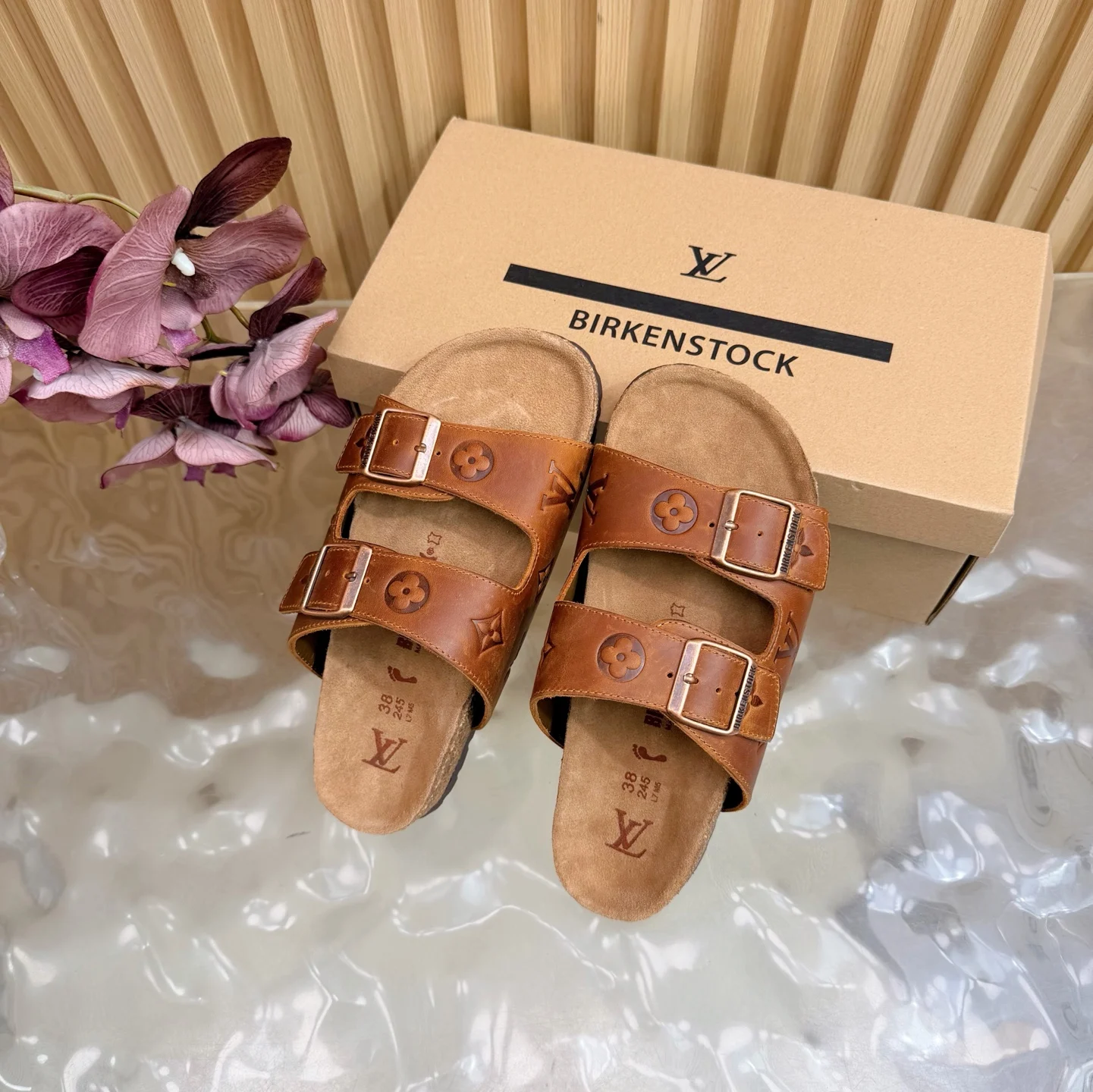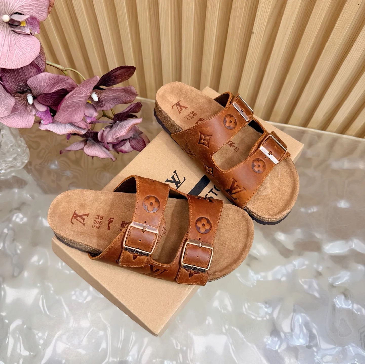 LV路易威登 2026春夏新品 包头软底拖鞋Lv 勃肯穆勒拖鞋硬货上新 鞋面 原版特定牛京压花