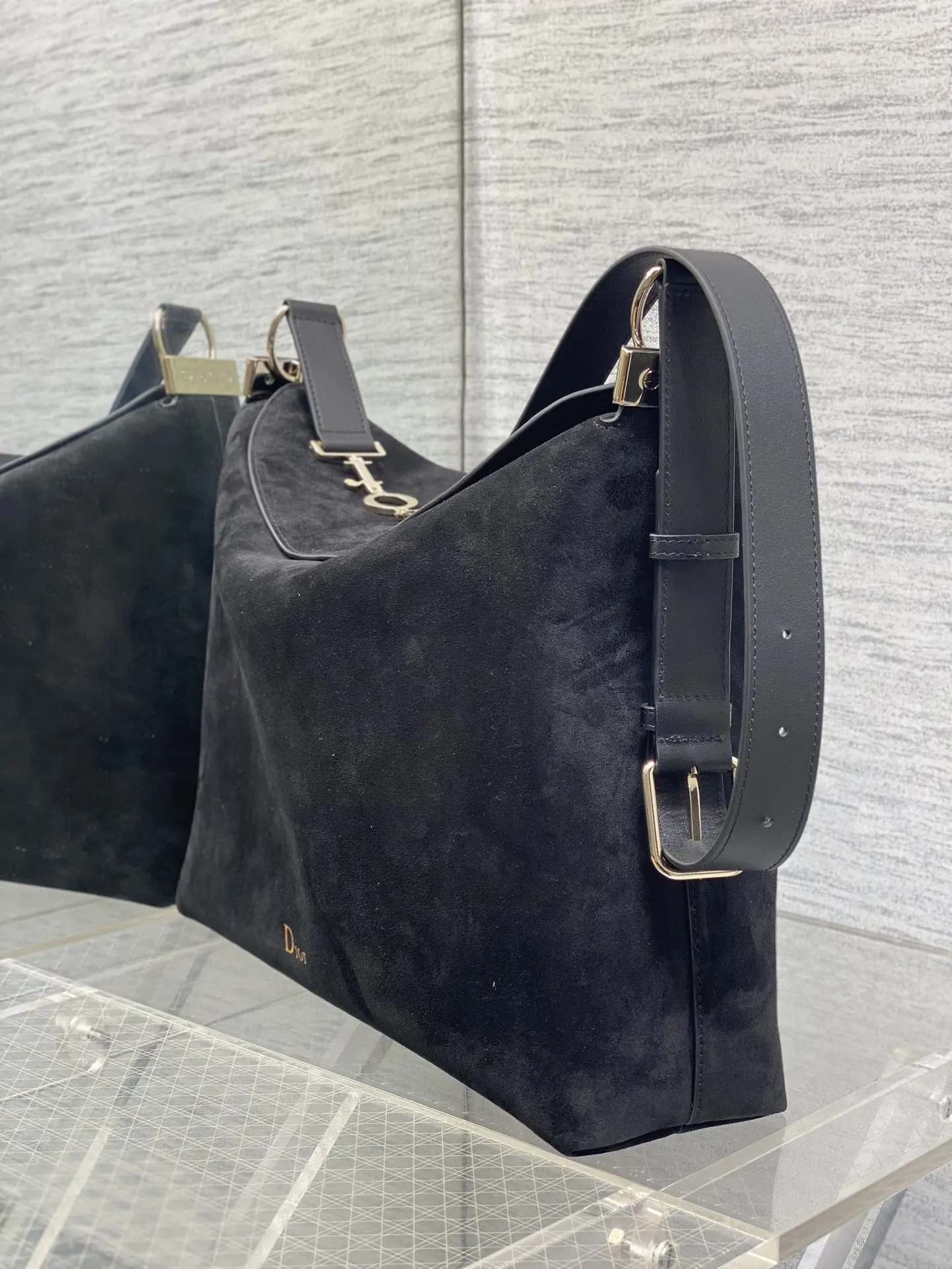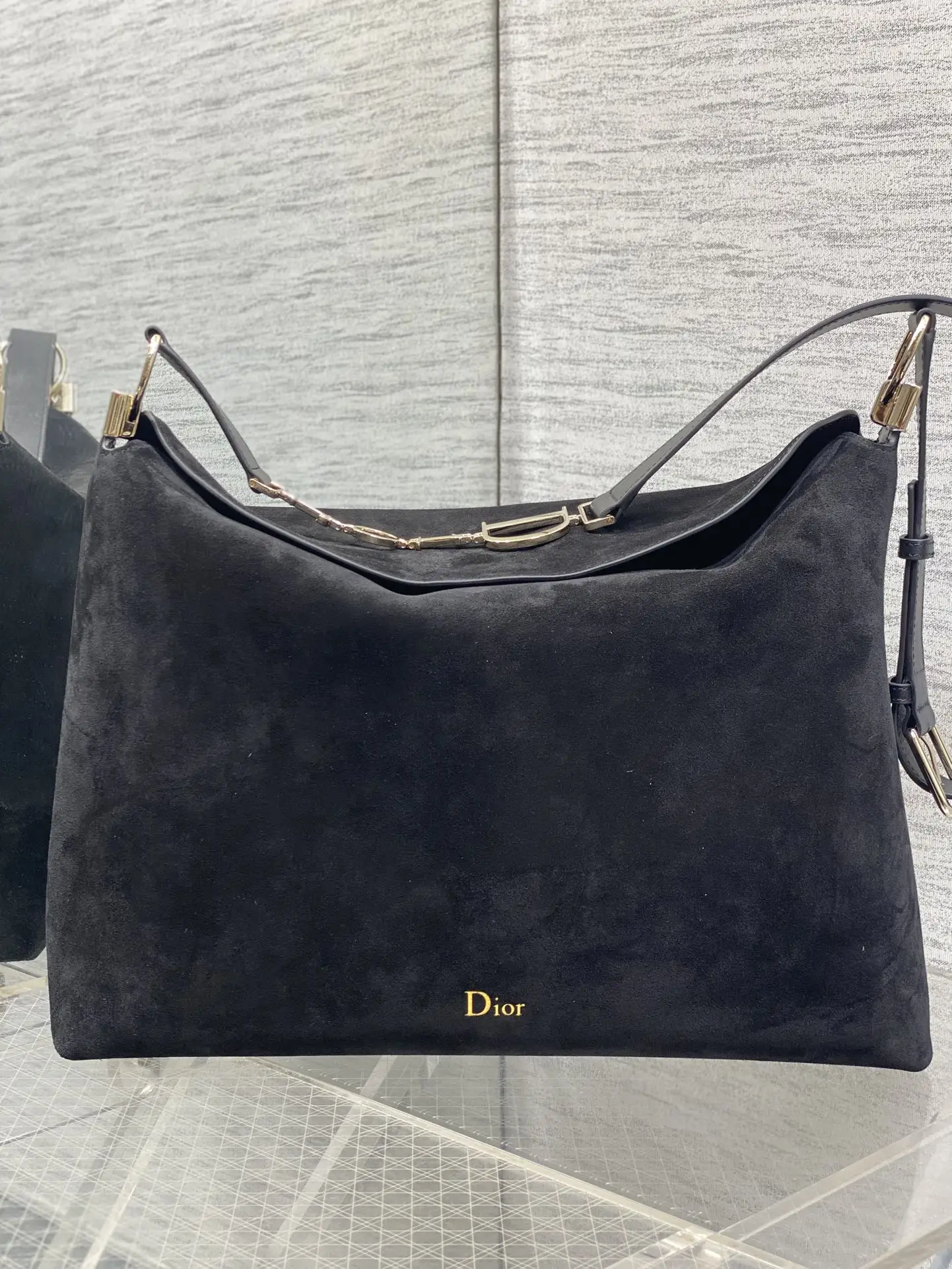 大号浅金Dior2026春夏新款Chrustian这款Hobo包采用黑绒拼皮 触感柔软 春季氛围感满满 月牙包型+金属