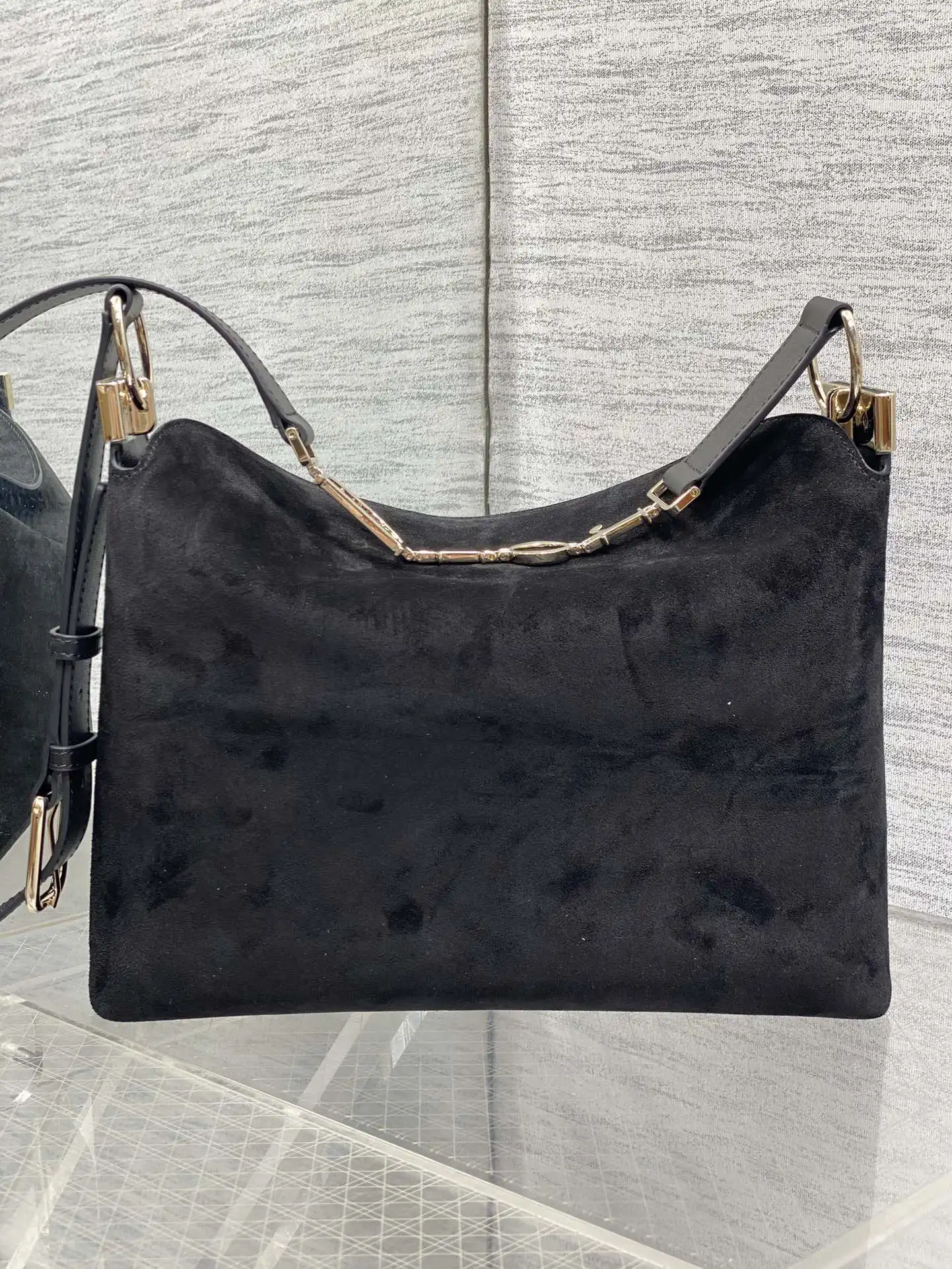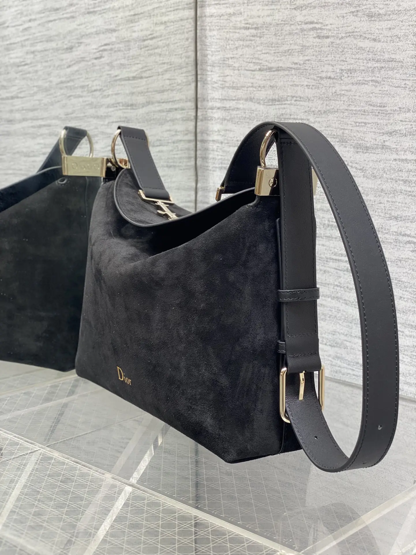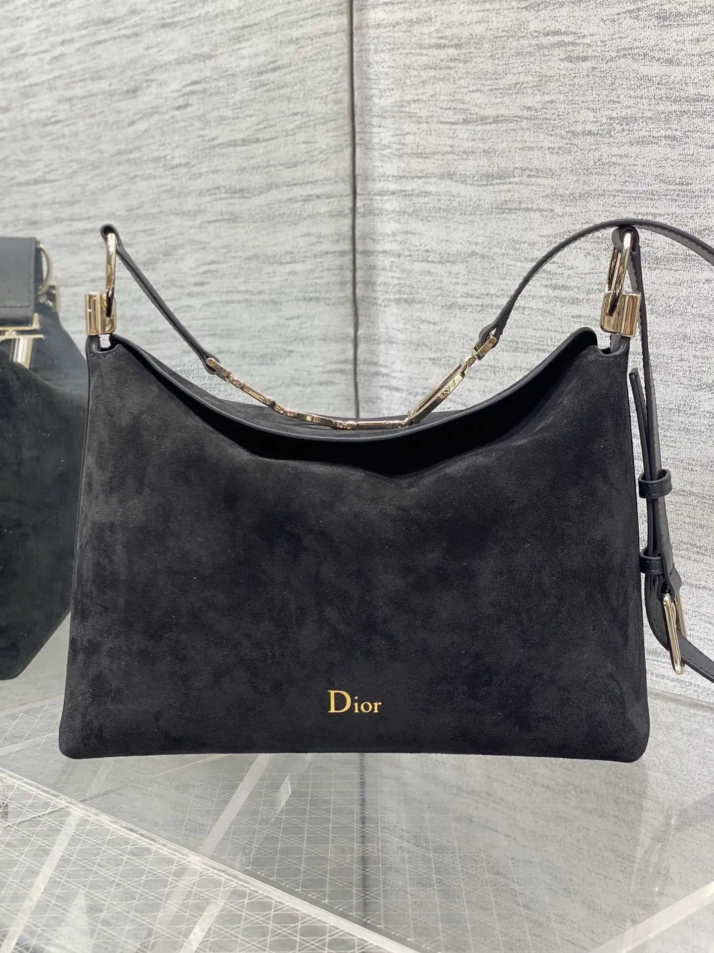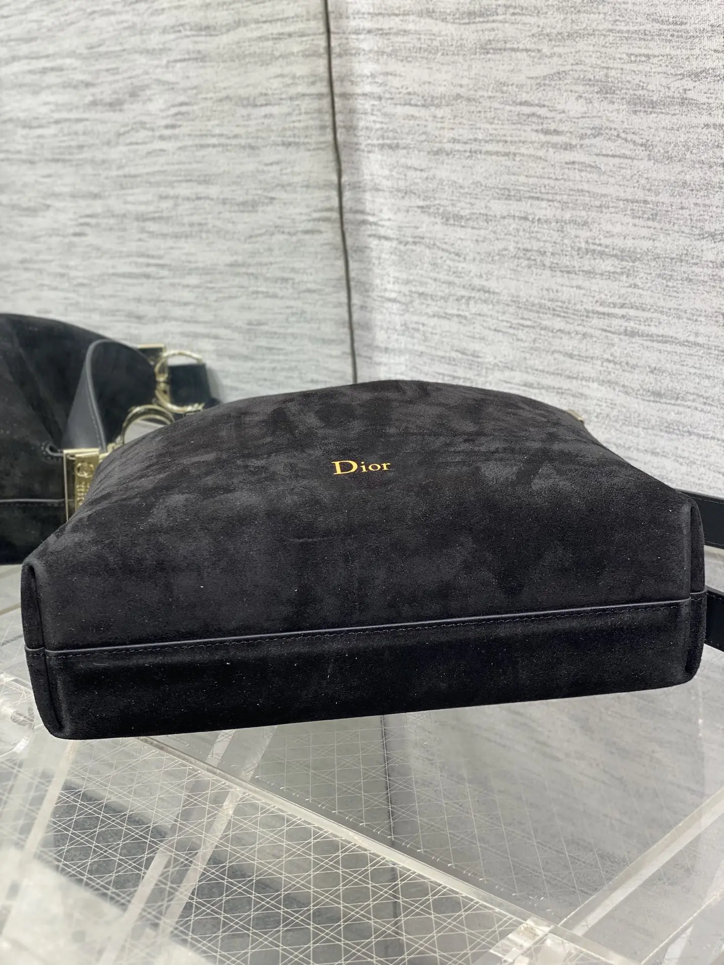 小号浅金Dior2026春夏新款Chrustian这款Hobo包采用黑绒拼皮 触感柔软 春季氛围感满满 月牙包型+金属