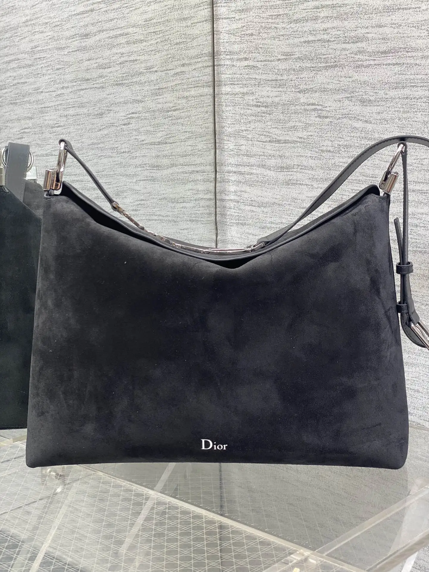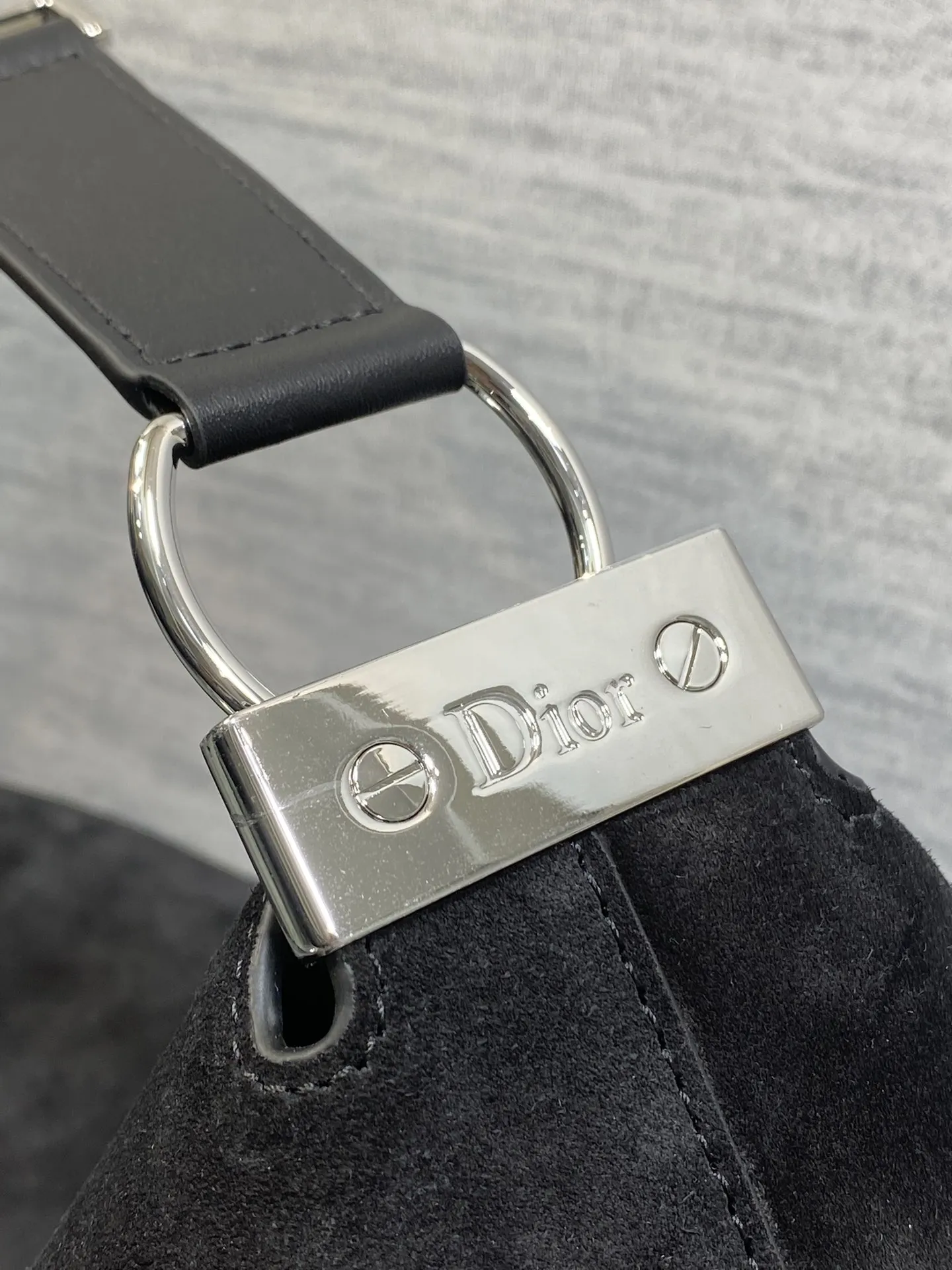 大号银扣Dior2026春夏新款Chrustian这款Hobo包采用黑绒拼皮 触感柔软 春季氛围感满满 月牙包型+金属