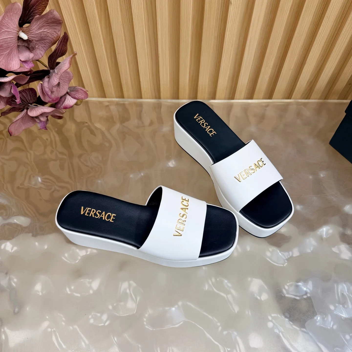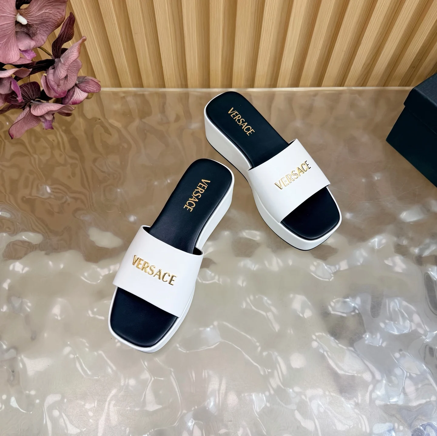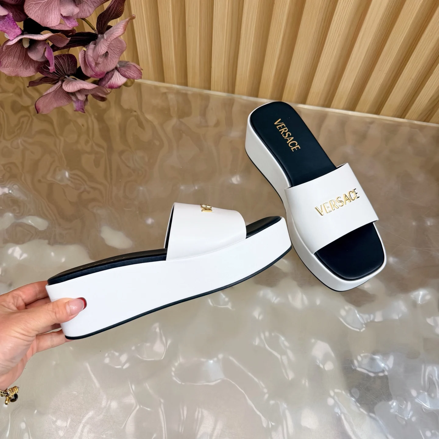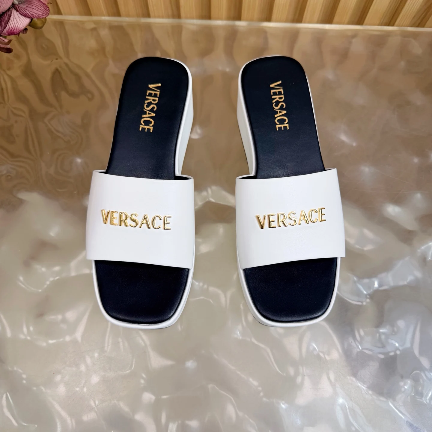 Versace范思哲 2026春夏新款 / GIANNI RIBBON 美杜莎蝴蝶结高跟半拖 正面饰有 Medusa 蝴蝶结 采用经典的 nastro Gianni 缝线 材质