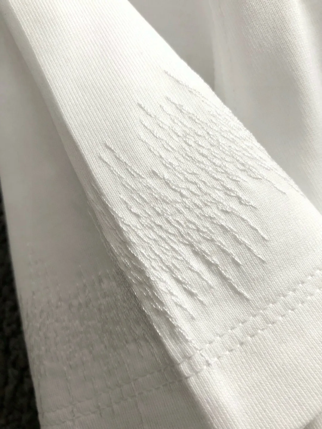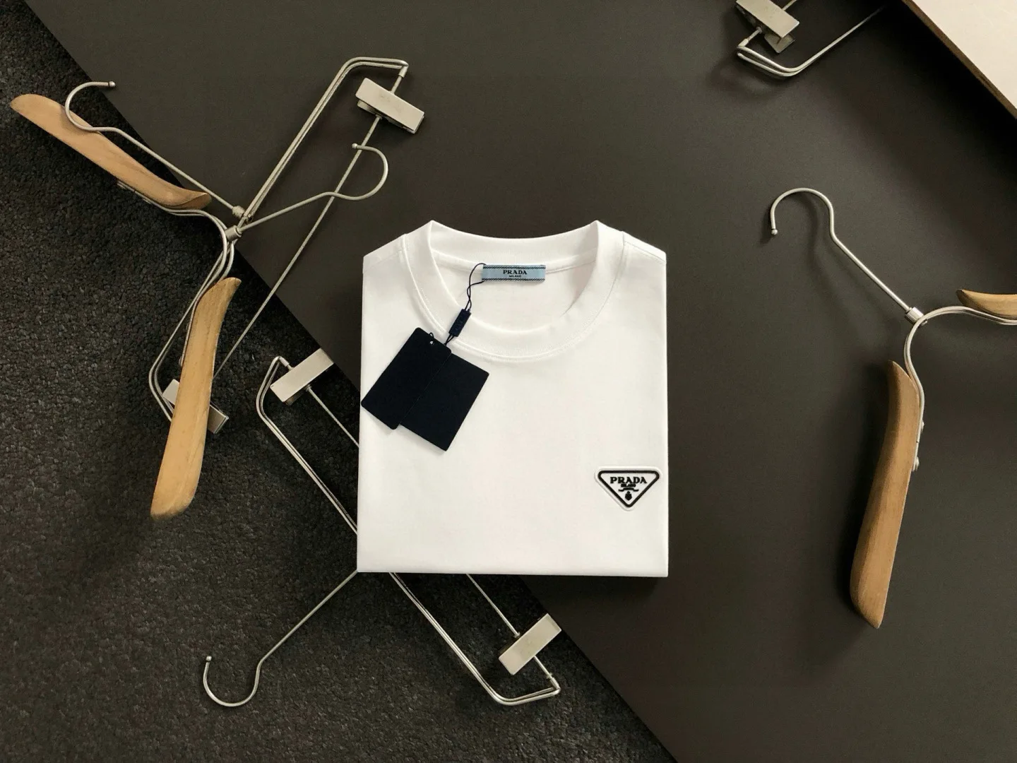 2026春夏短袖 以三角标立体胶印为主调 巧妙融入本色线条刺绣素 打破传统短袖的单调感 彰显个性与不羁 立体剪裁贴合身形 设计利落有型 轻松拉长腿部线条 打造随性洒脱的休闲风格 是春夏过渡季不可或缺的时尚单品