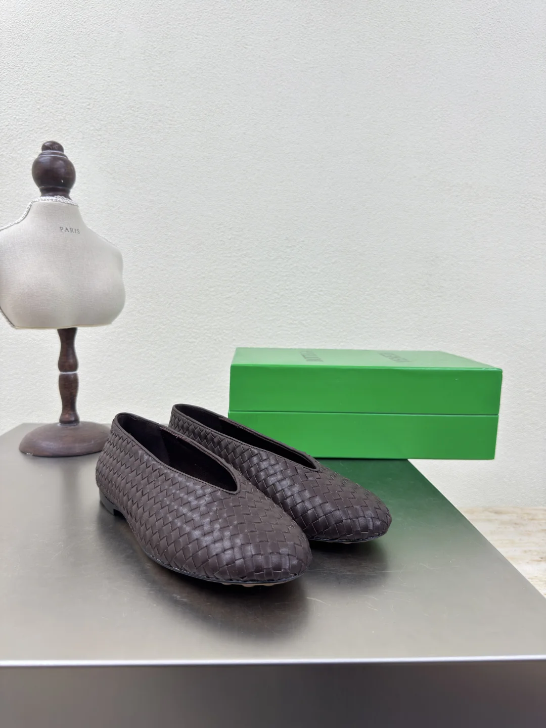Bottega Veneta/BV F065 2026ss新款编织玛丽珍平底鞋乐福鞋
