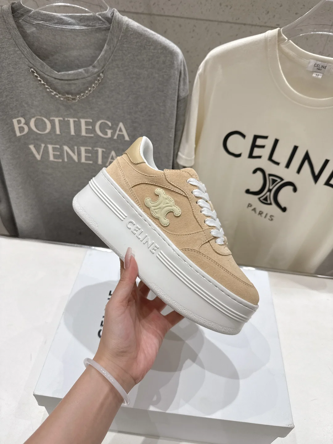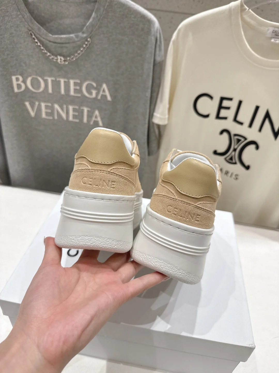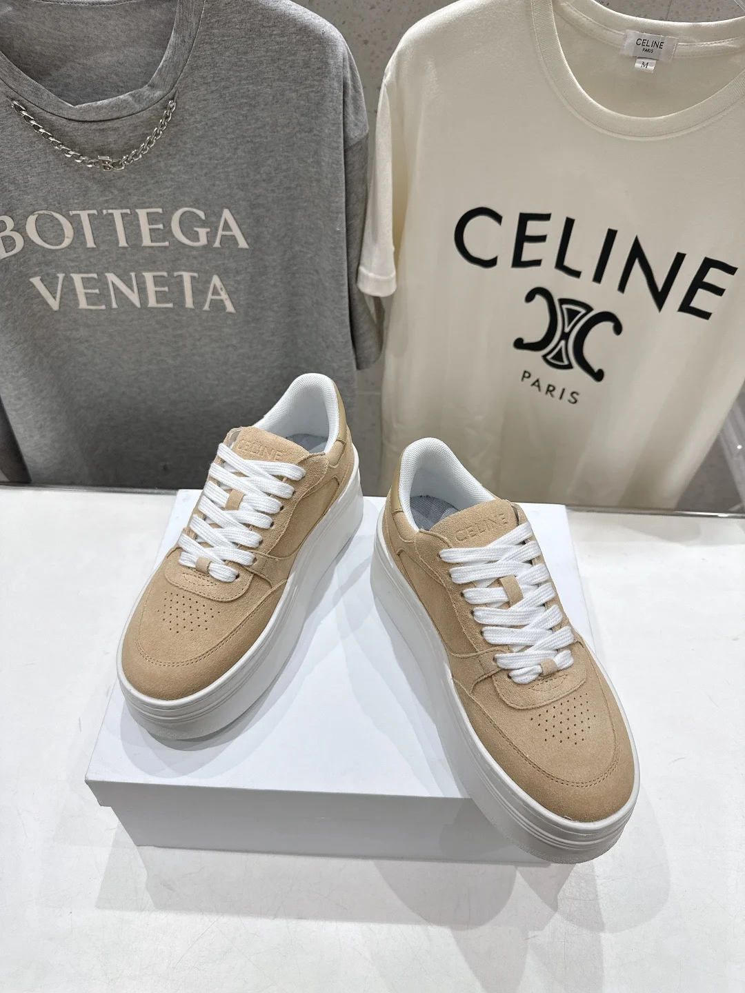 高版本出厂 厚底CELINE*思琳赛琳 2026ss新款徽标系带厚底休闲鞋小白鞋