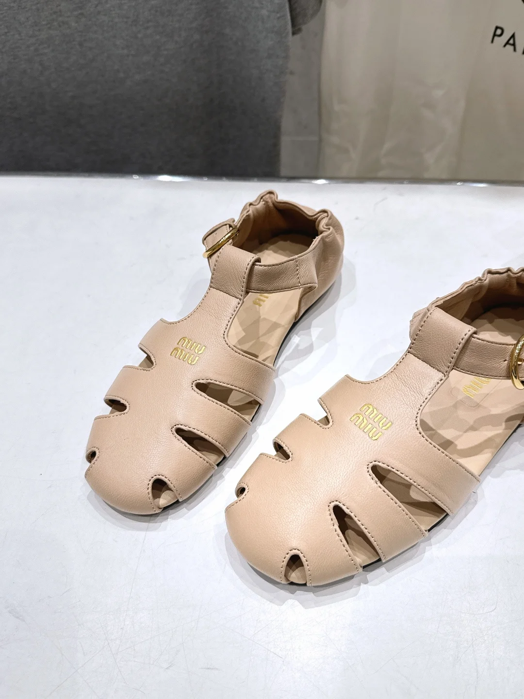 高版本出厂MiuMiu*缪缪F033 2026ss夏季新款平底羊皮复古风凉鞋拖鞋