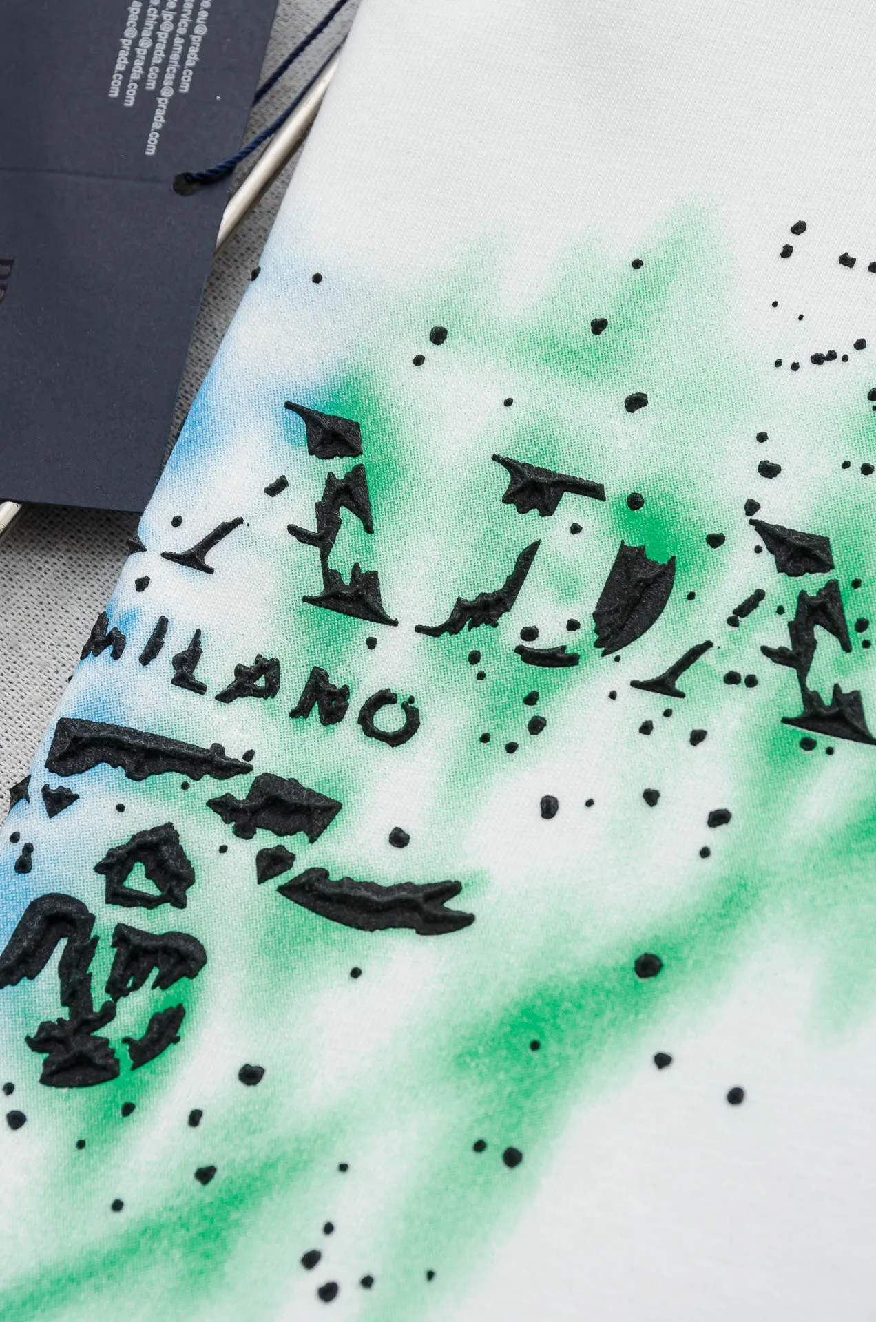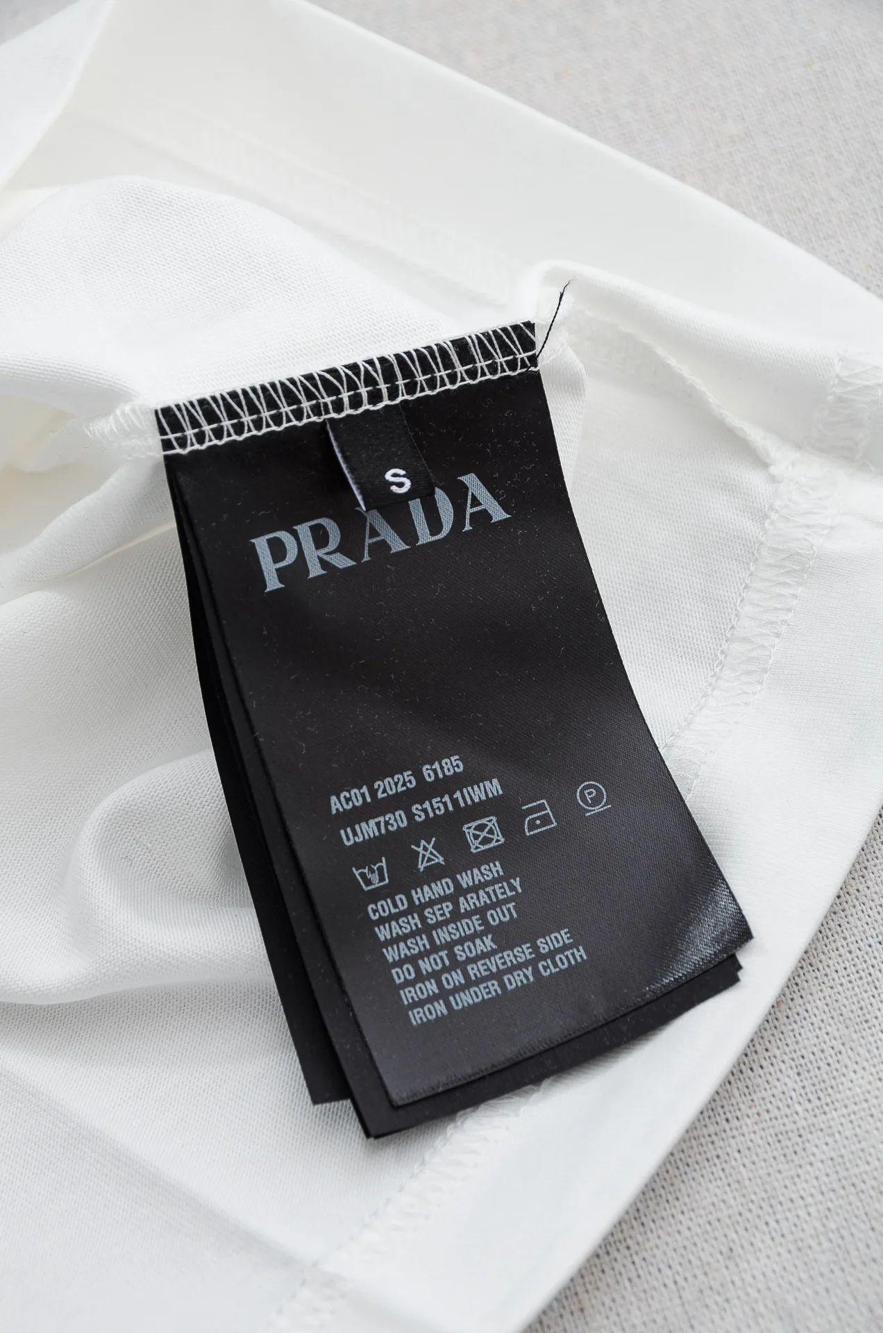 PRADA普拉达2026SS时尚潮人必备男士休闲圆领短袖T恤衫 设计理念潮流前卫与尚可持续 此款圆领T恤的前幅立体印花工艺突出有质感 常规的直筒圆领版型剪裁 上身合体修身不显臃肿 上身效果极佳 专为夏季打造的新品T恤