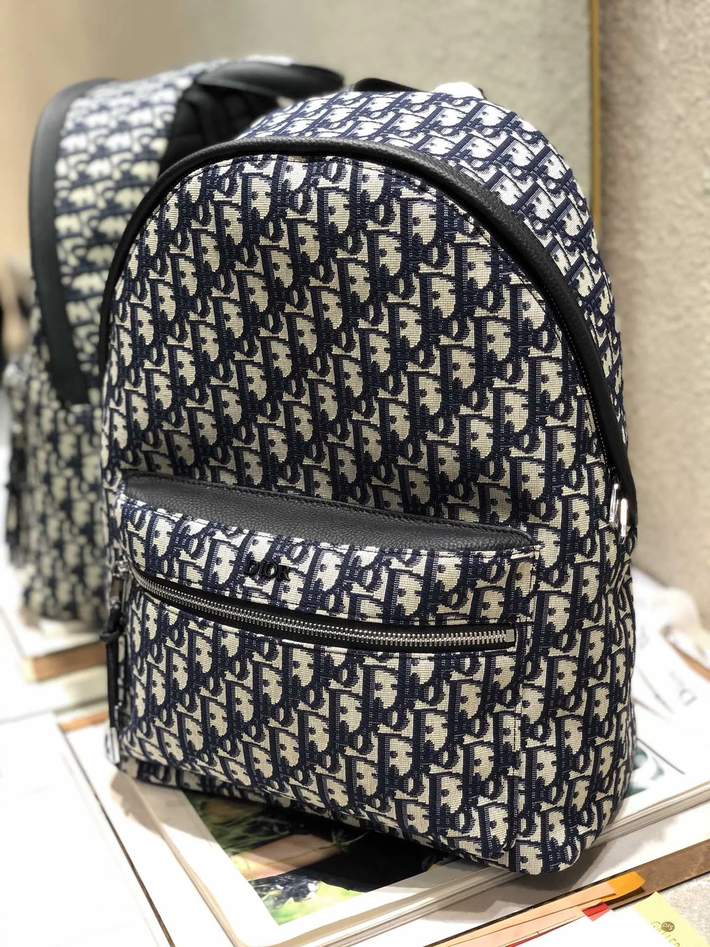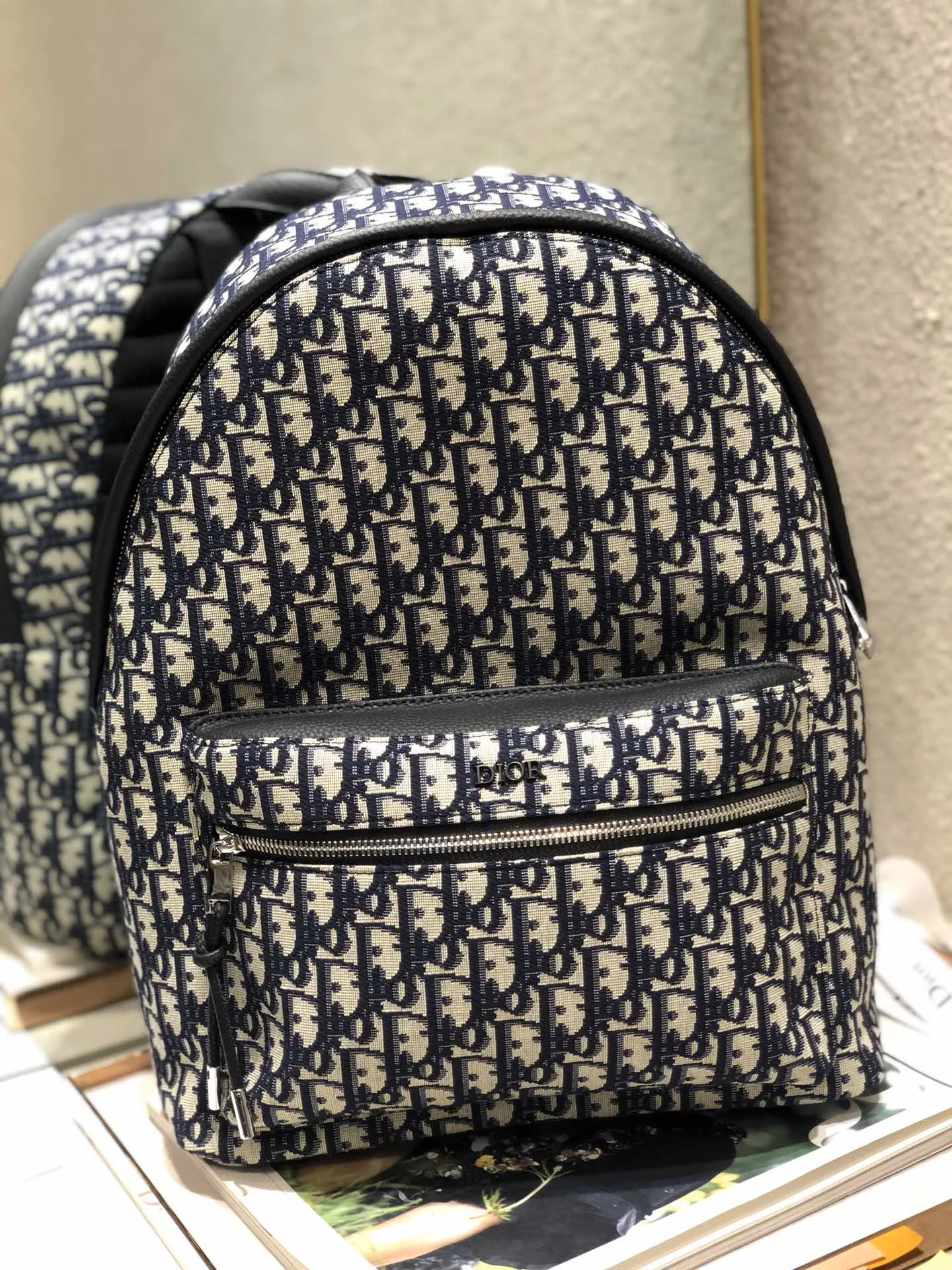 大号 DI0R Oblique 双肩背包可以当情侣款的DI0R Oblique双肩背包来喇在老花的基础上还有金属材质的小Logo 软萌软萌的 帆布的材质十分轻便 容量大 重量小 实用颜值又在线大号 29×14×36 CM小号 23.5×11×32 CM