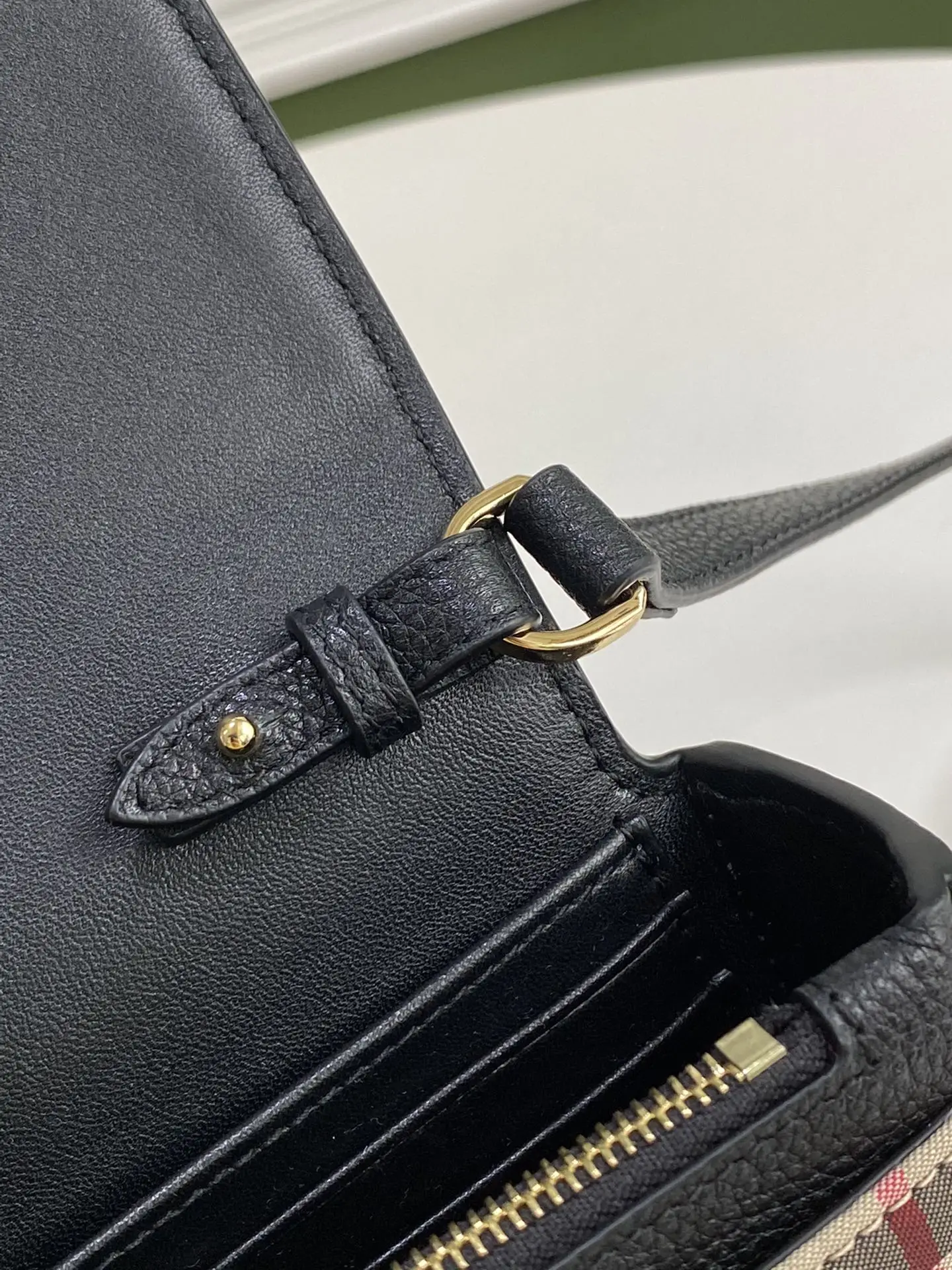 特级 B家精巧的斜背包 选用意大利鞣制粒纹皮革与典藏 Vintage 复古格纹裁片打造 可单肩背 斜背 或缔造手拿包造型 21 x 4.5 x 12.5cm225150