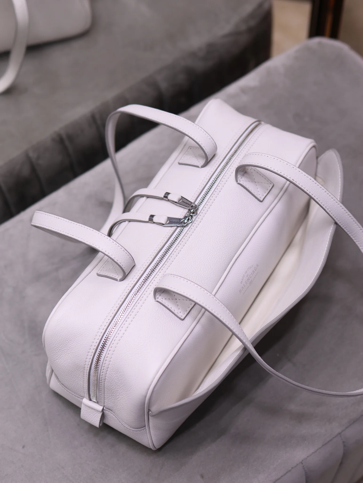 巴黎世家 CARRIE小号保龄球包 白色 手袋共推出有小号 中号两种尺寸 均搭配有双向拉链与实用肩带 完美适配日常造型!