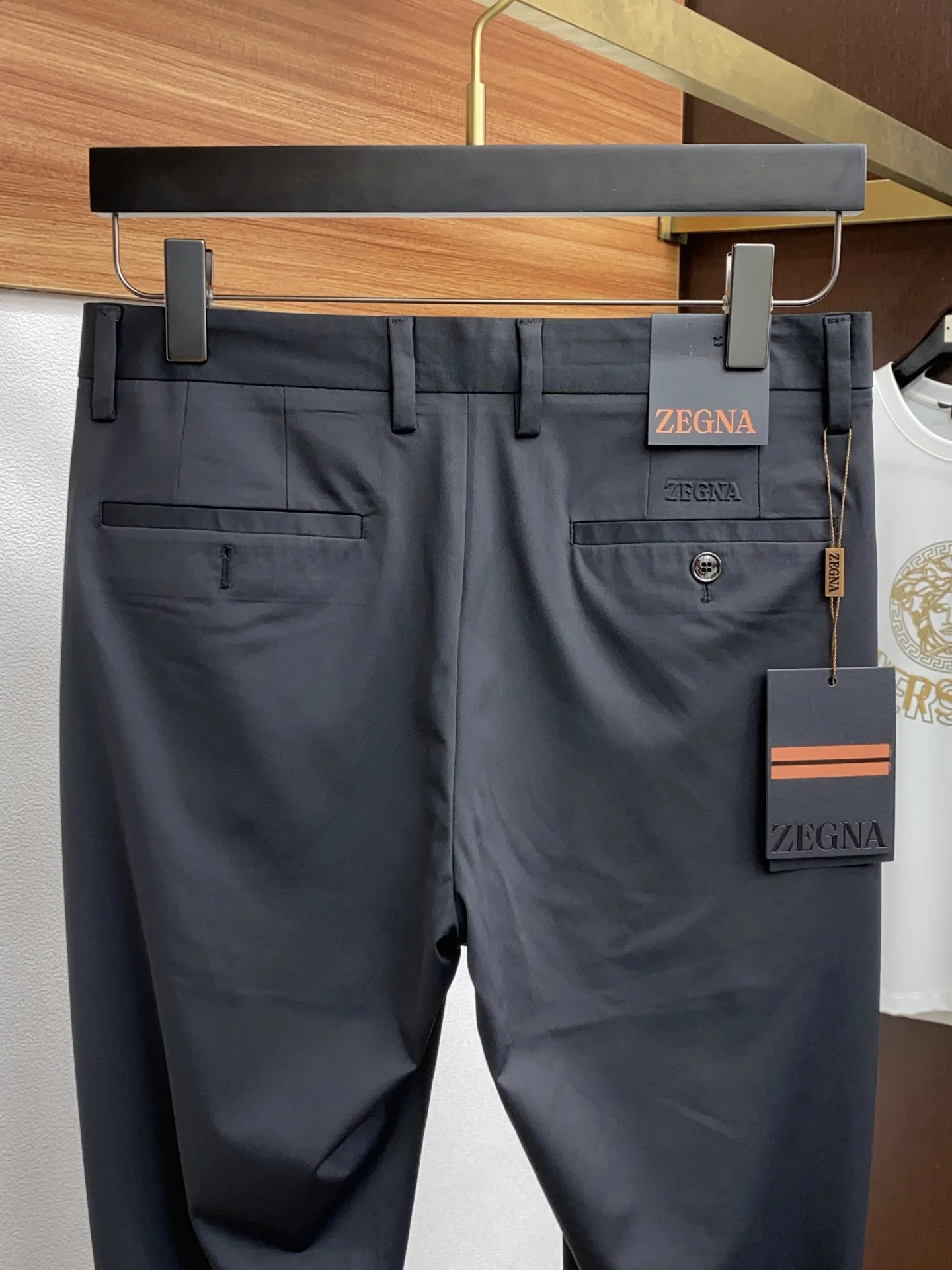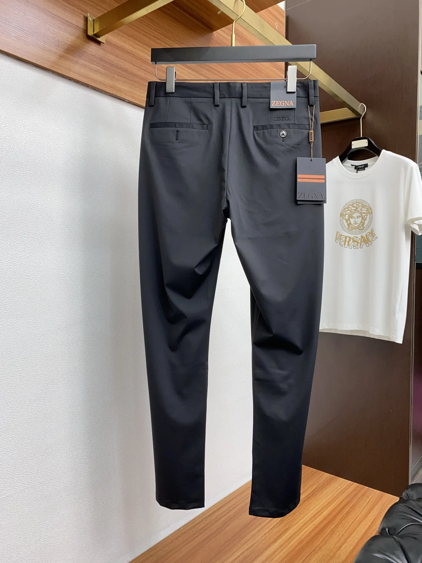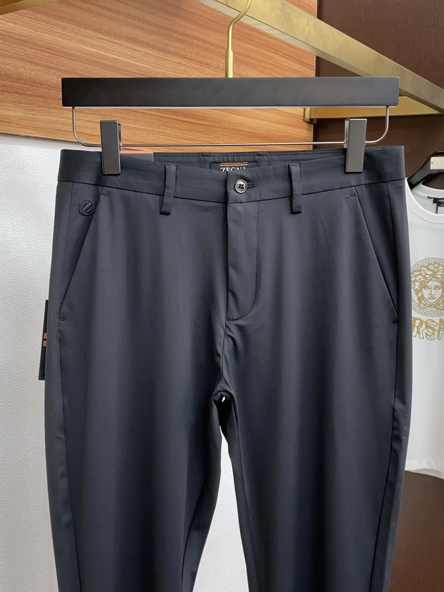 杰尼亚新款 官网同步发售休闲西裤 进口定制高端面料 面料柔软舒适 胶标彰显了品牌特质 采用顶级logo五金配置 细节无可挑剔 上身效果超棒 完美兼具商务与休闲风格穿搭 衣橱里必不可缺少的百搭臻品