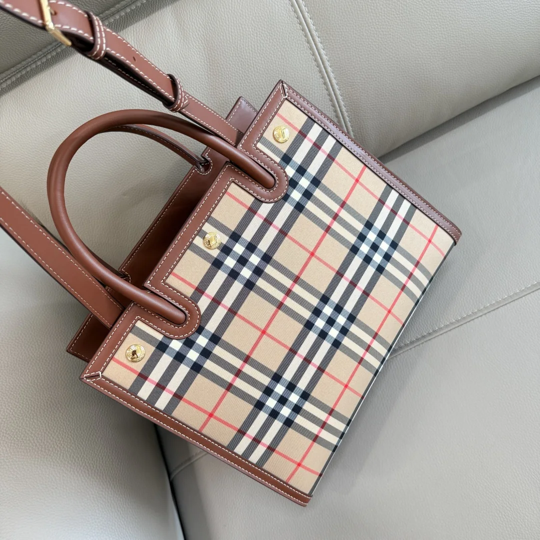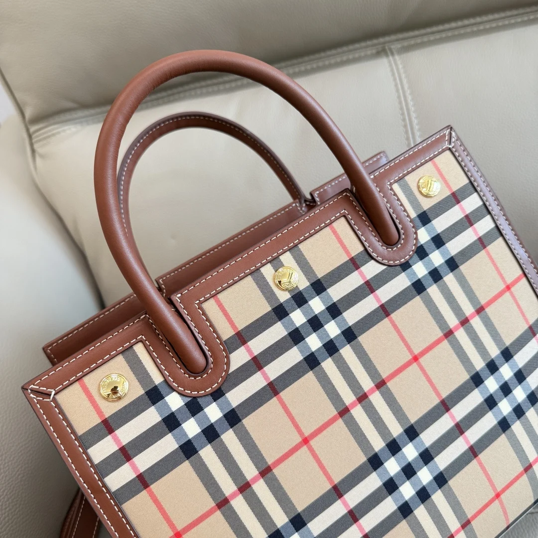 特级 B家精巧的 Title - 泰尔勒手袋 精选典藏 Vintage 复古格纹裁片打造 装饰光滑皮革边饰与三粒铆钉 可用顶部提柄手拎 或以可拆式背带缔造肩背造型 32 x 15 x 25cm型号2661