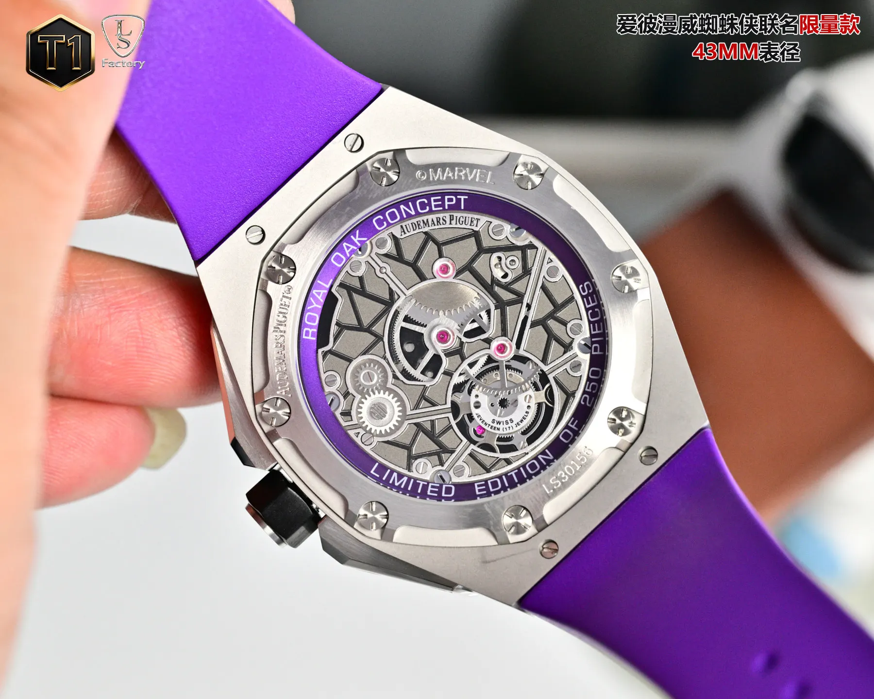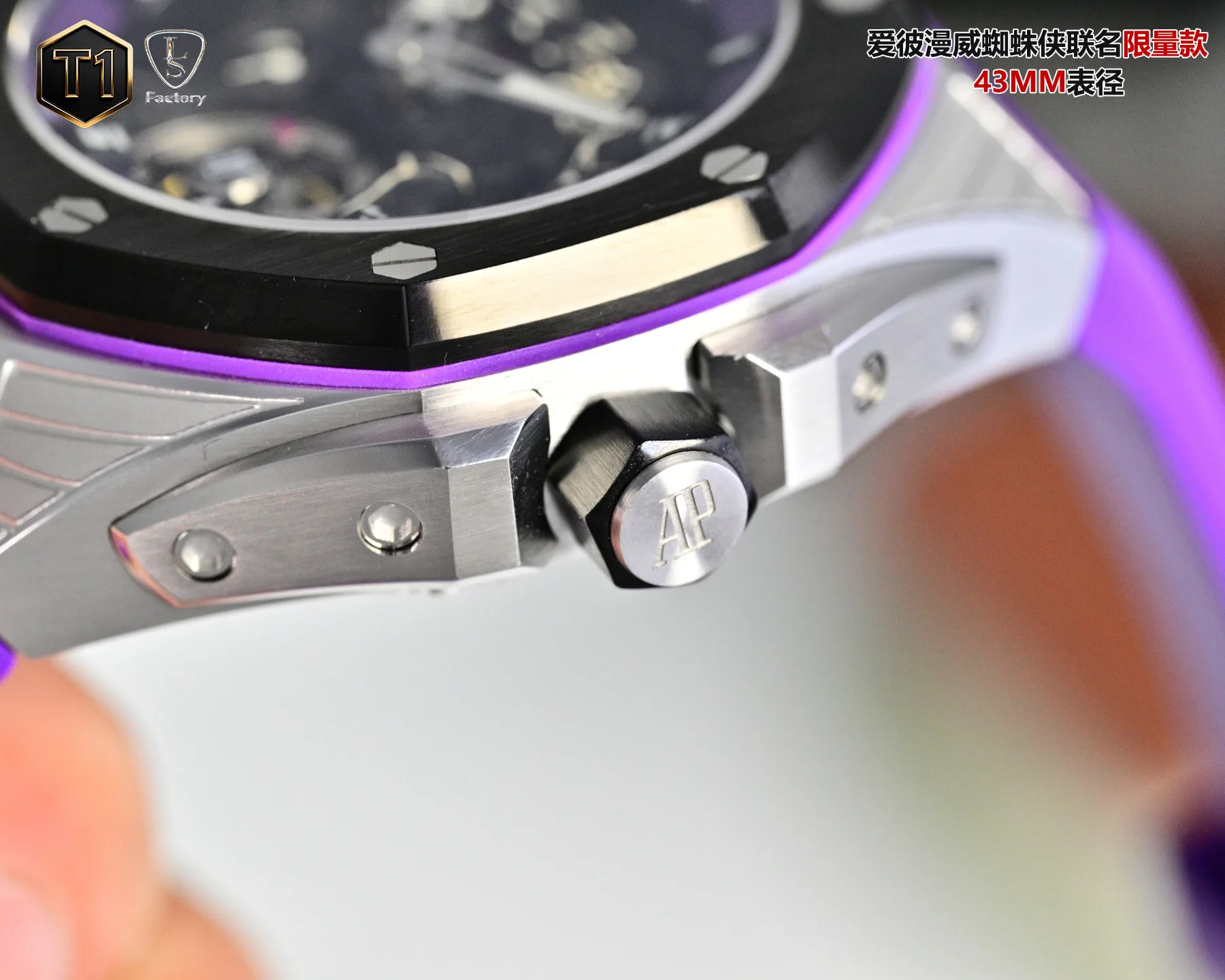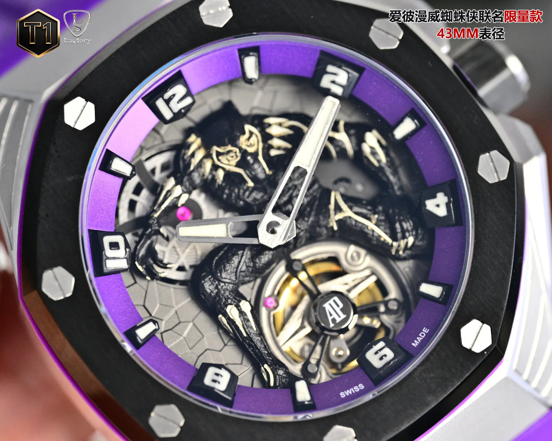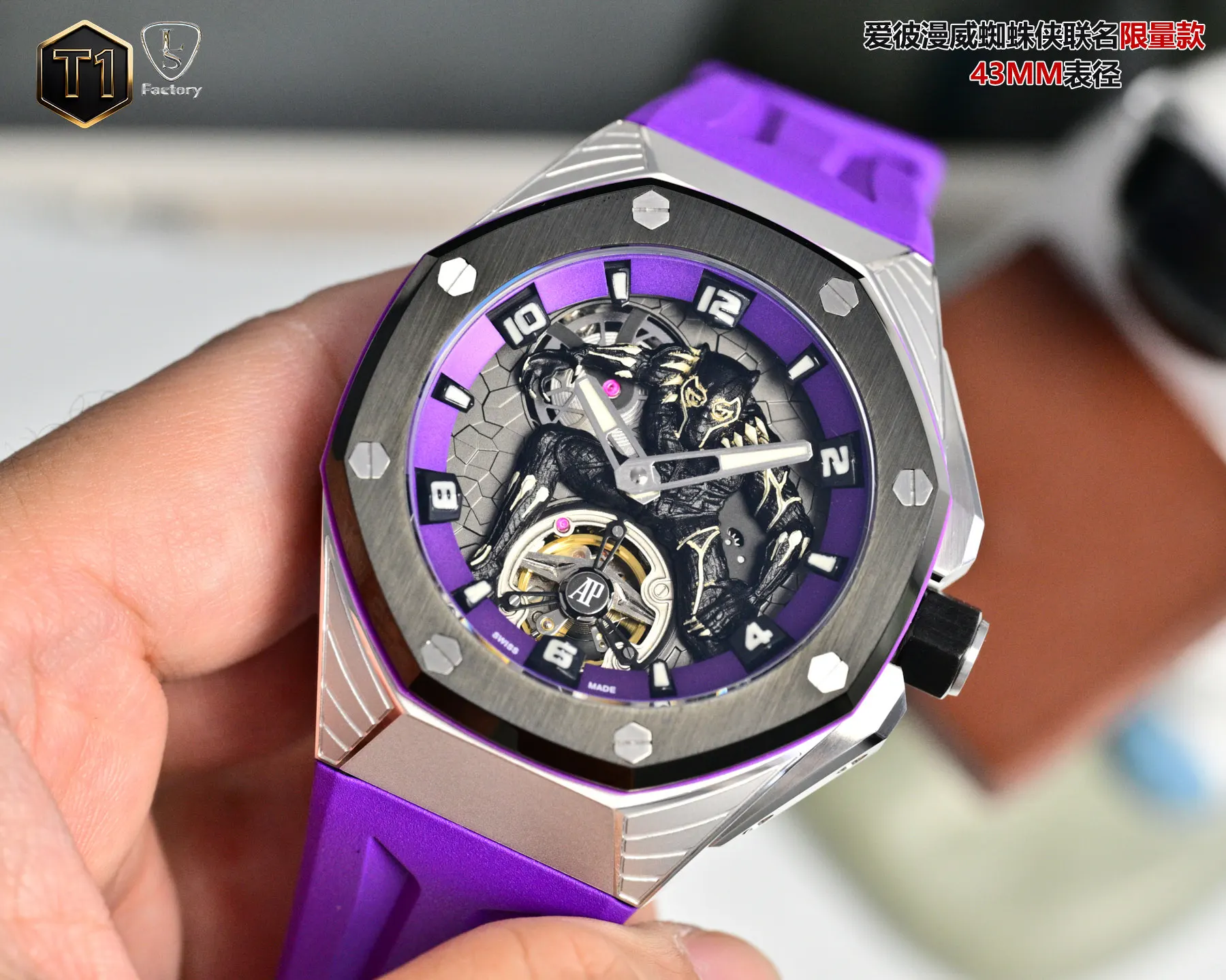 LS .Factory 爱彼 Audemars Piguet 漫威黑豹联名限量款 皇家橡树概念系列26620lO.OO.D077CA.011 新开模43 毫米表壳 采用全新设计 更符合人体工学的表壳 更精致的表壳细节 它具有较大的抛光倒角 尺寸 43MM 14MM 43毫米宽的表壳经过精心修饰 以容纳直径稍大的新机芯2 机芯采用进口订制手动陀飞轮机芯 ..