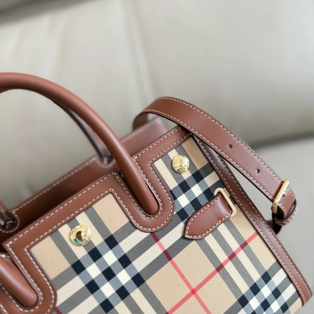 特级 B家版型精致的 Title - 泰勒尔手袋 选用典藏 Vintage 复古格纹裁片打造 装饰光皮滑革边饰与精美三的粒铆钉 可用顶提部柄手拎 或以拆可式背带缔造肩造背型 26 x 13.5 x 20cm型号2671