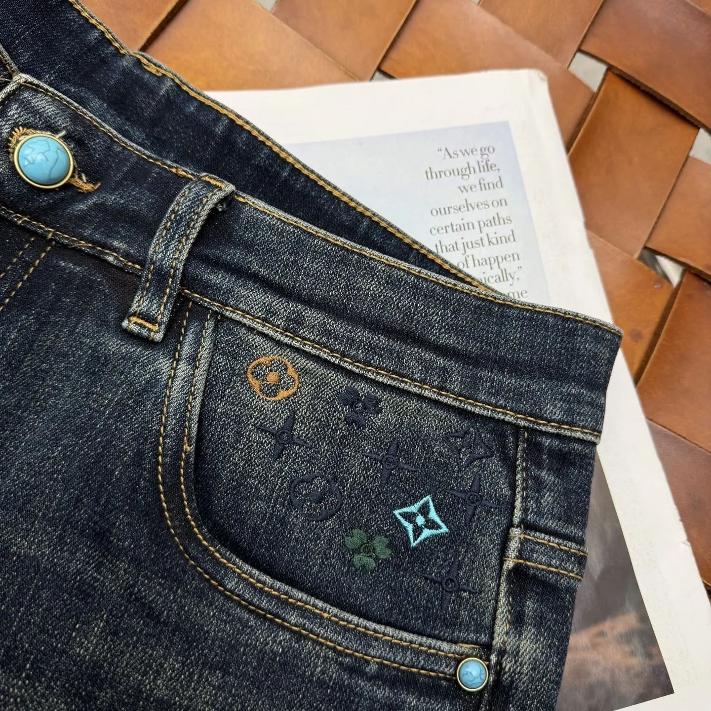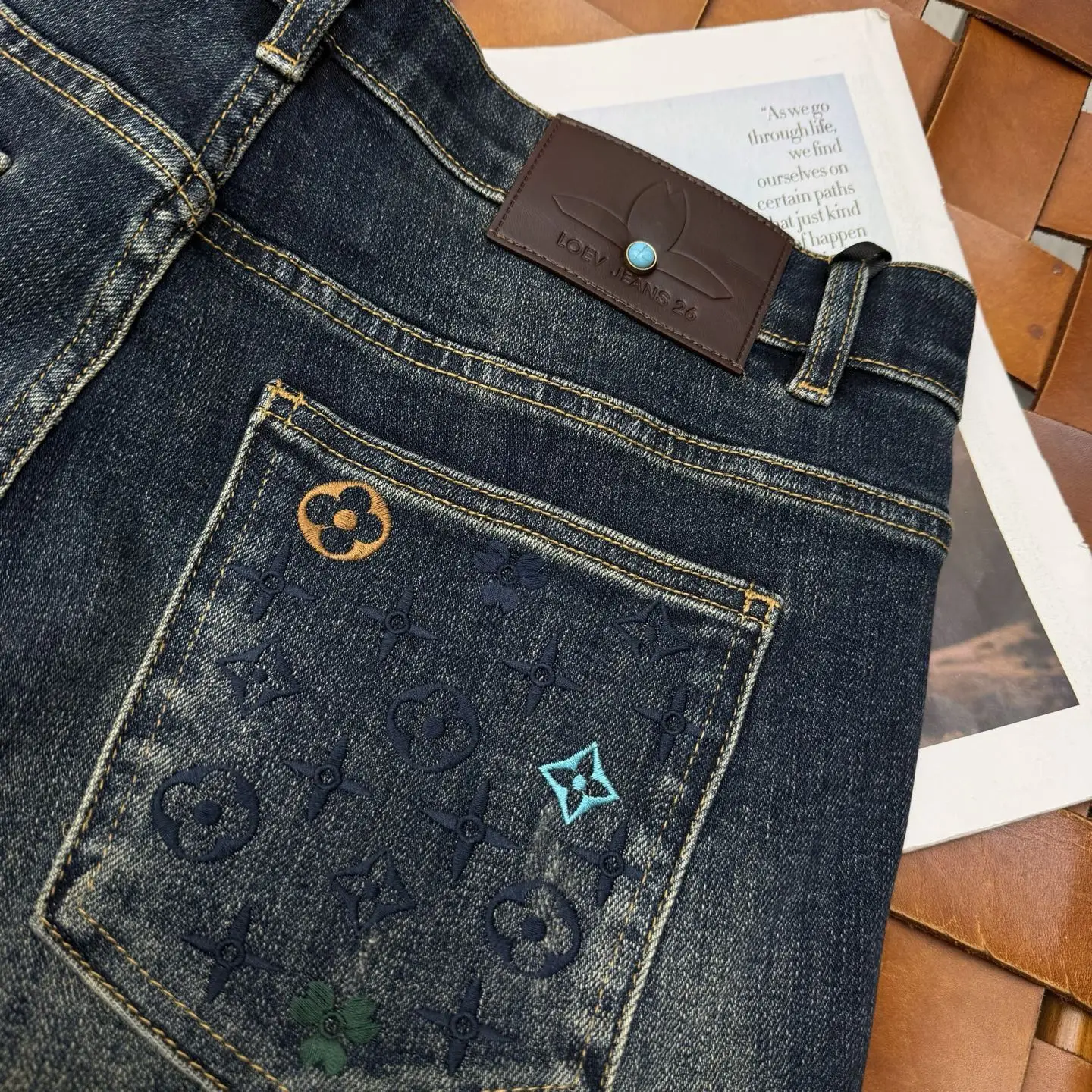 LV26S春夏男士直筒牛仔裤 棉质牛仔面料打造 质地柔软又不失筋骨 手感干爽有韧性 经典的标志性浮雕徽标 灵魂般的点缀 各项指标皆为上品 自然带来极佳的上身体感 码数: 28-38无37