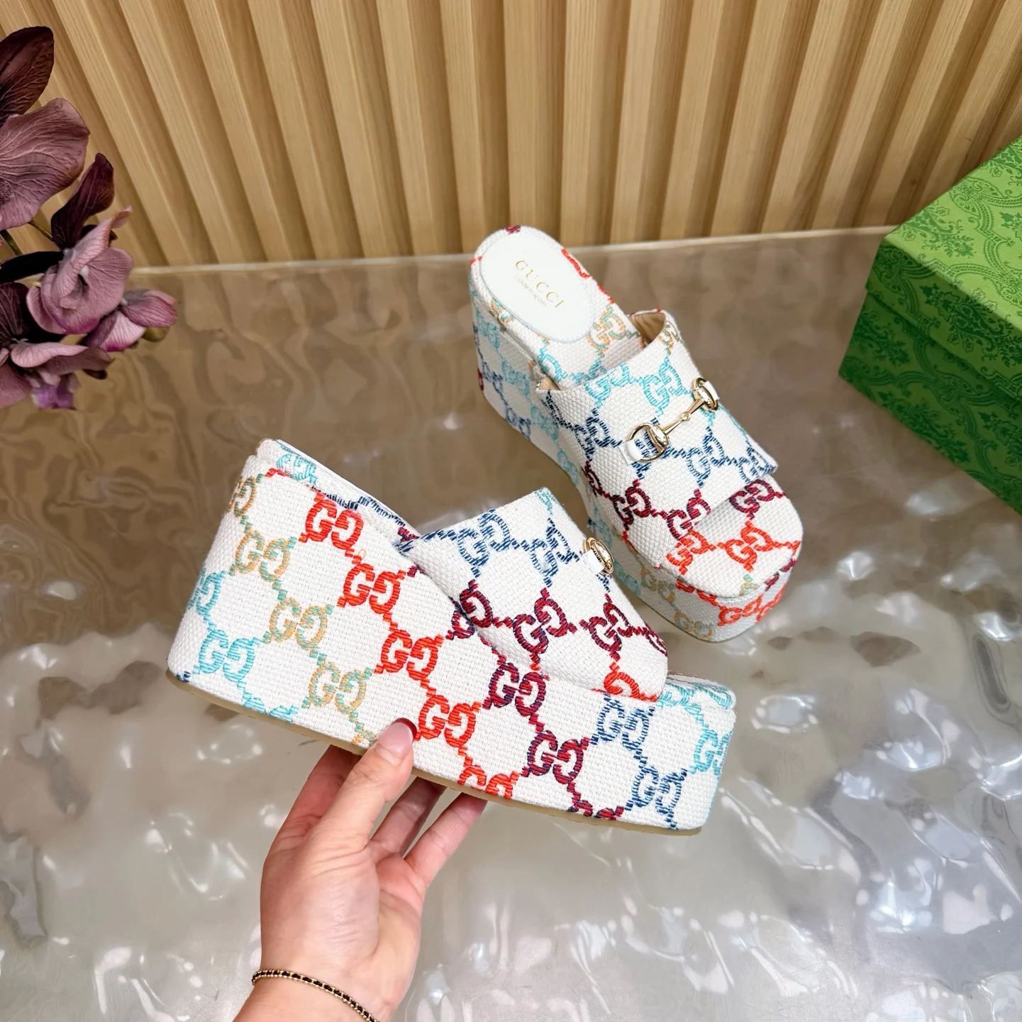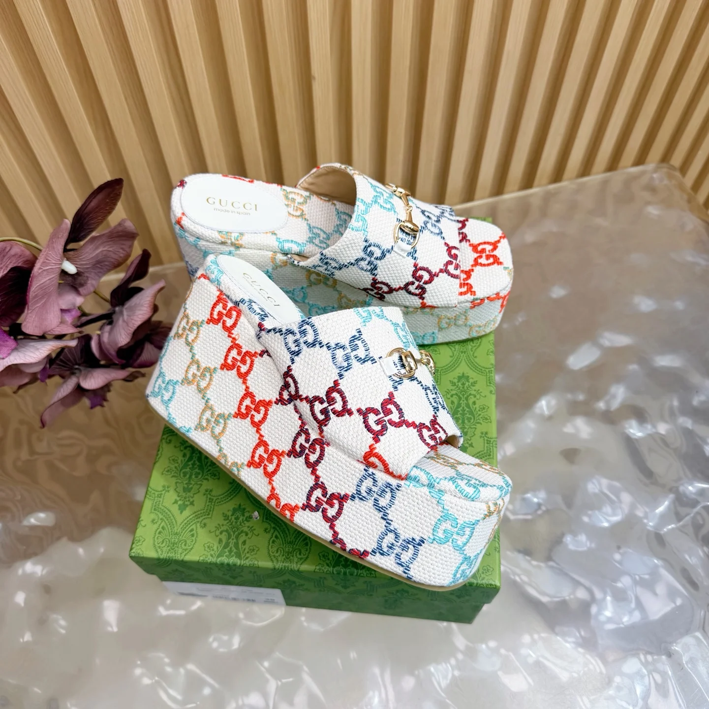 2026专柜同步春夏新款 Gucci 26S春夏新品双G布料麻绳大底 凉鞋厚底鞋面采用进口特殊布/磨砂皮