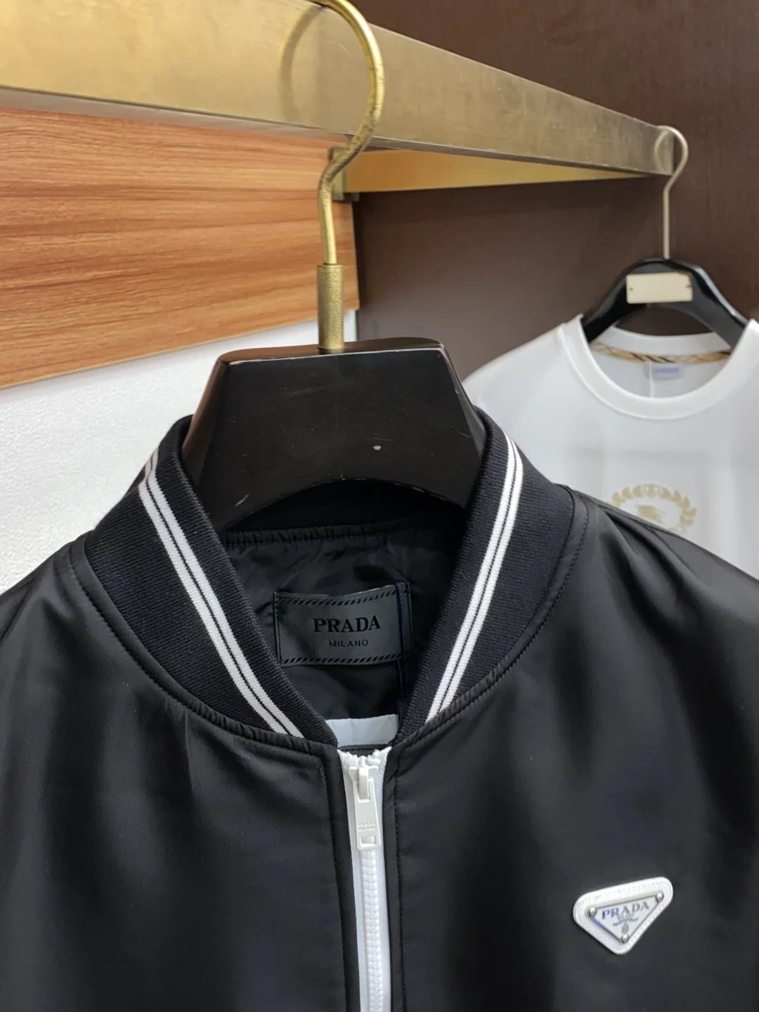 普拉达 26ss最新品 经典棒球领夹克外套 设计帅气有型 百搭必备单品 时尚潮牌 轻松营造酷帅氛围感 高级感满满 在低调又时髦撞色设计特别吸睛 宽松版型百搭人 任何身材都能驾驭 原版定制进口记忆丝面料质感轻盈透气 全套开模五金配件 做工品质看细节 尺码三标齐全