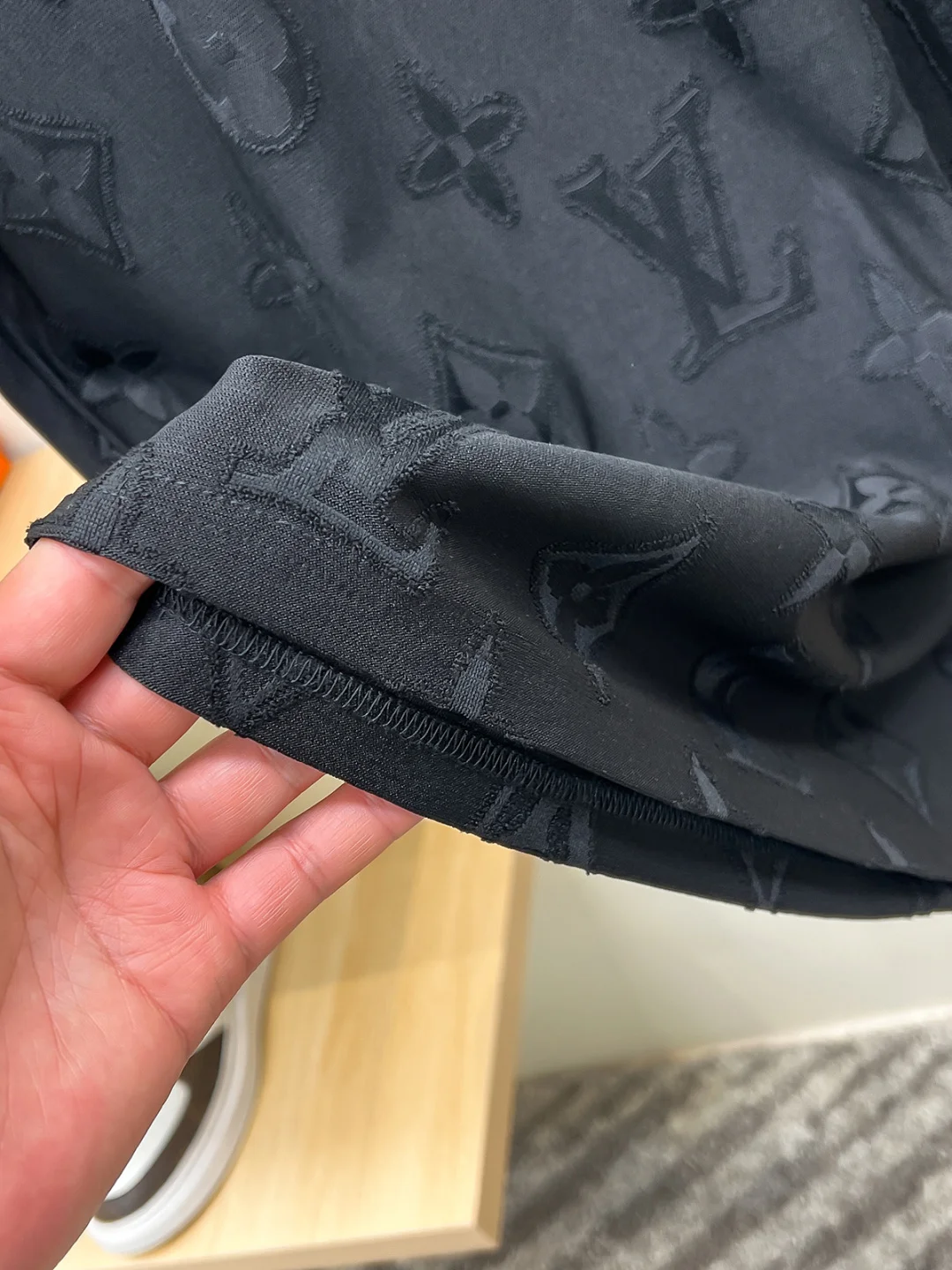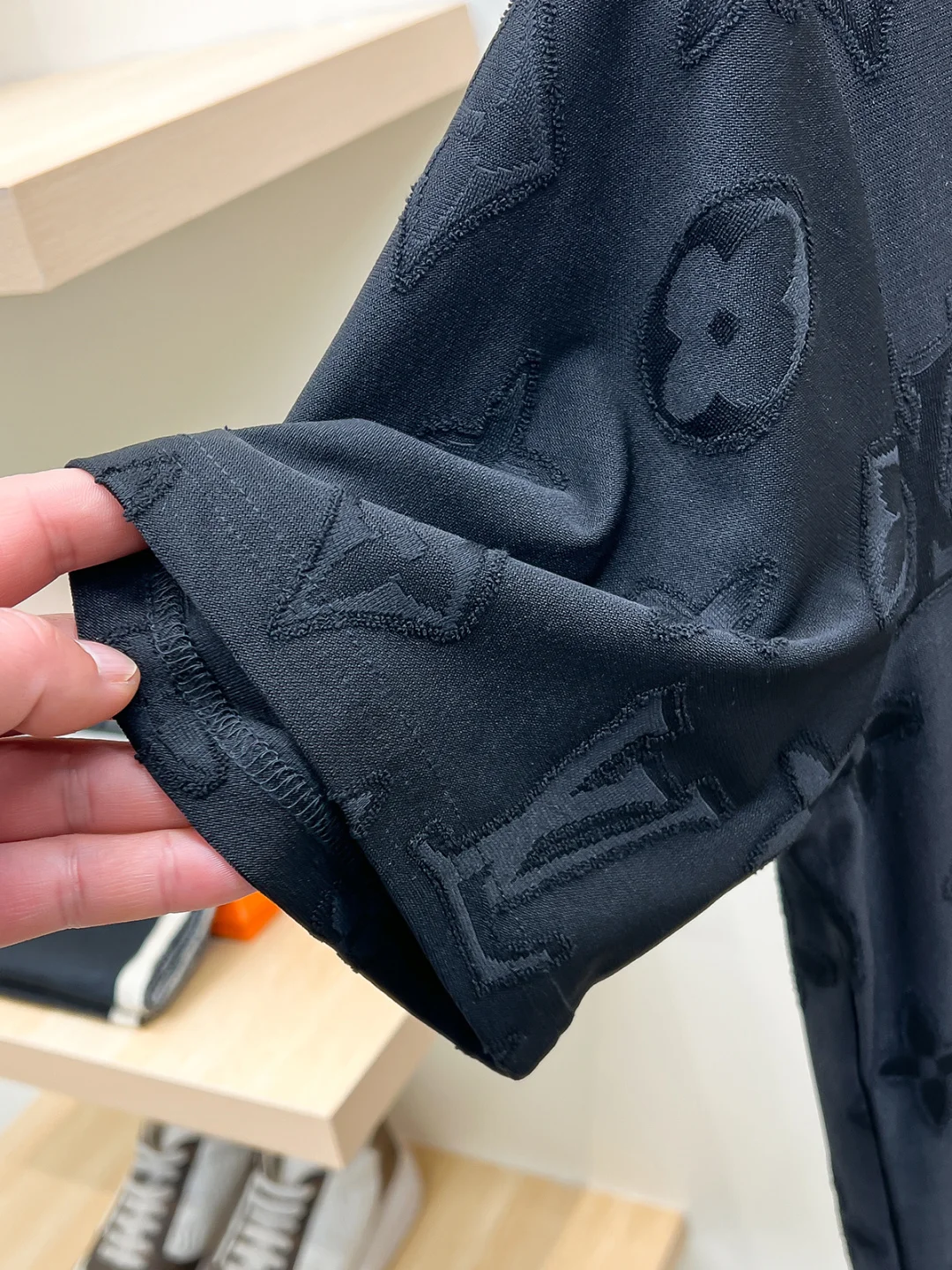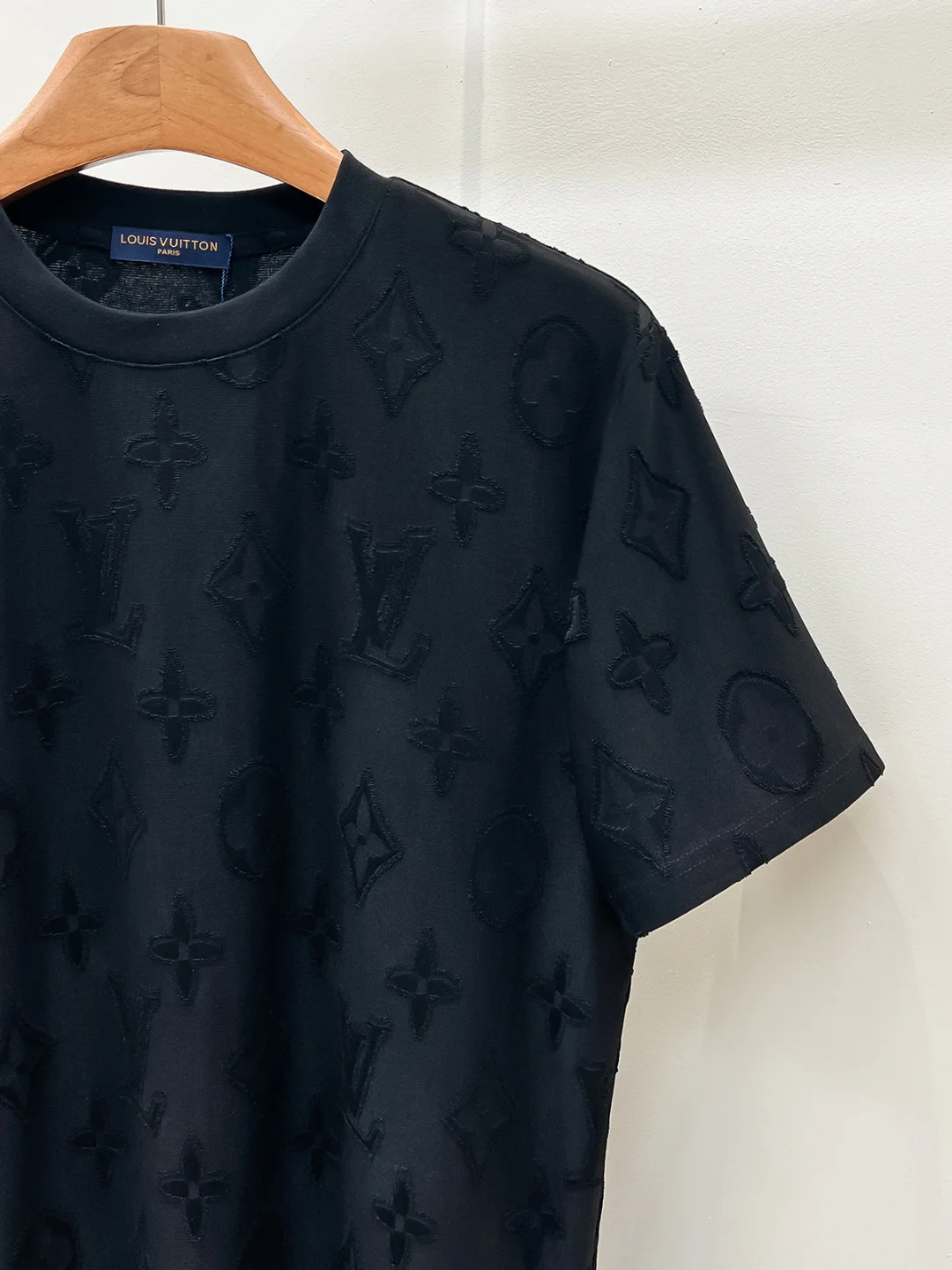 1v 26ss新品 满印老花短袖T恤这件白色 T 恤采用特殊的提花工艺 将经典的 LV 老花图案立体呈现在面料表面 面料经过特殊处理 呈现出细腻的凹凸纹理 每一个字母与图案都清晰立体 触感丰富 圆领设计贴合颈部线条 剪裁利落 整体廓形简约大方 提花工艺通过精确的织法控制 使图案与面料融为一体 既保持了视觉上的层次感 又确保了穿着的舒适度 衣身的车缝线均匀工整 确保结构牢固且不易变形 下摆与袖口的处理平滑整齐 边缘干净利落 体现出精湛的制衣工艺 整体设计低调而不失奢华 经典的老花素与现代剪裁相结合 既适合日常穿搭 又能在细节中彰显品质与品味 整体走线平直细腻 面料舒适柔软 颜色一致无色差 能与同款搭配营造时尚造型 驾驭各种场合 定制辅料 三标齐全 男女同款 Size S-2XL