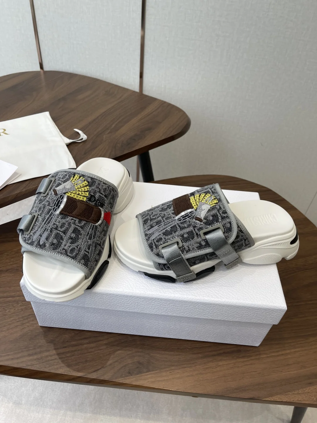 Dior26ss 春夏新款 D字刺绣厚底运动拖鞋
