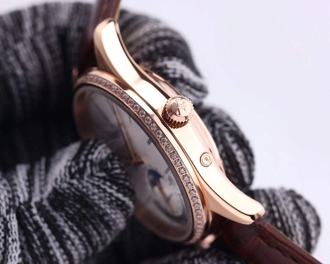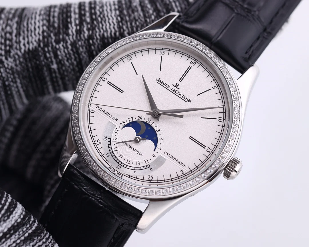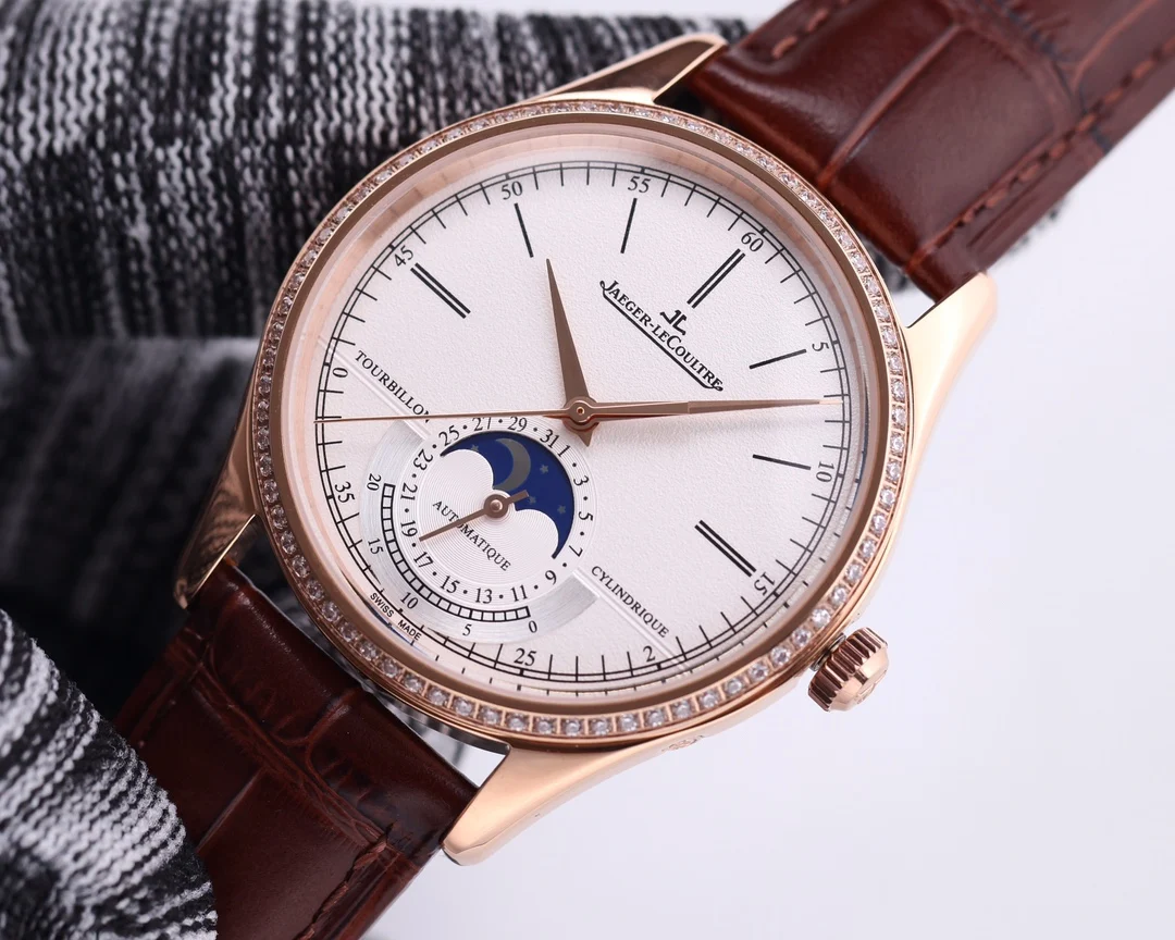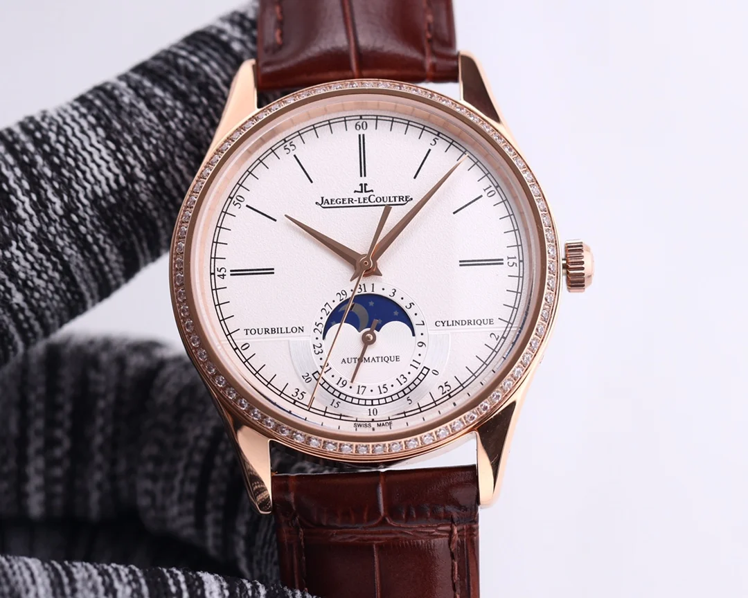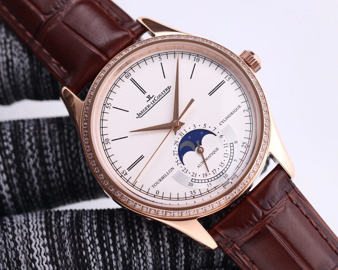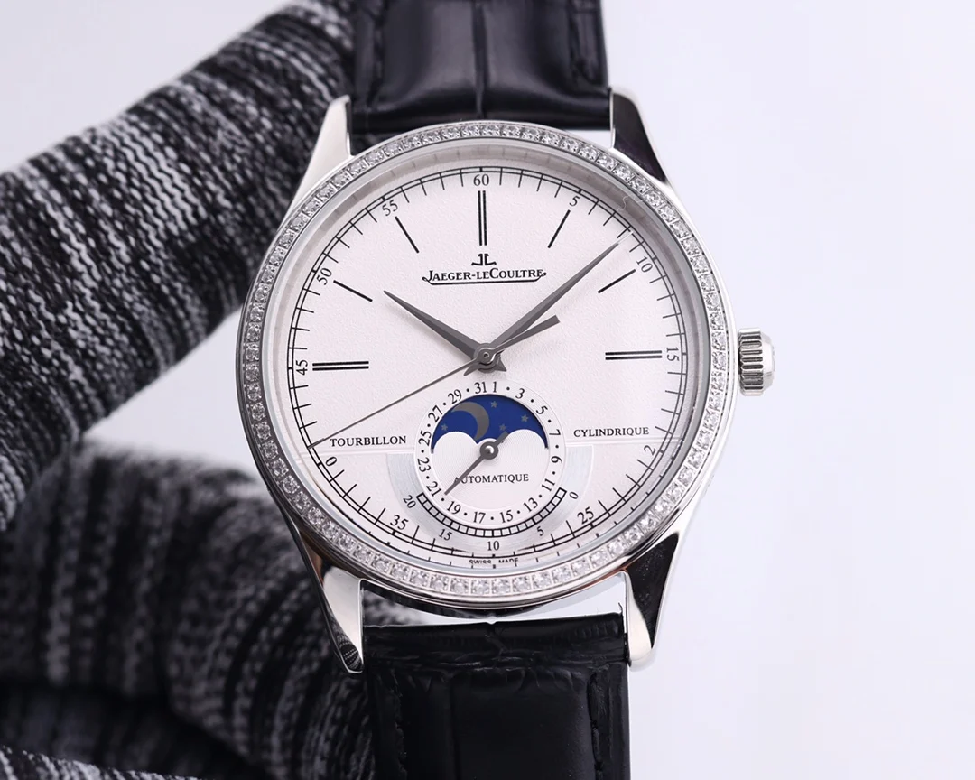 TW复刻版积家月相大师 表壳直径39mmX9.9mm六点钟的子盘为24小时同步时针功能 技术突破 采用海鸥2824改积家自产Cal.925/1机芯 功能百分百同步原装自产机芯 走时稳定 素质坚挺 细节突破 从侧面观察腕表盘面发现有微微的弧度 神韵和感觉能与原装相媲美 积家月相大师 您对的一切美好情怀