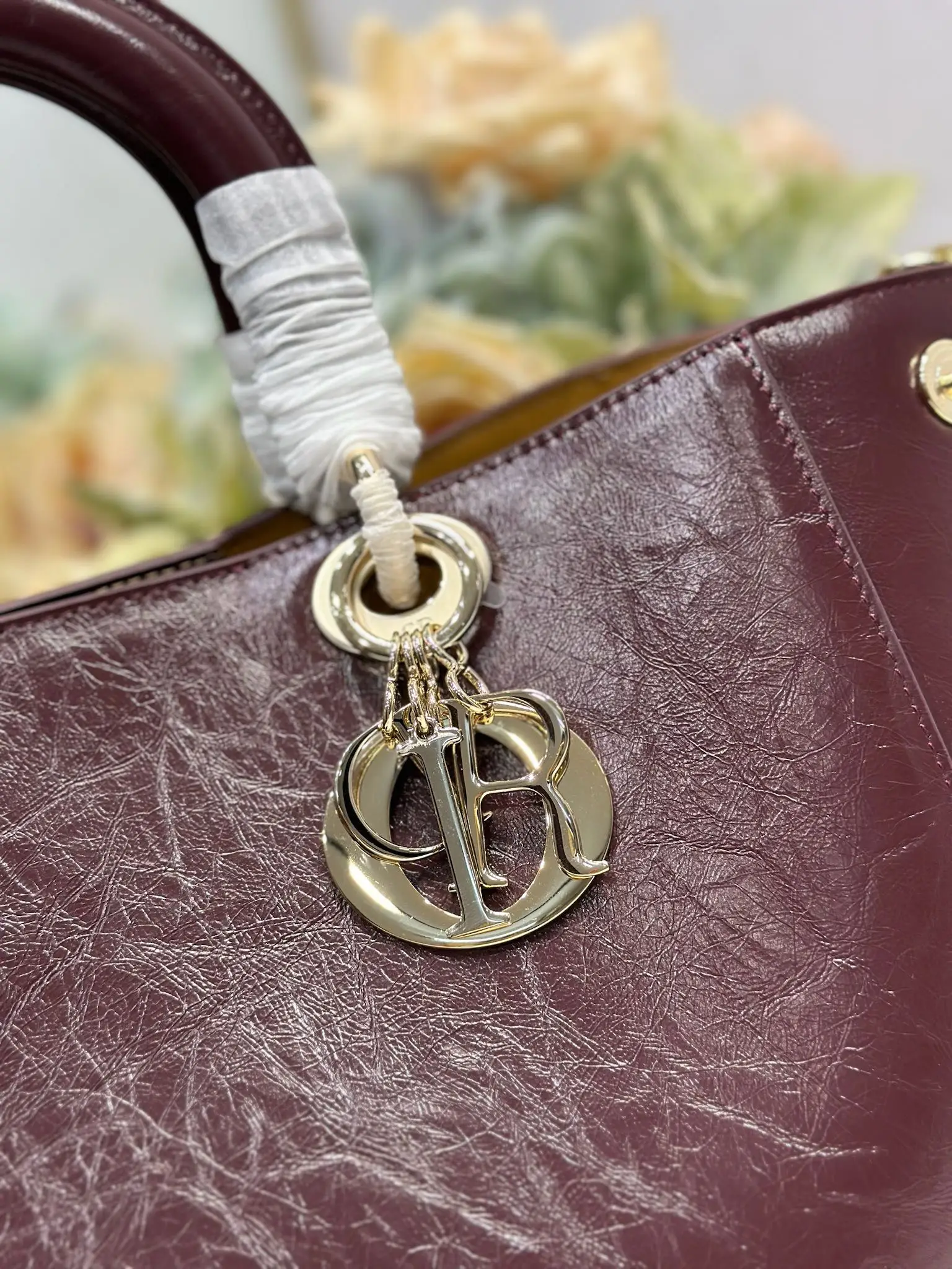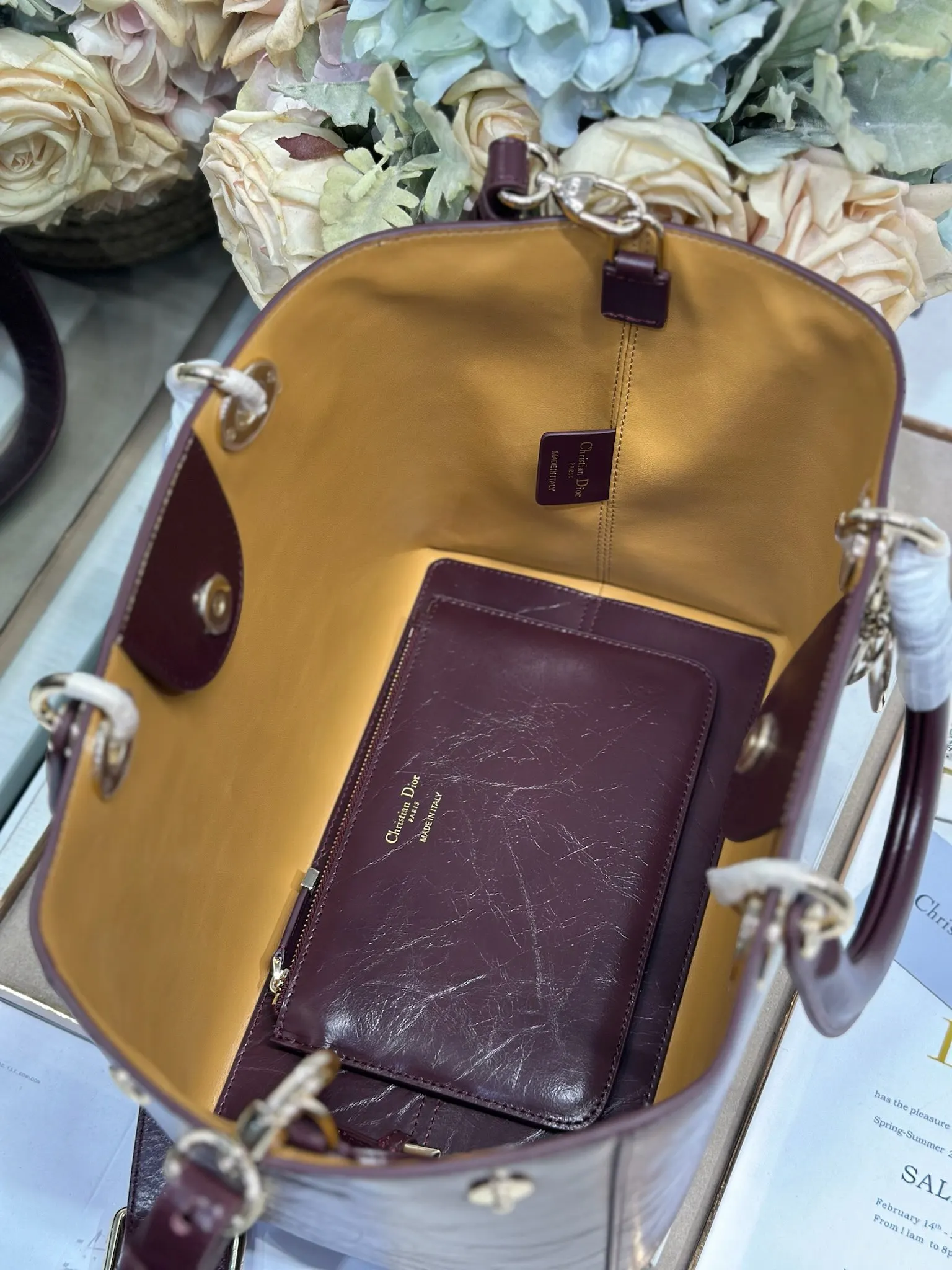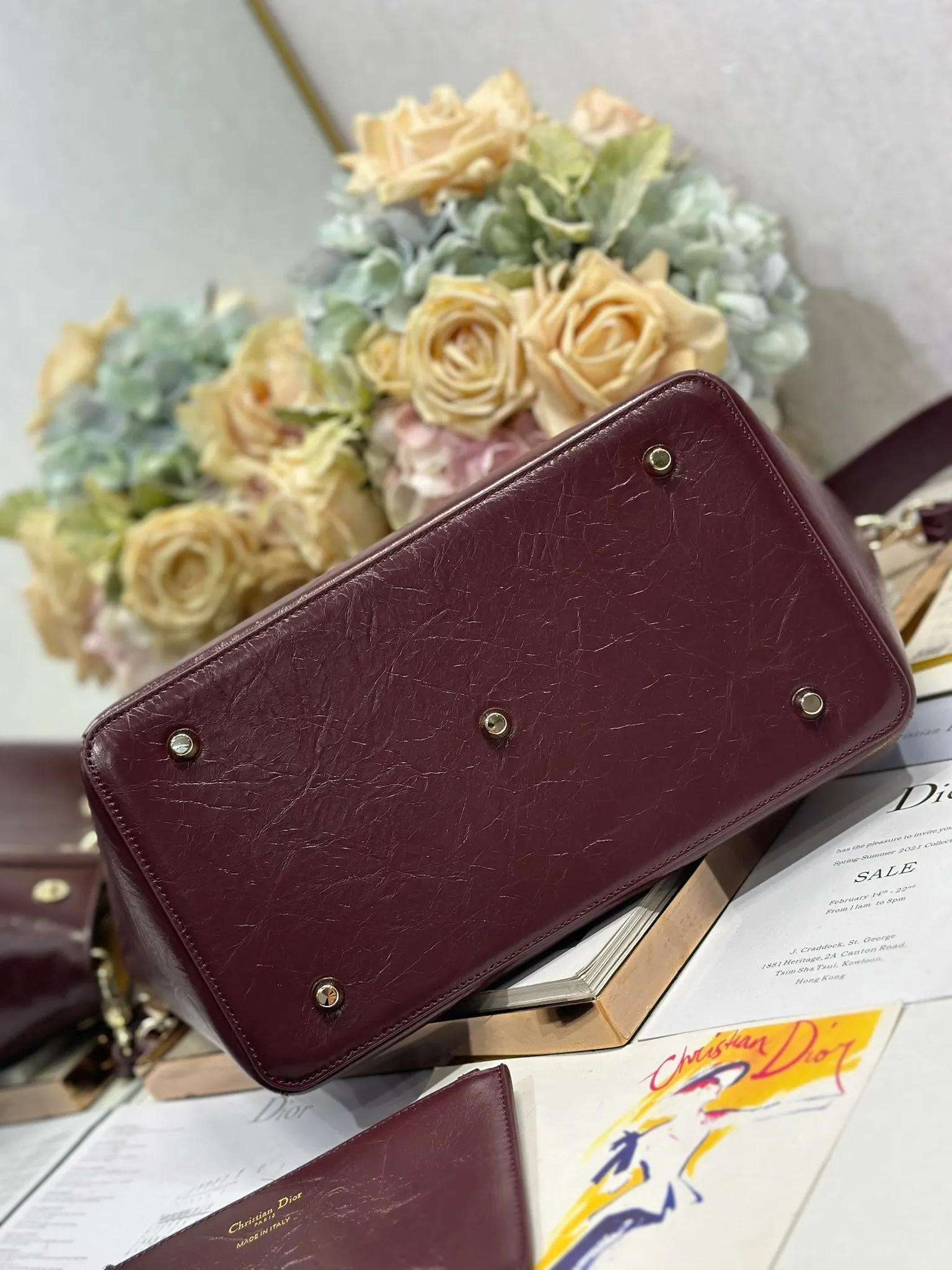 Dior Toujours 手袋 酒红褶皱中号 这款Dior Toujours 手袋于秋冬系列发布秀精彩亮相,休闲实用的设计别具一格.采用酒红褶皱牛皮革精心制作,宽敞的内部隔层搭配小袋, 可拆卸内部小袋 可调节皮革手柄 内含防尘袋 型号 2833尺寸 28×21×16cm