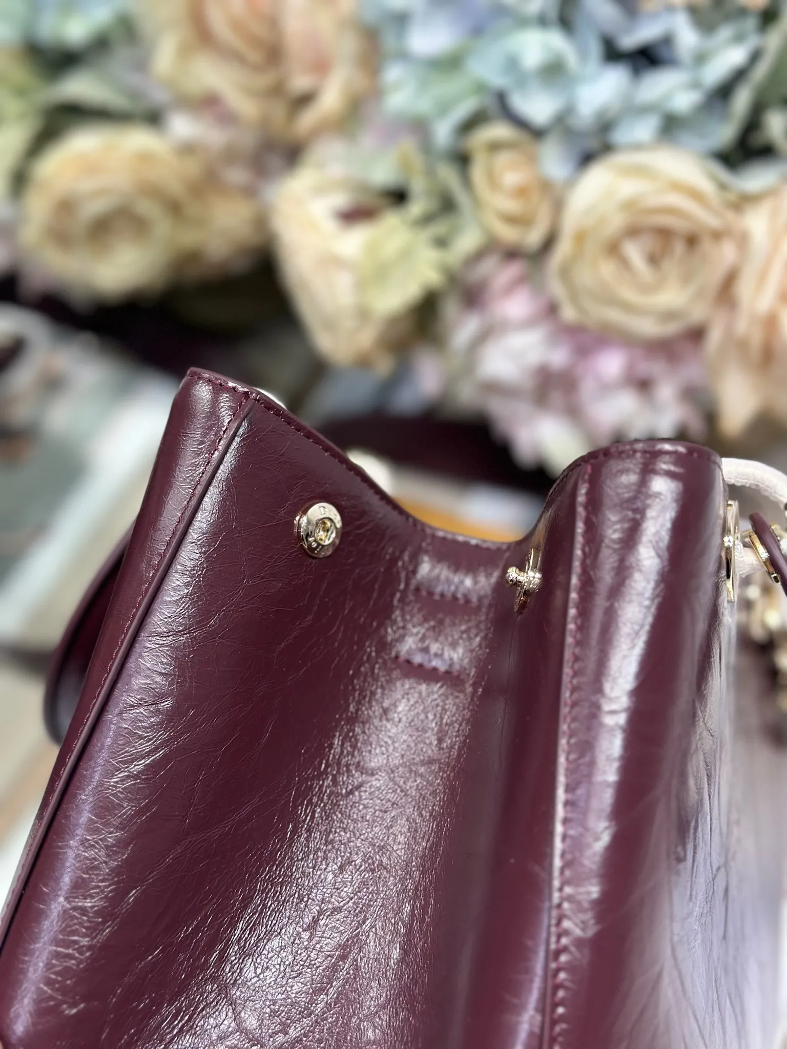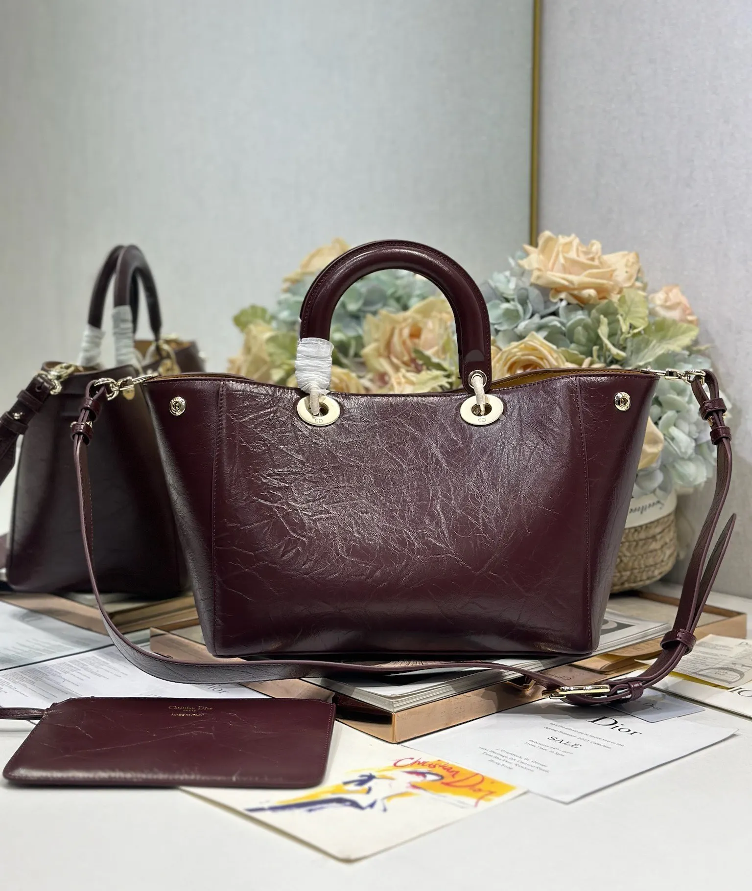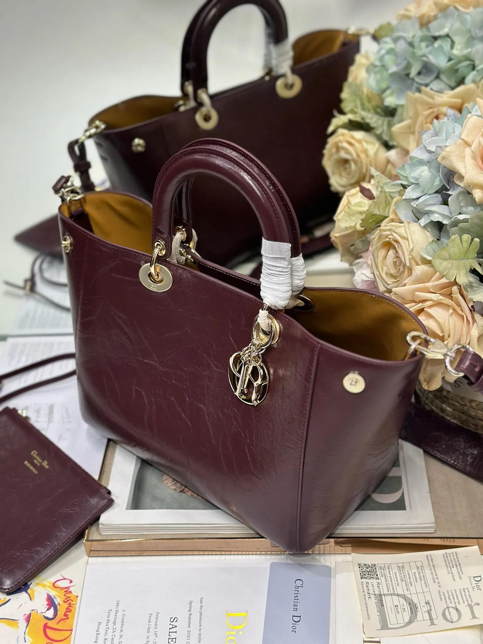 Dior Toujours 手袋 酒红褶皱中号 这款Dior Toujours 手袋于秋冬系列发布秀精彩亮相,休闲实用的设计别具一格.采用酒红褶皱牛皮革精心制作,宽敞的内部隔层搭配小袋, 可拆卸内部小袋 可调节皮革手柄 内含防尘袋 型号 2833尺寸 28×21×16cm