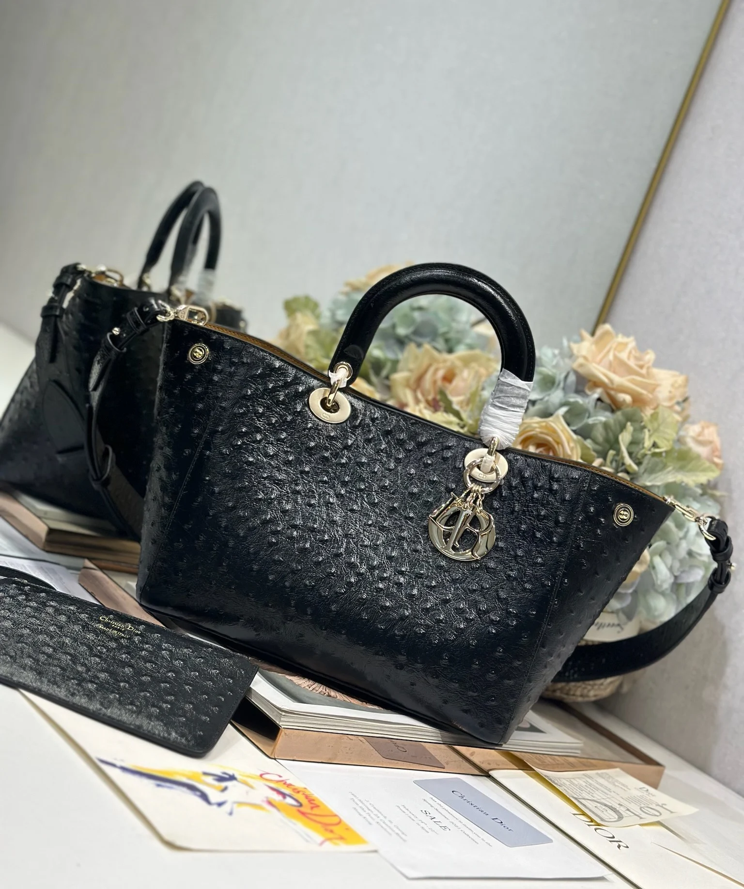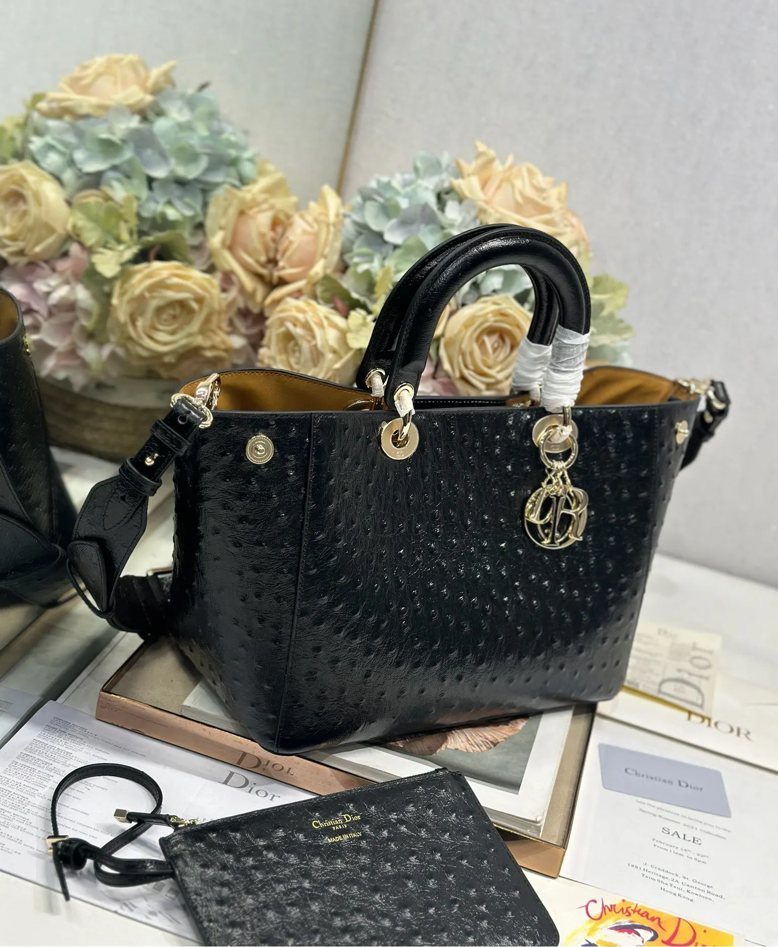 Dior Toujours 手袋 黑色鸵鸟纹中号 这款Dior Toujours 手袋于秋冬系列发布秀精彩亮相,休闲实用的设计别具一格.采用黑色鸵鸟纹牛皮革精心制作,宽敞的内部隔层搭配小袋, 可拆卸内部小袋 可调节皮革手柄 内含防尘袋 型号 2833尺寸 28×21×16cm