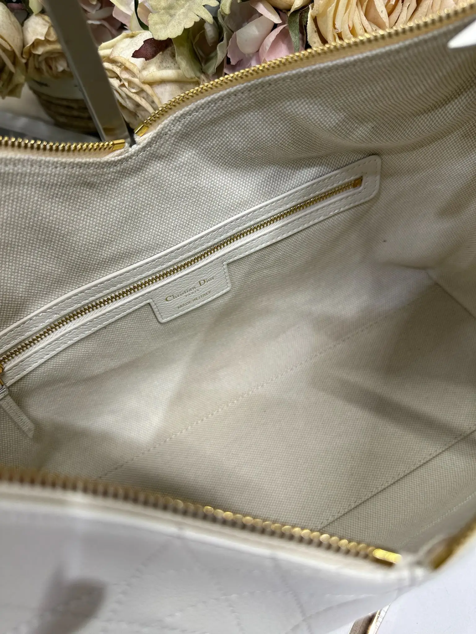 大号 Dior Voyage 手袋 山羊纹白色