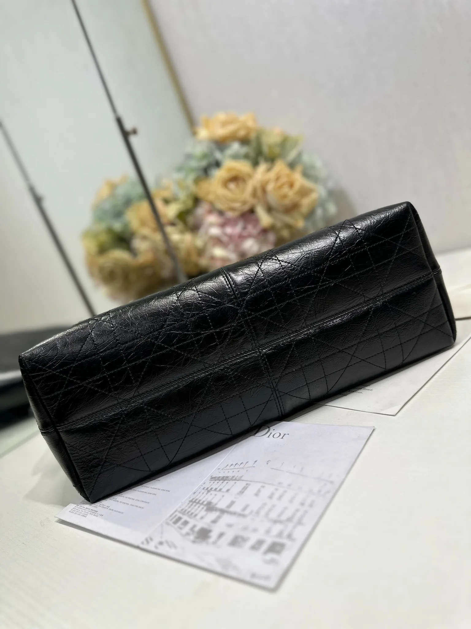 这款 Dior Voyage 手袋是二零二六早春成衣系列新品 采用黑色褶皱牛皮革精心制作 饰以扁平超大藤格纹缉面线 焕新演绎 Dior 的经典图案 大号款式 顶部手柄搭配可调节搭扣 可肩背 是日常造型的理想良伴 型号 2844