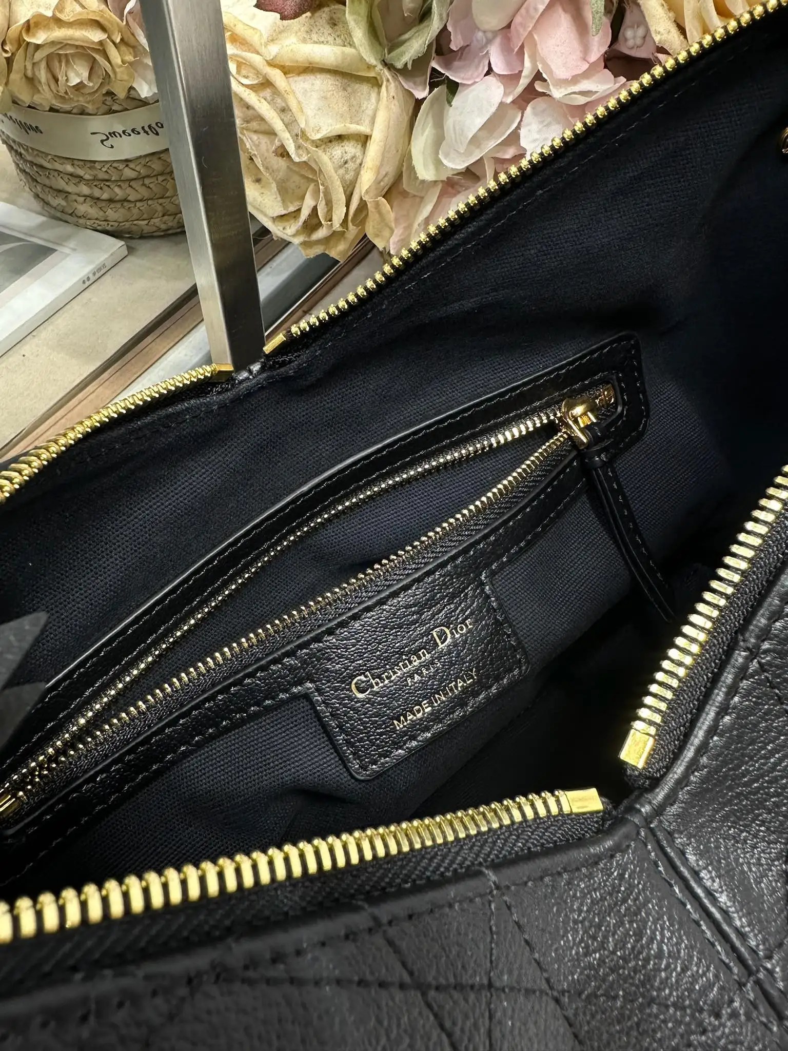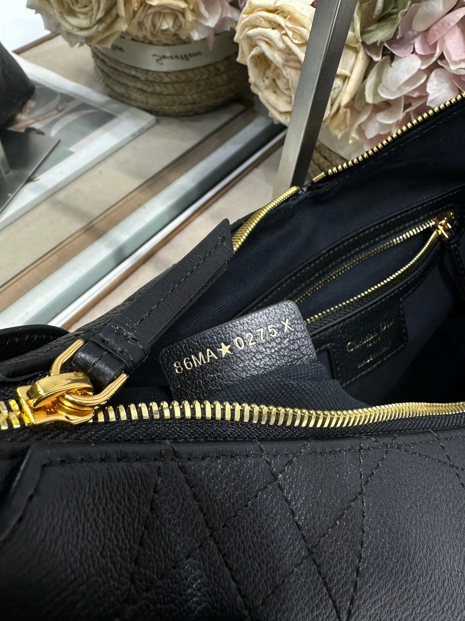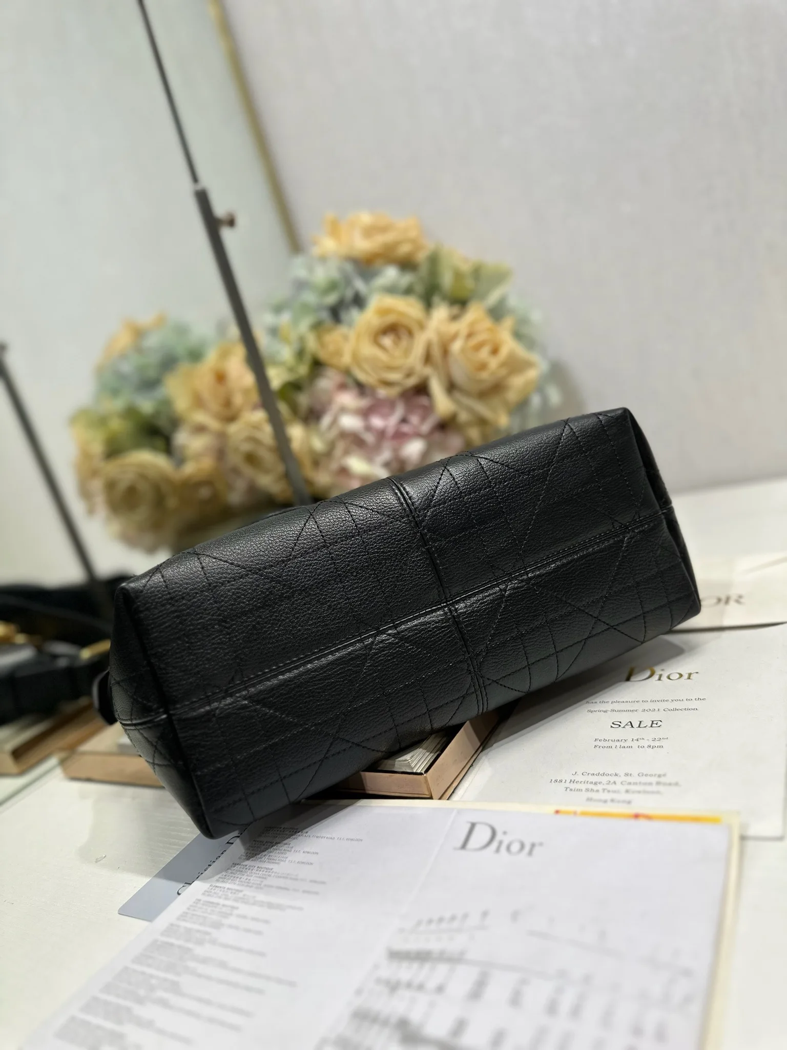 中号 Dior Voyage 手袋 山羊纹黑色 中号款式 顶部手柄搭配可调节搭扣 可肩背 是日常造型的理想良伴 型号 2845