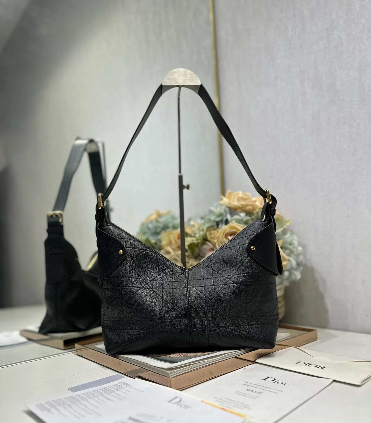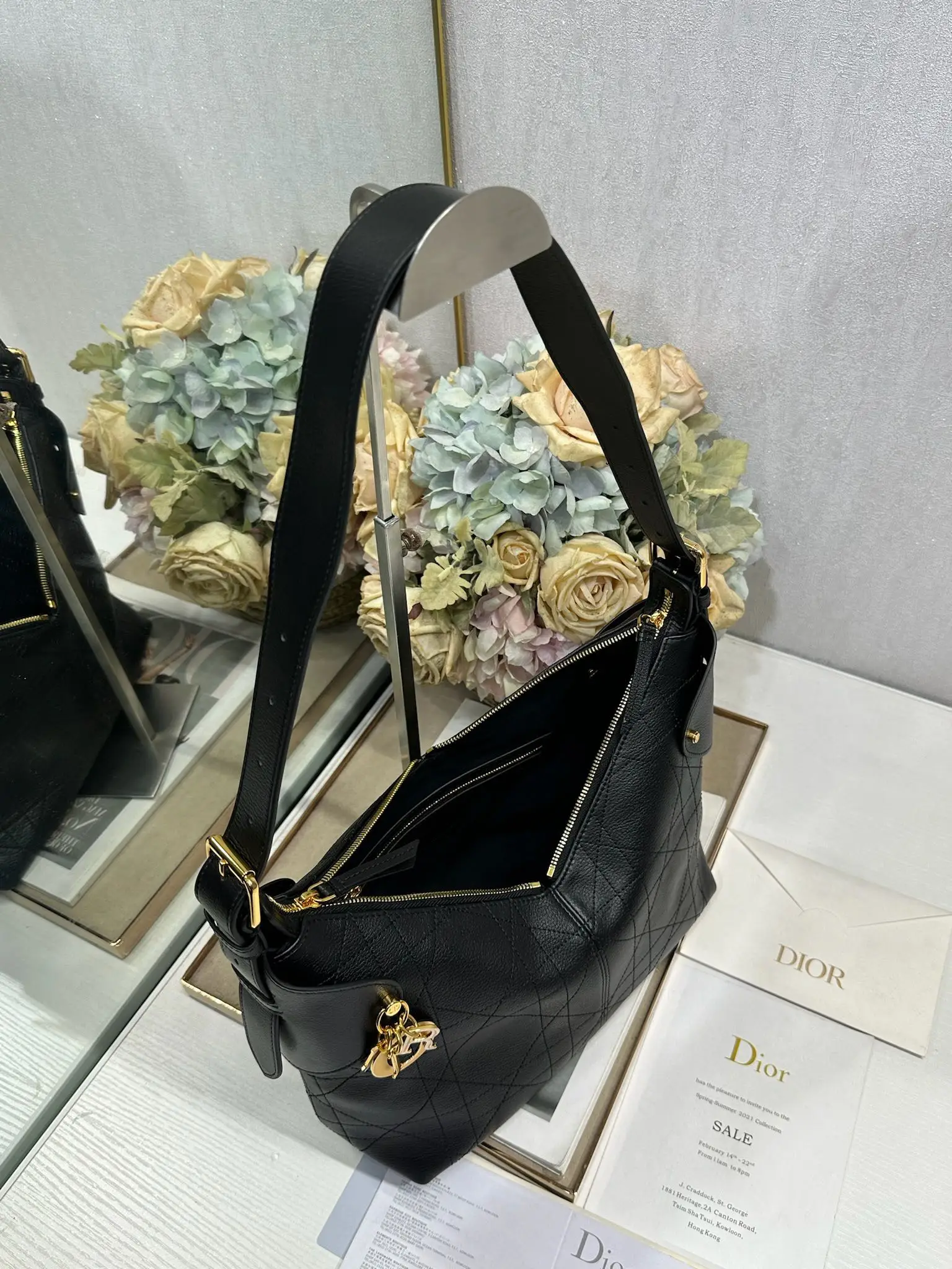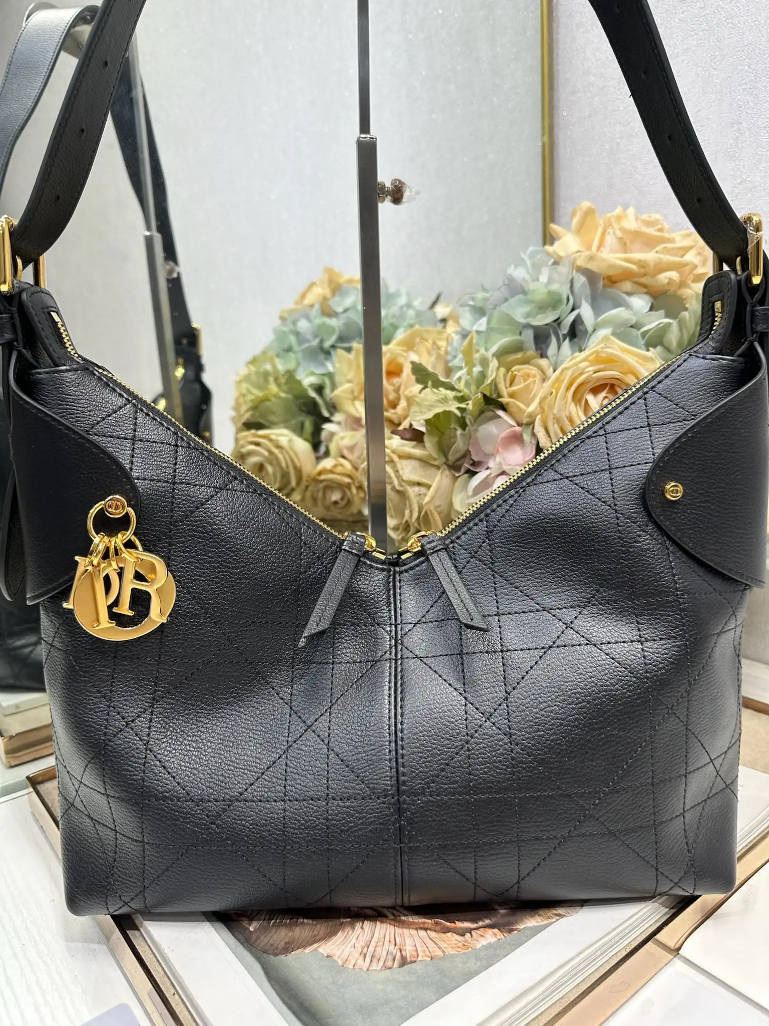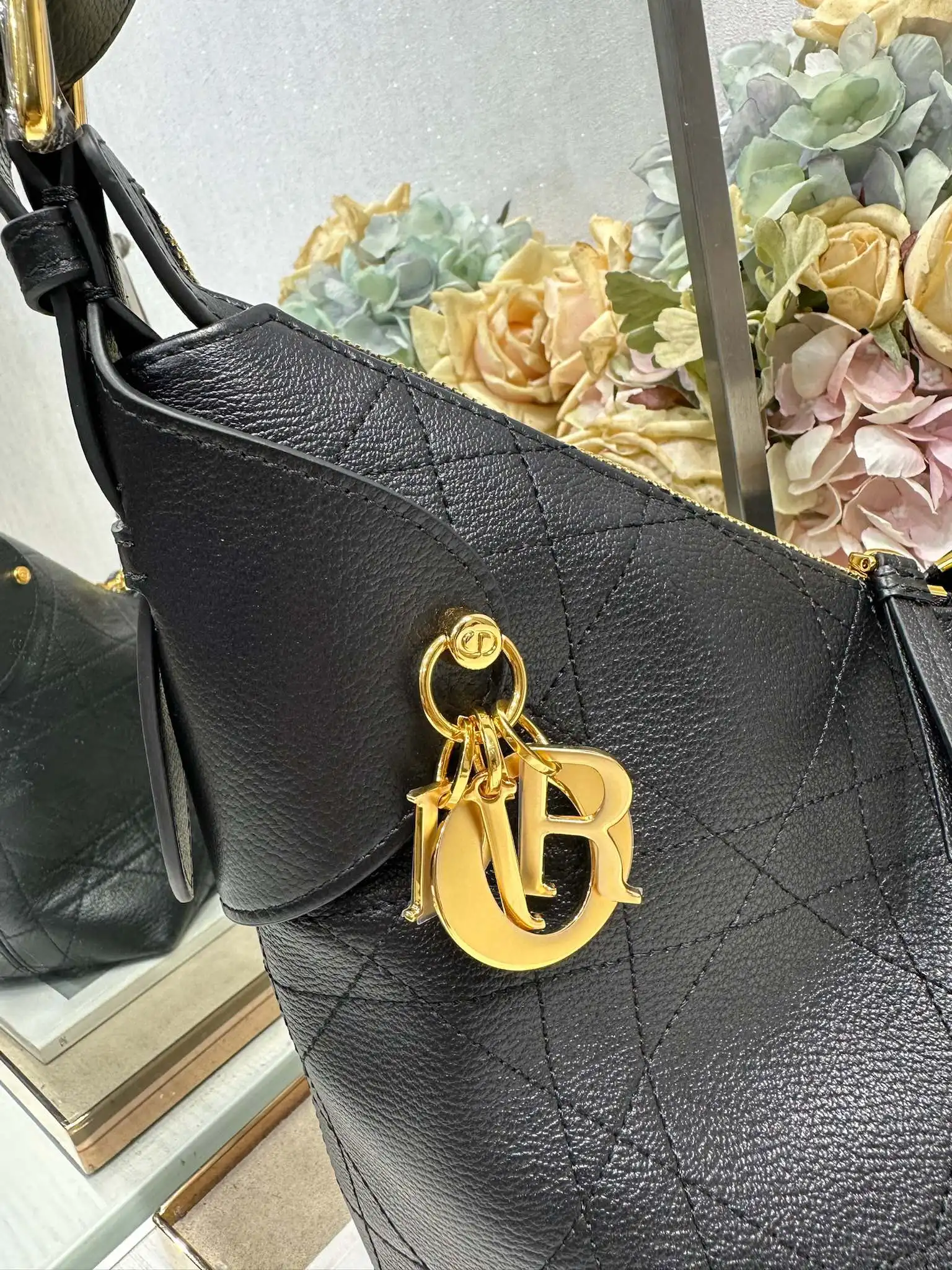 中号 Dior Voyage 手袋 山羊纹黑色 中号款式 顶部手柄搭配可调节搭扣 可肩背 是日常造型的理想良伴 型号 2845