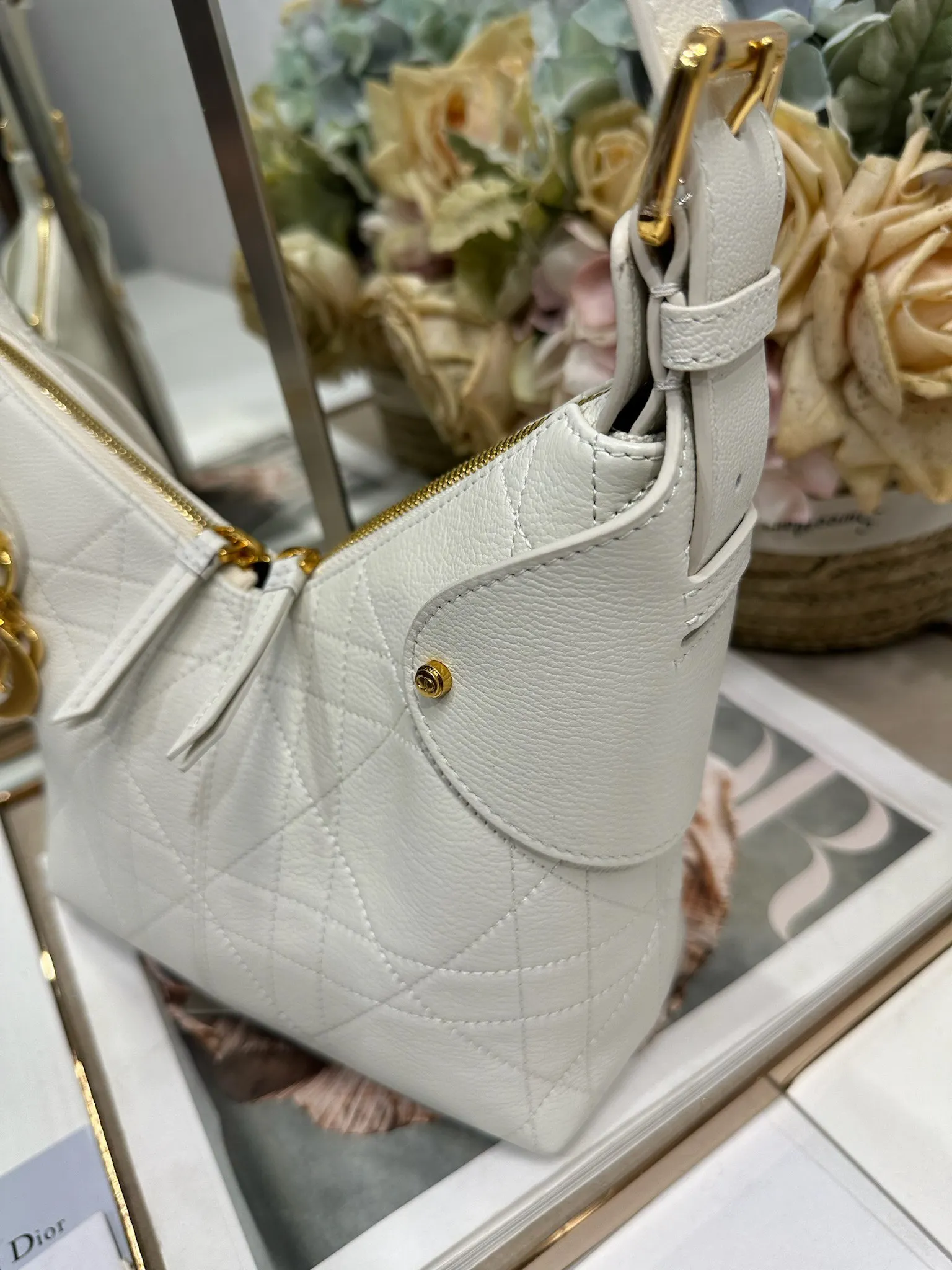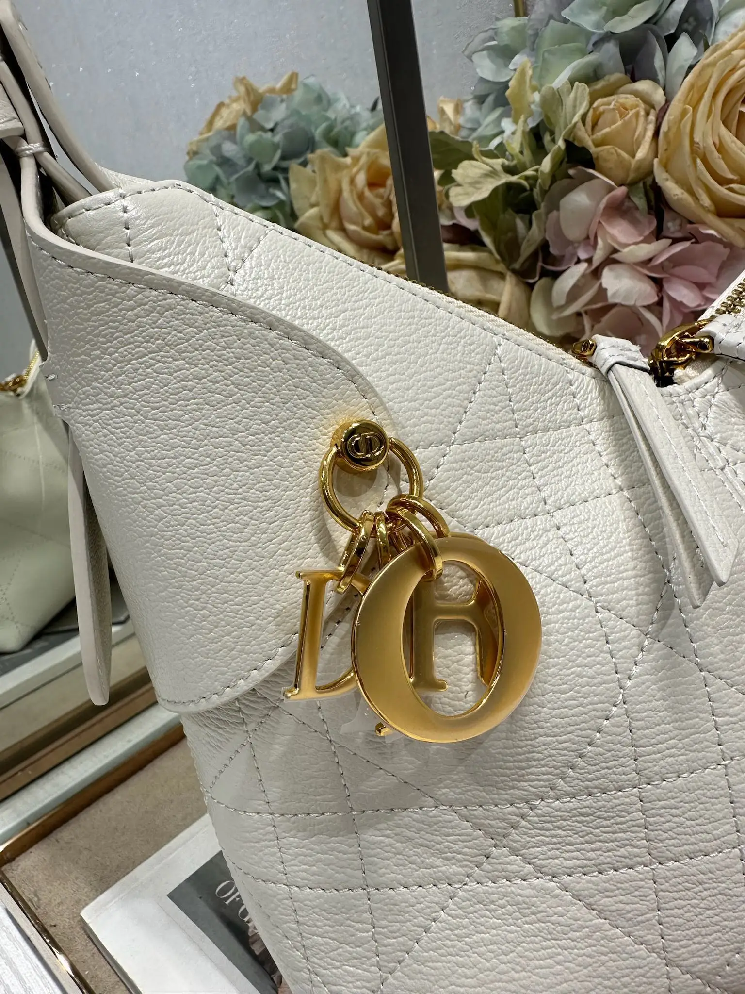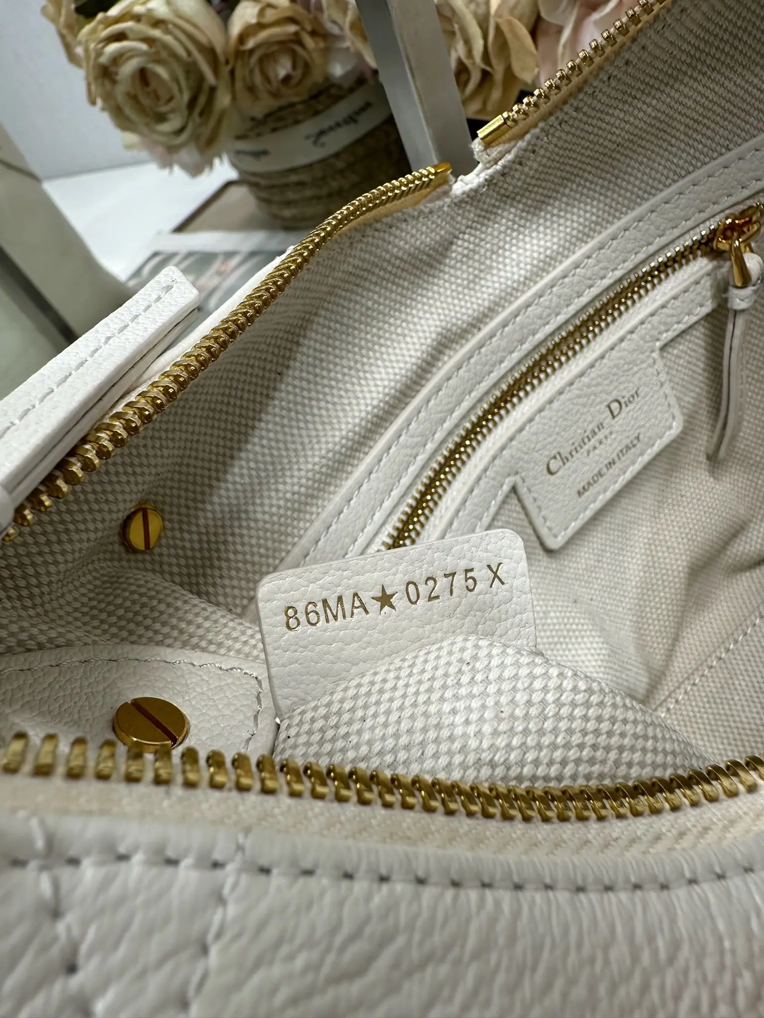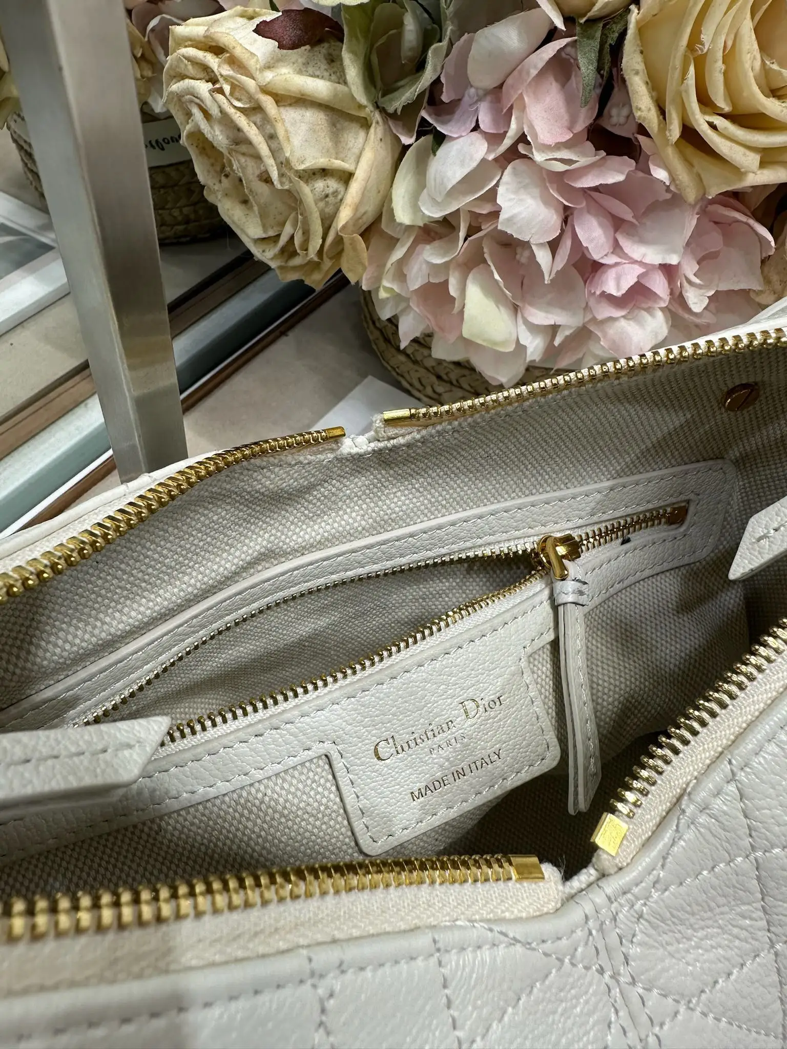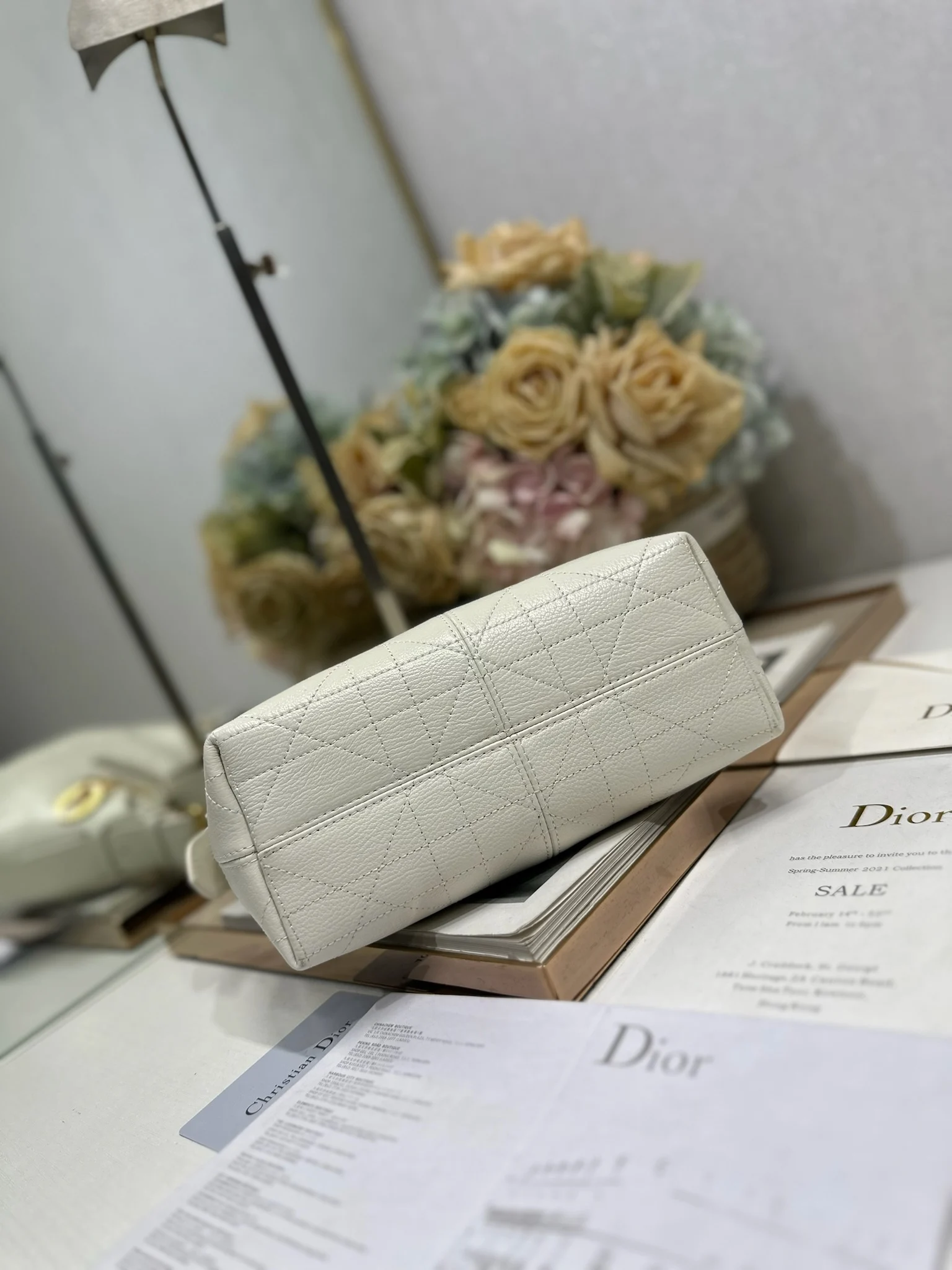 小号 Dior Voyage 手袋 山羊纹白色 采用白色粒面牛皮革精心制作 饰以扁平超大藤格纹缉面线 焕新演绎 Dior 的经典图案 小号款式 顶部手柄搭配可调节搭扣 可肩背 是日常造型的理想良伴 型号 2846