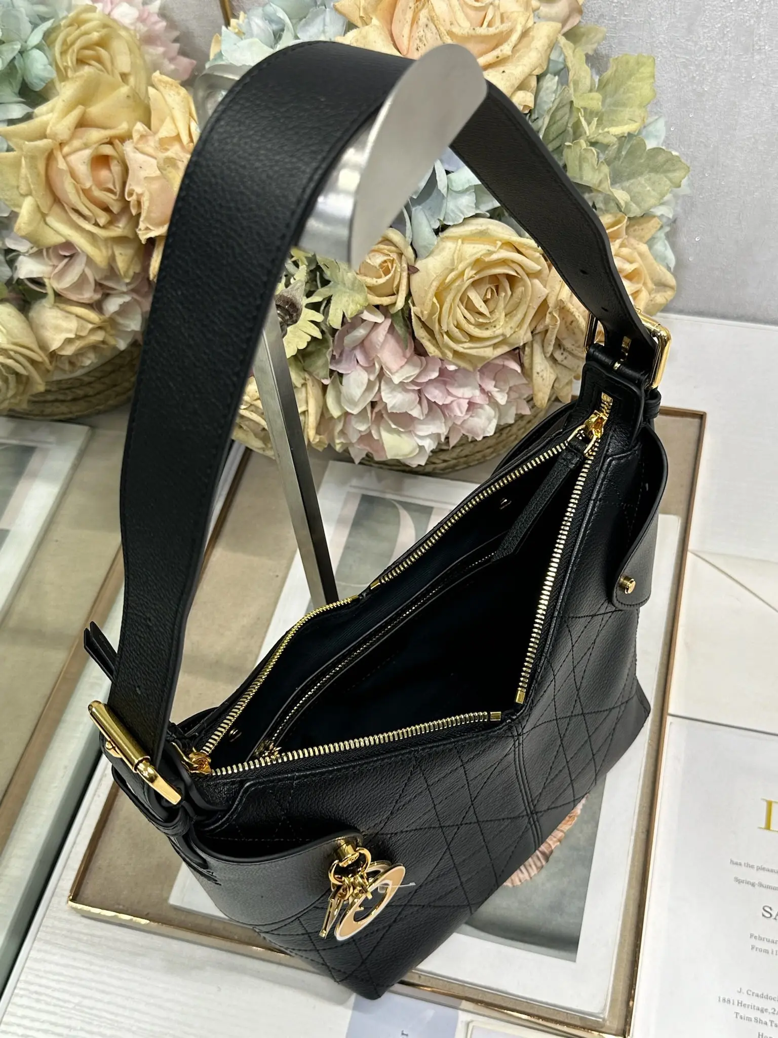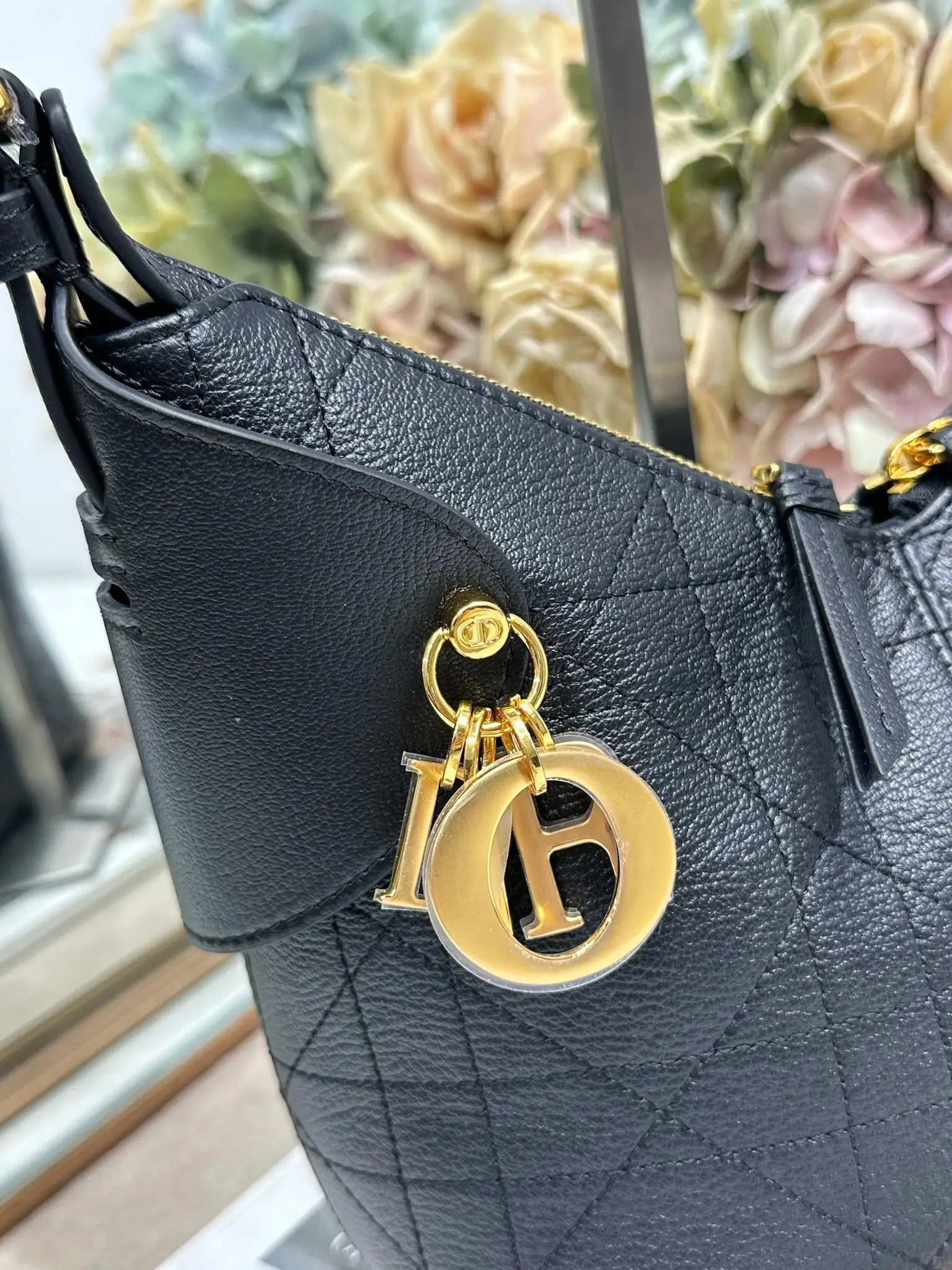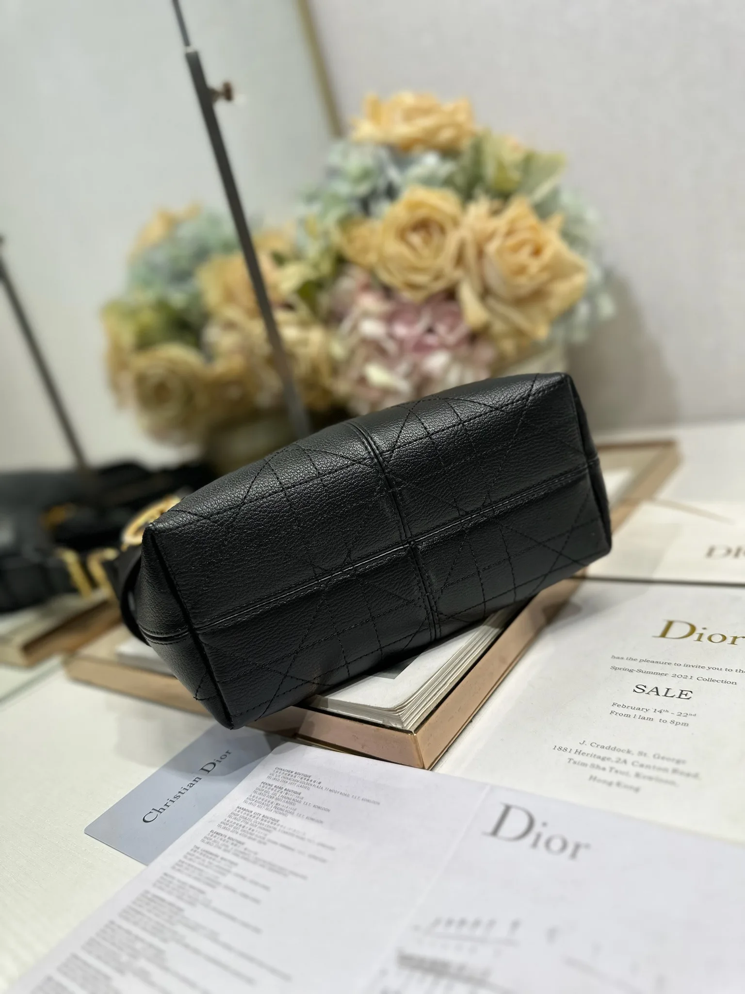 小号 Dior Voyage 手袋 山羊纹黑色 采用黑色粒面牛皮革精心制作 饰以扁平超大藤格纹缉面线 焕新演绎 Dior 的经典图案 小号款式 顶部手柄搭配可调节搭扣 可肩背 是日常造型的理想良伴 型号 2846