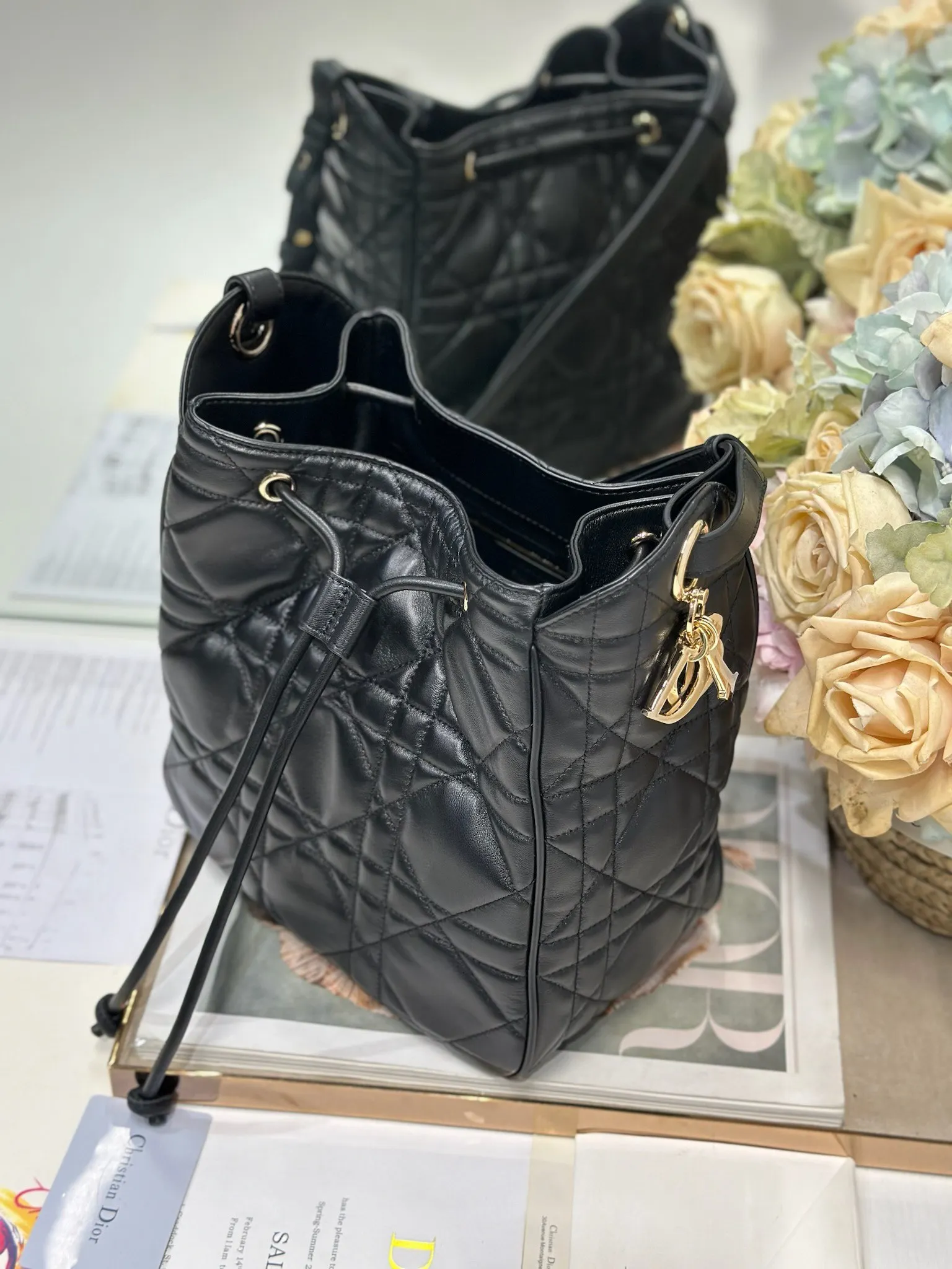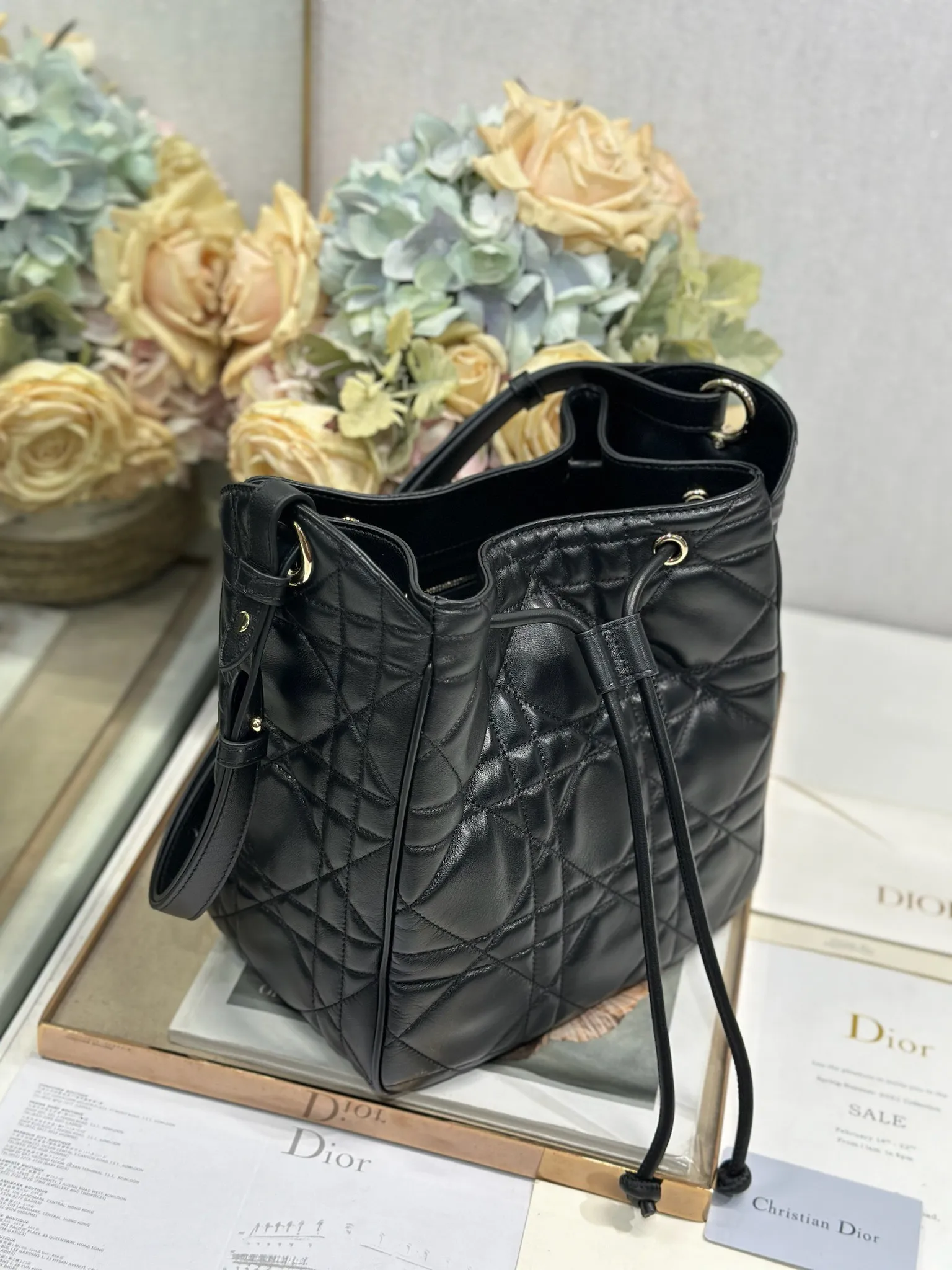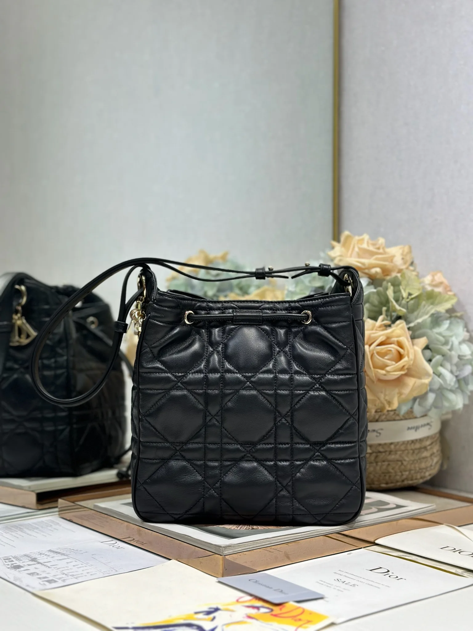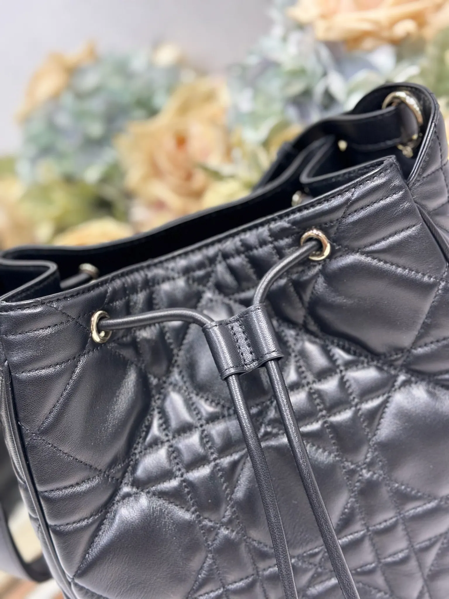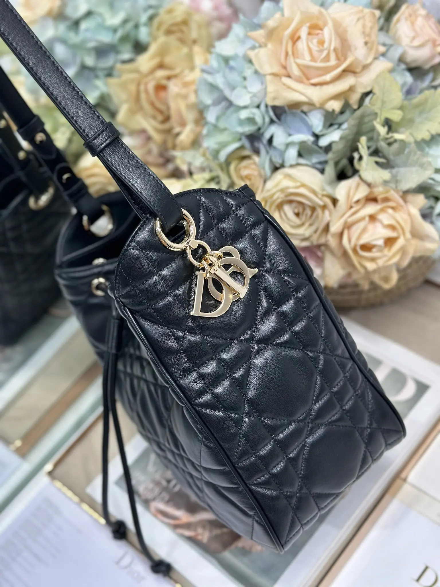 中号 D-Motion 手袋 黑色 带可扫描高版本163变码芯片 这款 D-Motion 手袋冬季成衣系列新品 时尚实用的桶式设计 别具一格 采用黑色羊皮革等材质精心制作 饰以藤格纹缉面线 柔软的版型搭配抽绳开合 带有宽敞的内部隔层 拉链口袋及两个侧面插袋 可收纳各种日常用品 中号款式 饰以浅金色饰面金属 D.I.O.R. 吊饰更显精致 搭配滑动设计的可调节肩带 可肩背或斜挎 型号 2852