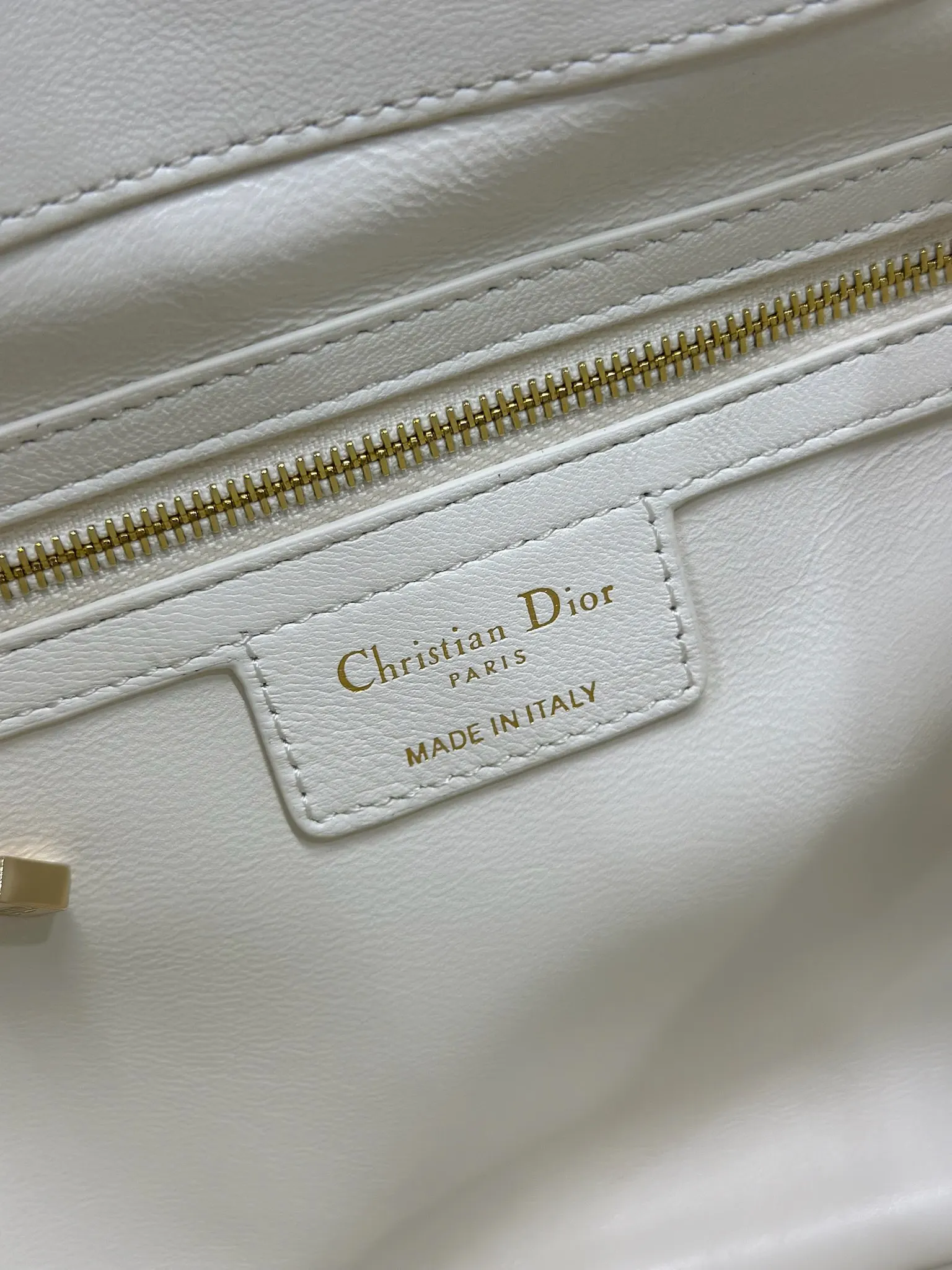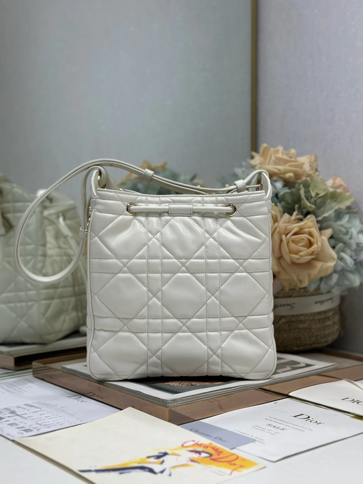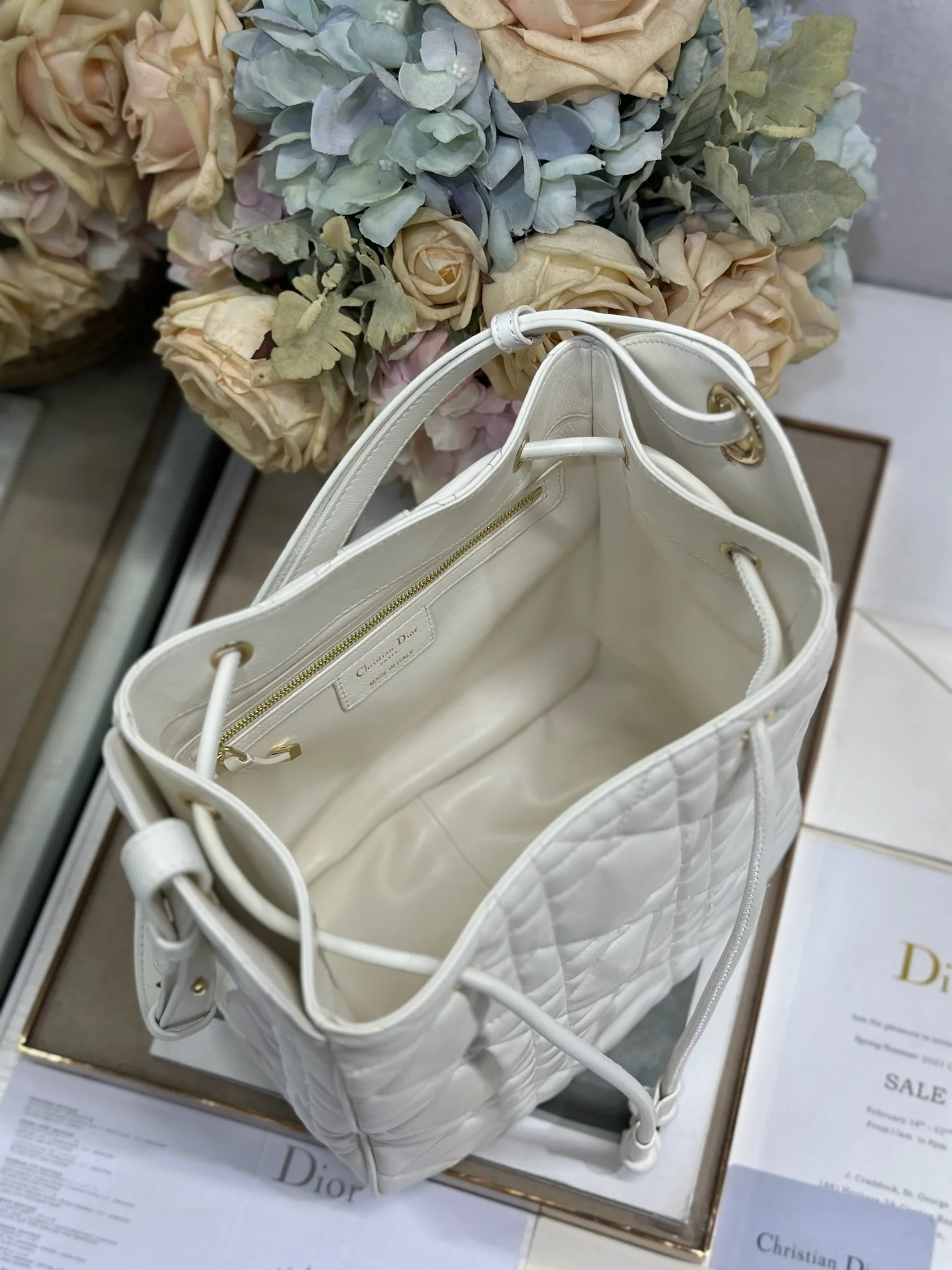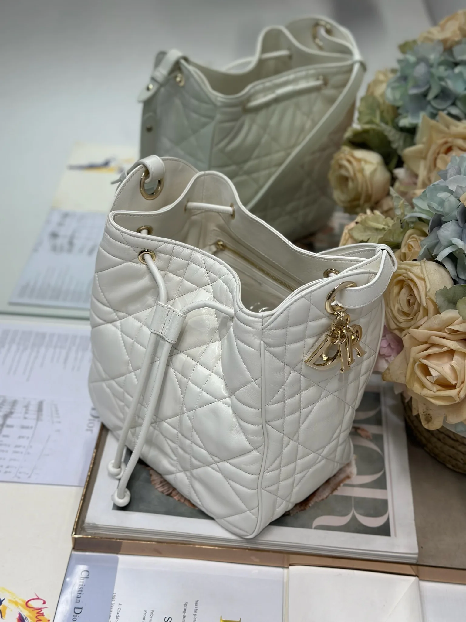 中号 D-Motion 手袋 白色 带可扫描高版本163变码芯片 这款 D-Motion 手袋冬季成衣系列新品 时尚实用的桶式设计 别具一格 采用白色羊皮革等材质精心制作 饰以藤格纹缉面线 柔软的版型搭配抽绳开合 带有宽敞的内部隔层 拉链口袋及两个侧面插袋 可收纳各种日常用品 中号款式 饰以浅金色饰面金属 D.I.O.R. 吊饰更显精致 搭配滑动设计的可调节肩带 可肩背或斜挎 型号 2852