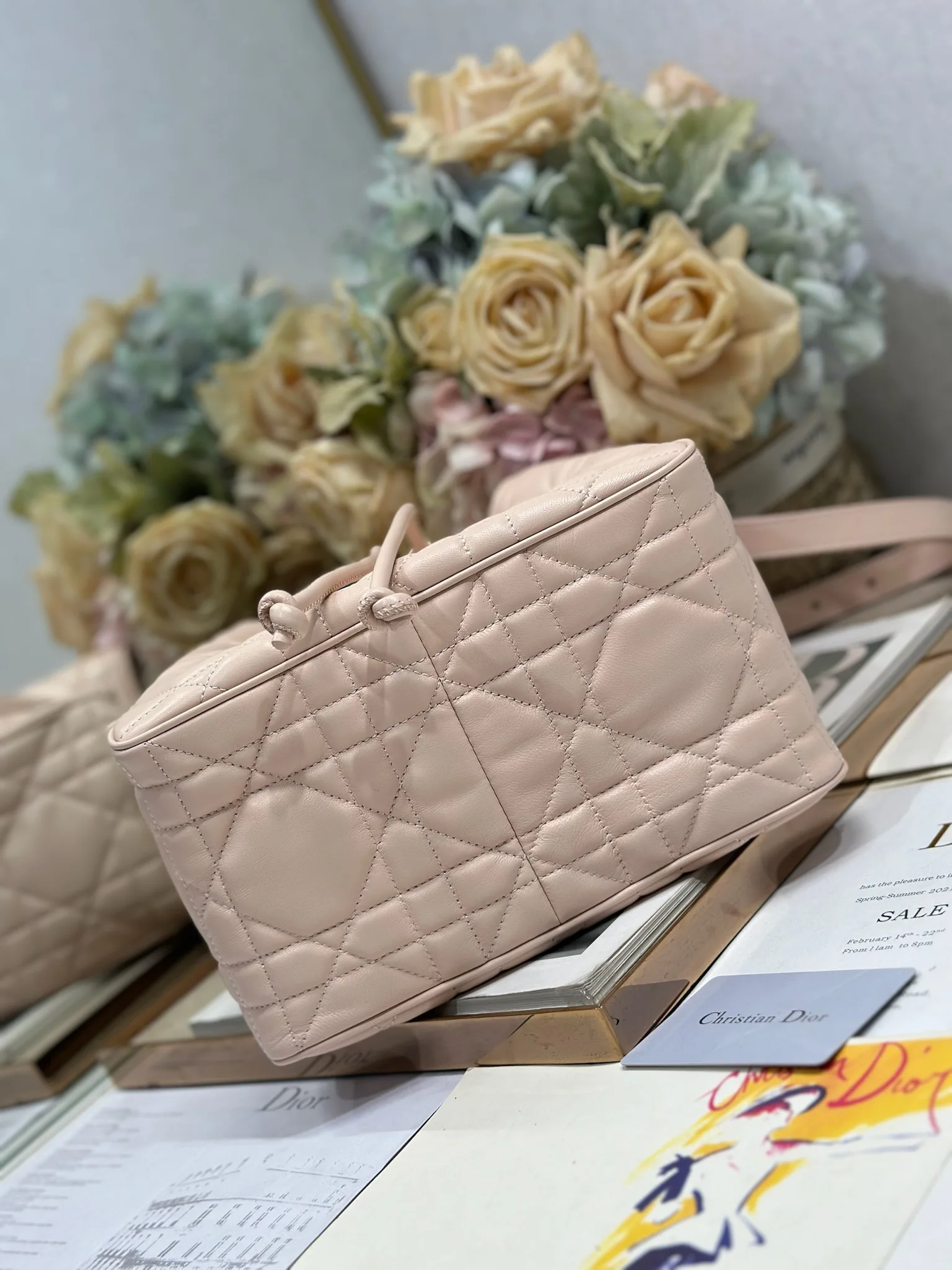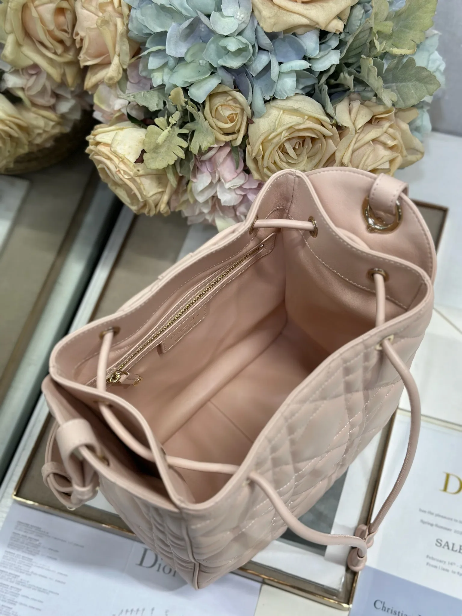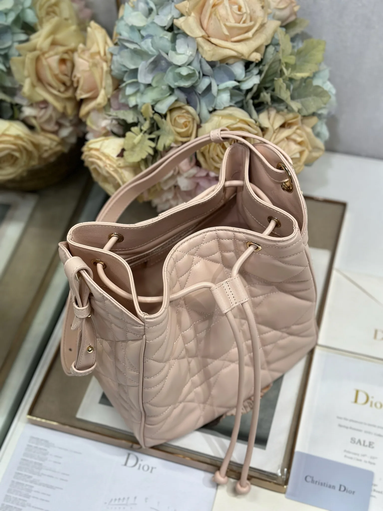中号 D-Motion 手袋 粉色 带可扫描高版本163变码芯片 这款 D-Motion 手袋冬季成衣系列新品 时尚实用的桶式设计 别具一格 采用粉色羊皮革等材质精心制作 饰以藤格纹缉面线 柔软的版型搭配抽绳开合 带有宽敞的内部隔层 拉链口袋及两个侧面插袋 可收纳各种日常用品 中号款式 饰以浅金色饰面金属 D.I.O.R. 吊饰更显精致 搭配滑动设计的可调节肩带 可肩背或斜挎 型号 2852