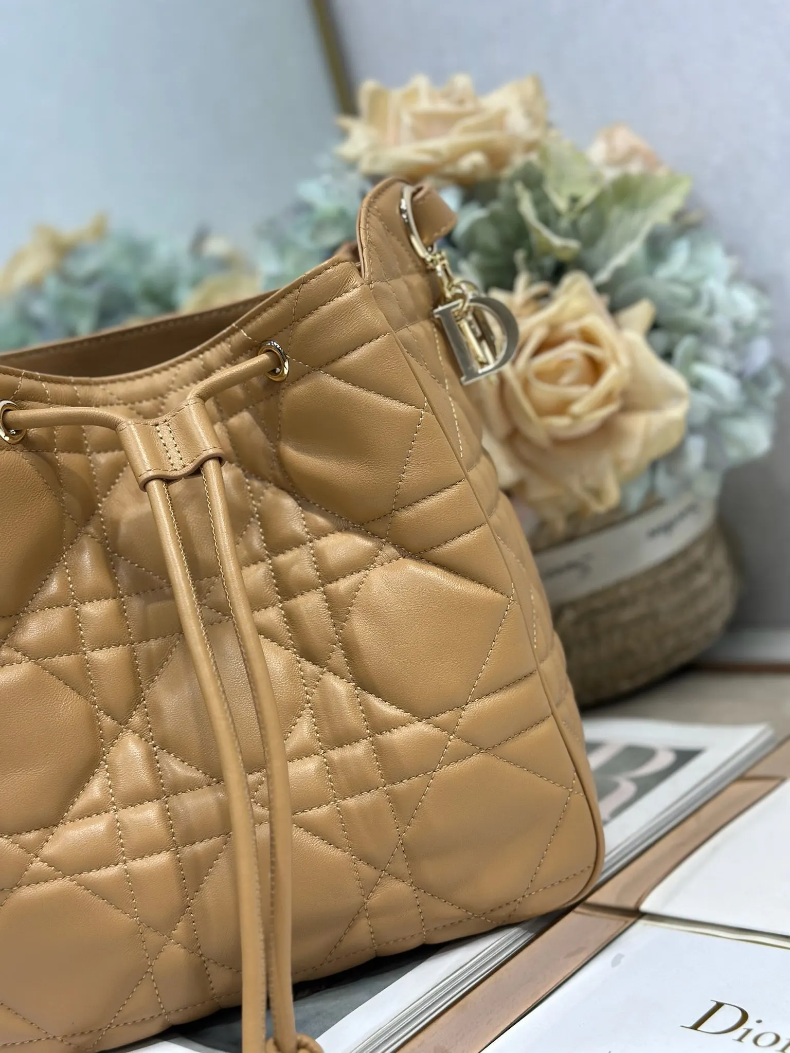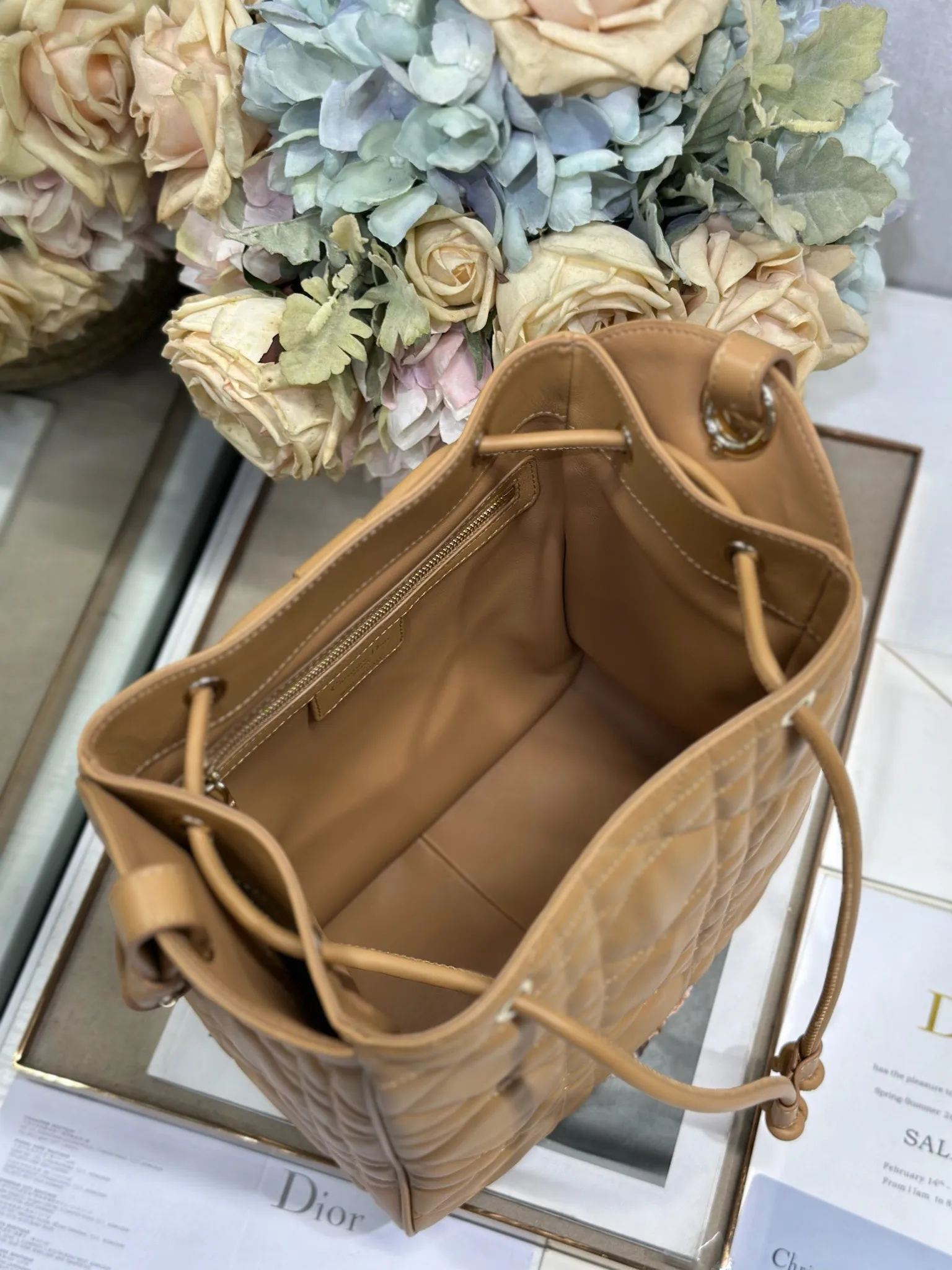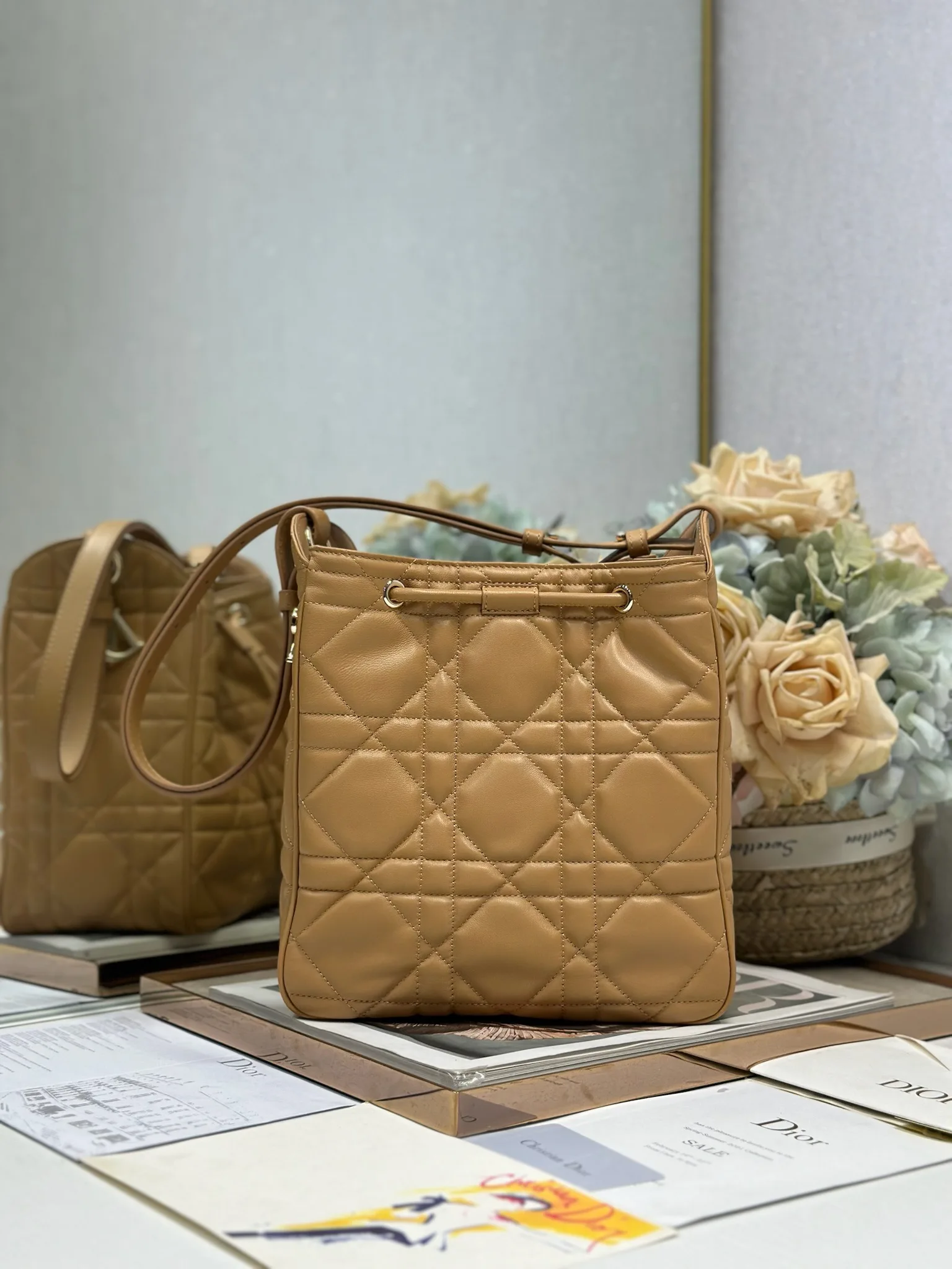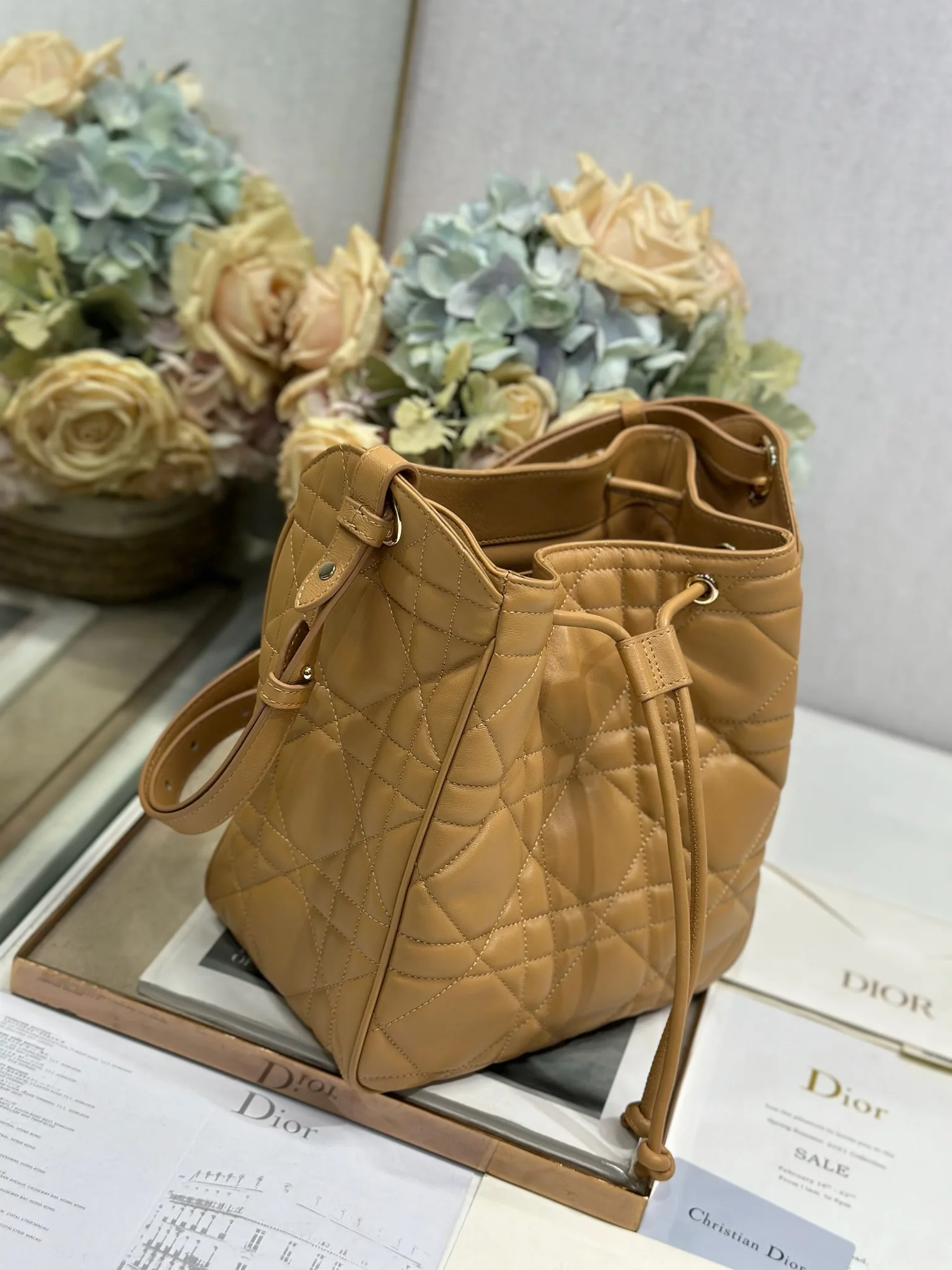 中号 D-Motion 手袋 棕色 带可扫描高版本163变码芯片 这款 D-Motion 手袋冬季成衣系列新品 时尚实用的桶式设计 别具一格 采用棕色羊皮革等材质精心制作 饰以藤格纹缉面线 柔软的版型搭配抽绳开合 带有宽敞的内部隔层 拉链口袋及两个侧面插袋 可收纳各种日常用品 中号款式 饰以浅金色饰面金属 D.I.O.R. 吊饰更显精致 搭配滑动设计的可调节肩带 可肩背或斜挎 型号 2852
